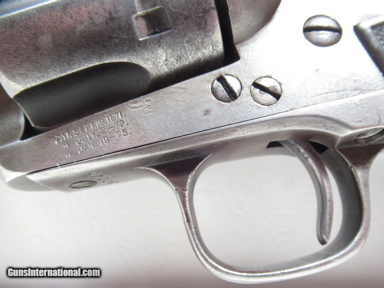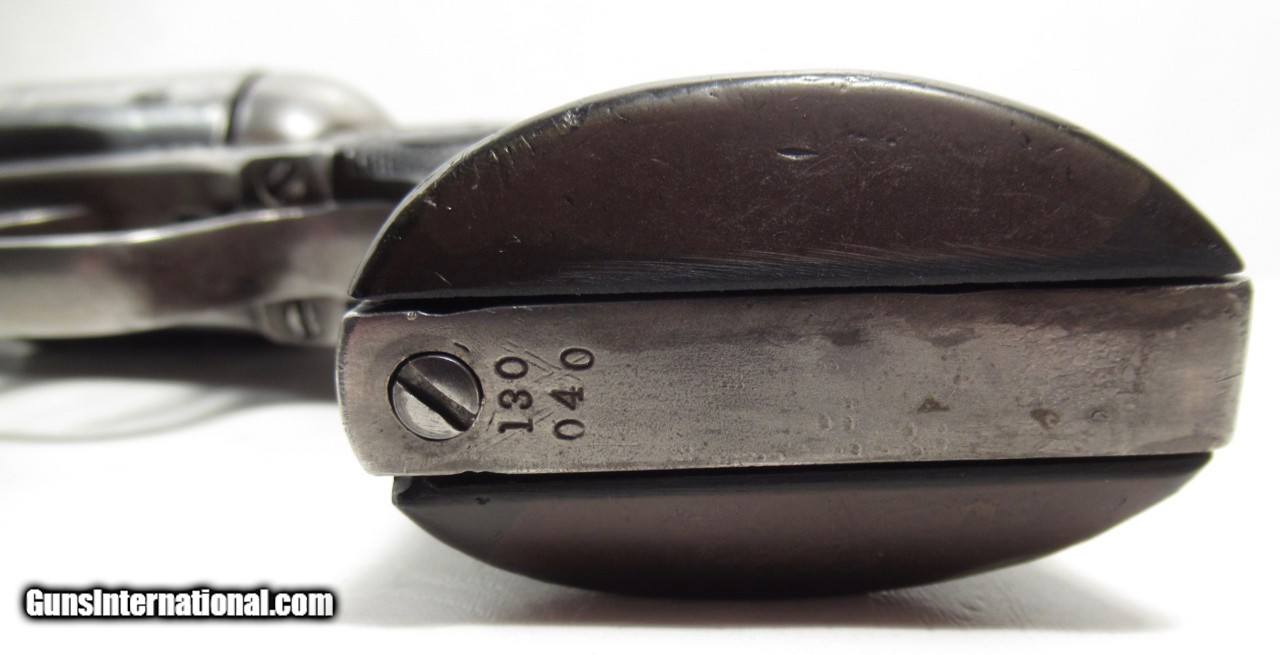 Description: SOLD--Colt Single Action Army Revolver; Serial No. 130040; Per Two Included Factory Letters: .44/40 Caliber with 7 ½” Barrel, Blue Finish, and Rubber Grips; Shipped to Browning Brothers of Ogden, Utah Territory on September 5, 1889 as Part of a 6 Gun Shipment; All Matching Numbers and 100% Correct; Small Amount of Original Metal Finish Remains; Worn Colt Hard Rubber Eagle Grips which are probably Original to Gun and Fit Perfectly; Strong Perfect Action and Tight Lock-up; Very Strong Bore with moderate chattering; 132 Year-Old Wester Shipped “COLT FRONTIER SIX SHOOTER”; See All Photos for Condition; No Texts; Call (254)541-5765 or Email Only; PERSONAL PROPERTY of Harold Wieser; Price: $5,975 + $45 S&H Via USPS PRIORITY MAIL; Payment Address: Harold Wieser - 1466 U.S. Hwy 77 - Rosebud, TX 76570; SEND PAYMENTS VIA USPS PRIORITY MAIL; BEWARE of SCAMS!!! – DO NOT SEND MONEY or CORRESPONDENTS ELECTRONICALLY UNLESS YOU HAVE SPOKEN to HAROLD WIESER FIRST! 254-541-5765 SOLD Manufacturer: Colt Model: 1873 Serial Number: 130040 |