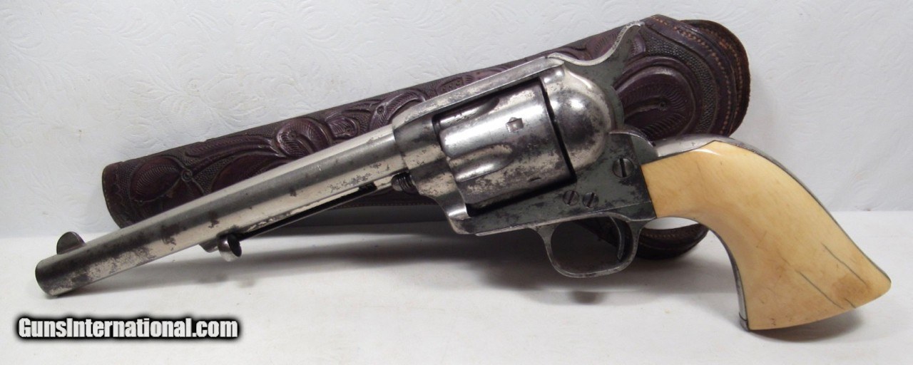 ANTIQUE COLT S.A.A. AINSWORTH INSPECTED REVOLVER from COLLECTING TEXAS – IVORY GRIPS – 7 1/2” BARREL – HOLSTER INCLUDED