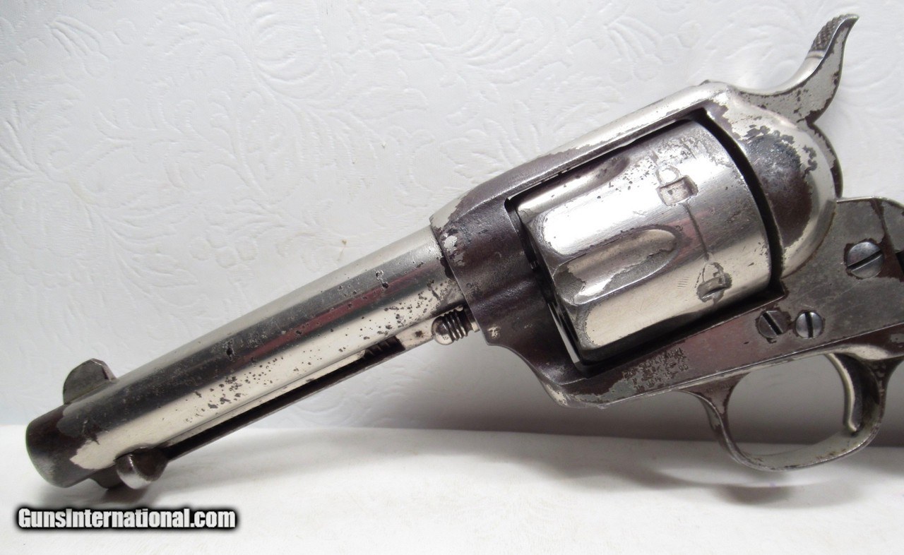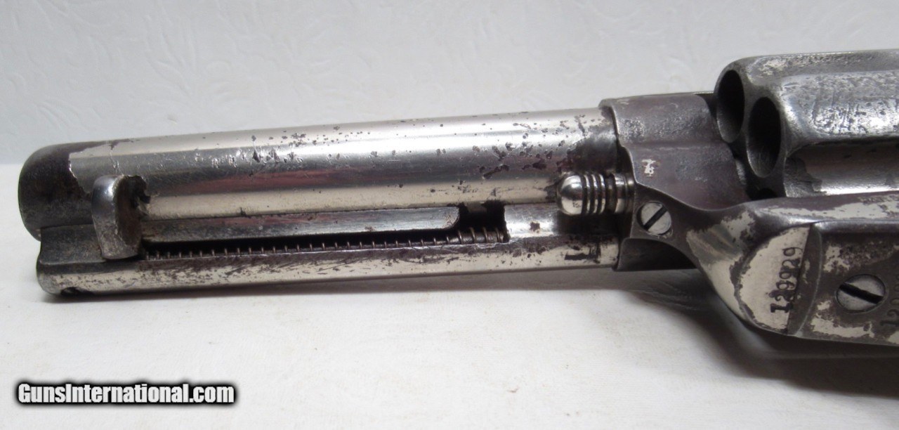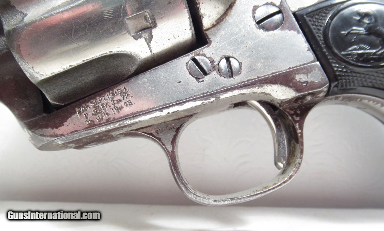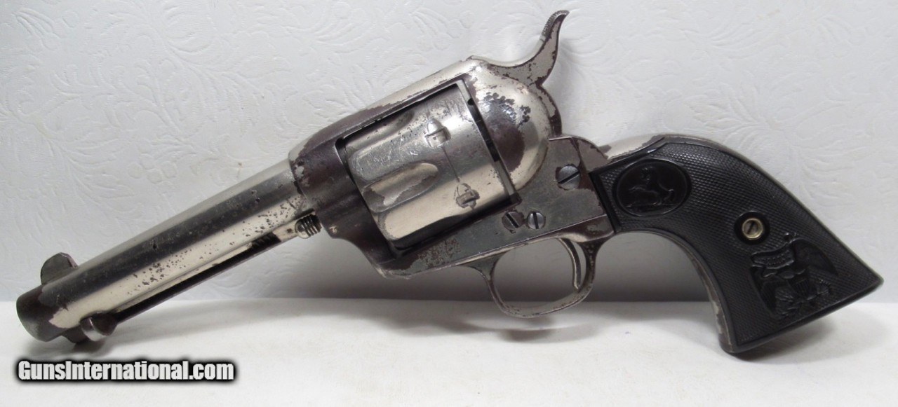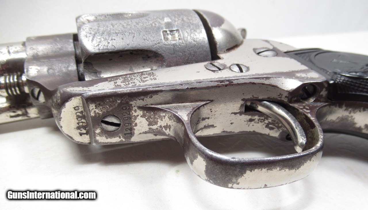 Description: Colt Single Action Army Revolver; Serial No. 129929; Per Included Factory Letter: .45 Caliber with 4 ¾” Barrel, Nickel Finish, and Rubber Grips; Shipped as Part of a 3 Gun Shipment to Colt Master Distributor H&D Folsom Arms Company of New York, NY on September 7, 1889; Addressed to Individual from Georgetown, Texas (Austin, TX Area) in 2009; 100% Correct and Matching; Good Old Texas Dirty Nickel Gun with Lots of Metal Finish; Nice Original Eagle Grips; Perfect Action; Strong Bore with some chattering; Full Front Sight; Nice Original Screws; From the Collection of Dr. H.H. Miller of Abilene, Texas; See All Photos for Condition; No Texts; Call (254)541-5765 or Email Only; PERSONAL PROPERTY of Harold Wieser; Price: $5,975 + $45 S&H Via USPS PRIORITY MAIL; Payment Address: Harold Wieser - 1466 U.S. Hwy 77 - Rosebud, TX 76570; SEND PAYMENTS VIA USPS PRIORITY MAIL; BEWARE of SCAMS!!! – DO NOT SEND MONEY or CORRESPONDENTS ELECTRONICALLY UNLESS YOU HAVE SPOKEN to HAROLD WIESER FIRST! 254-541-5765 SOLD Antique: Yes Manufacturer: Colt Model: 1873 Serial Number: 129929 |