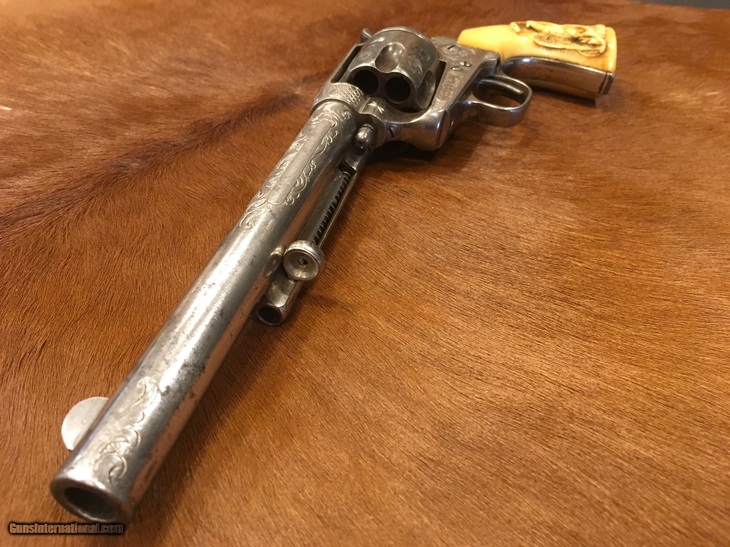 Beautiful New York Engraved Colt Single Action Army .44 Etched Carved Snake & Eagle Ivory