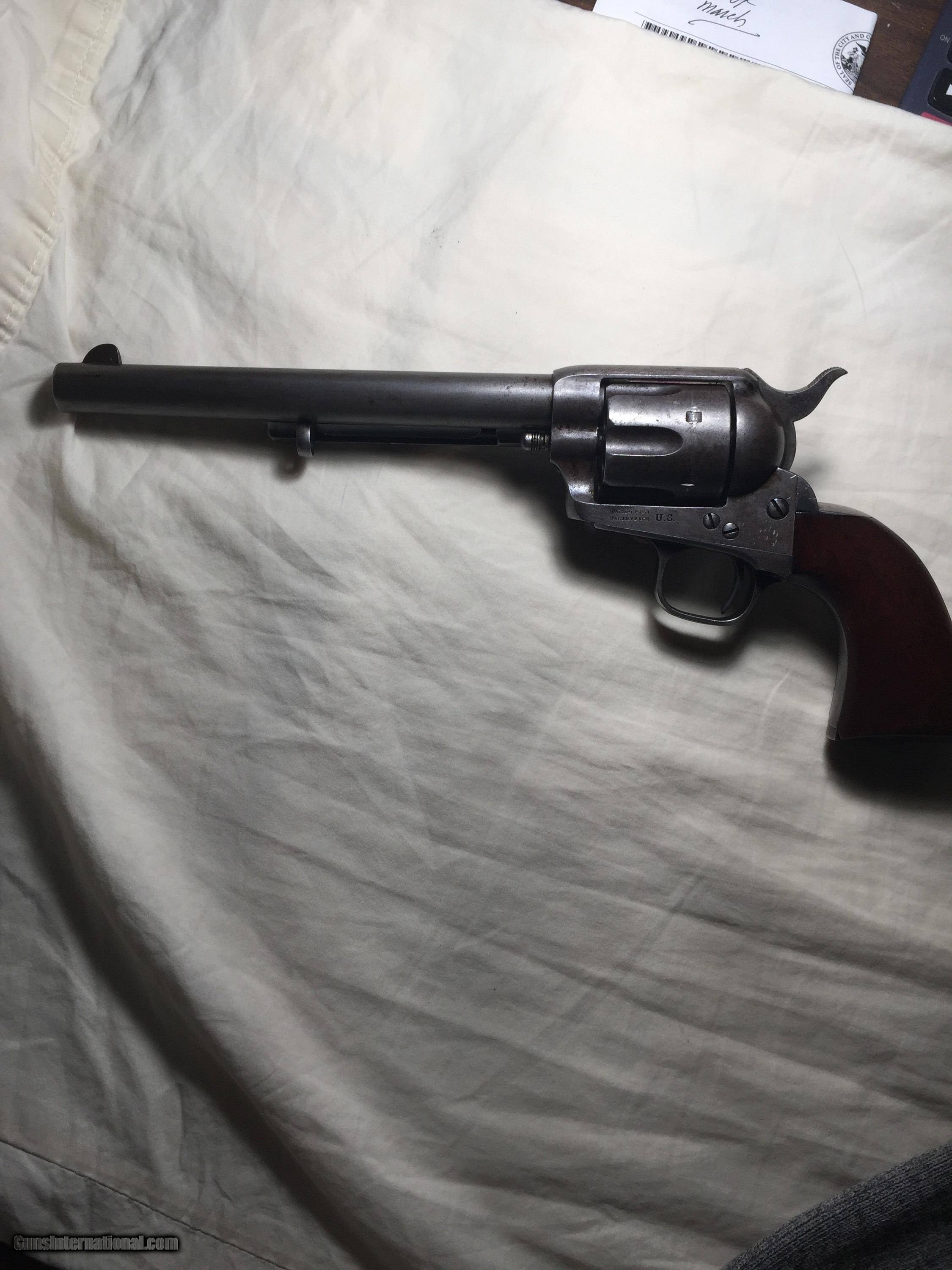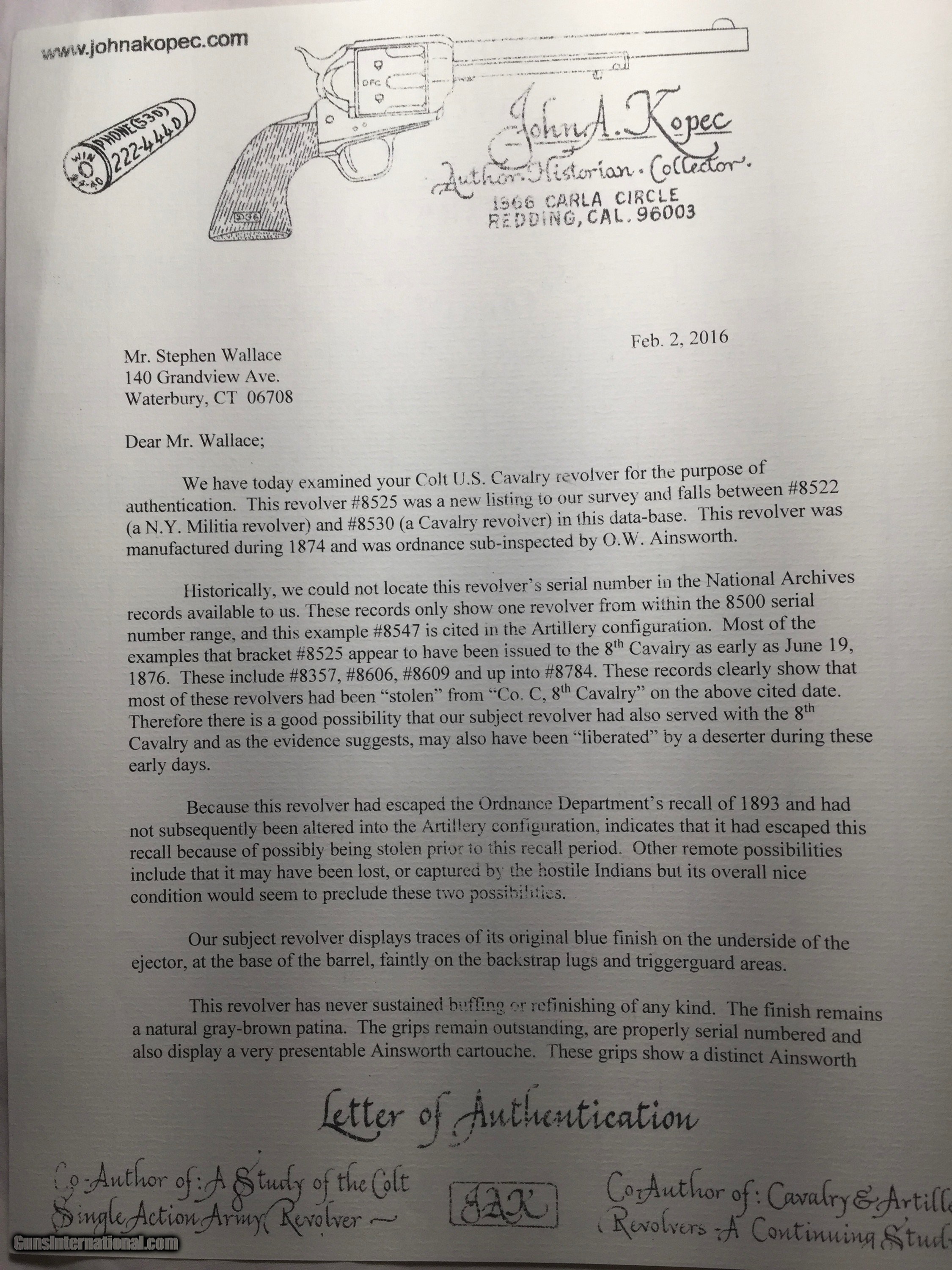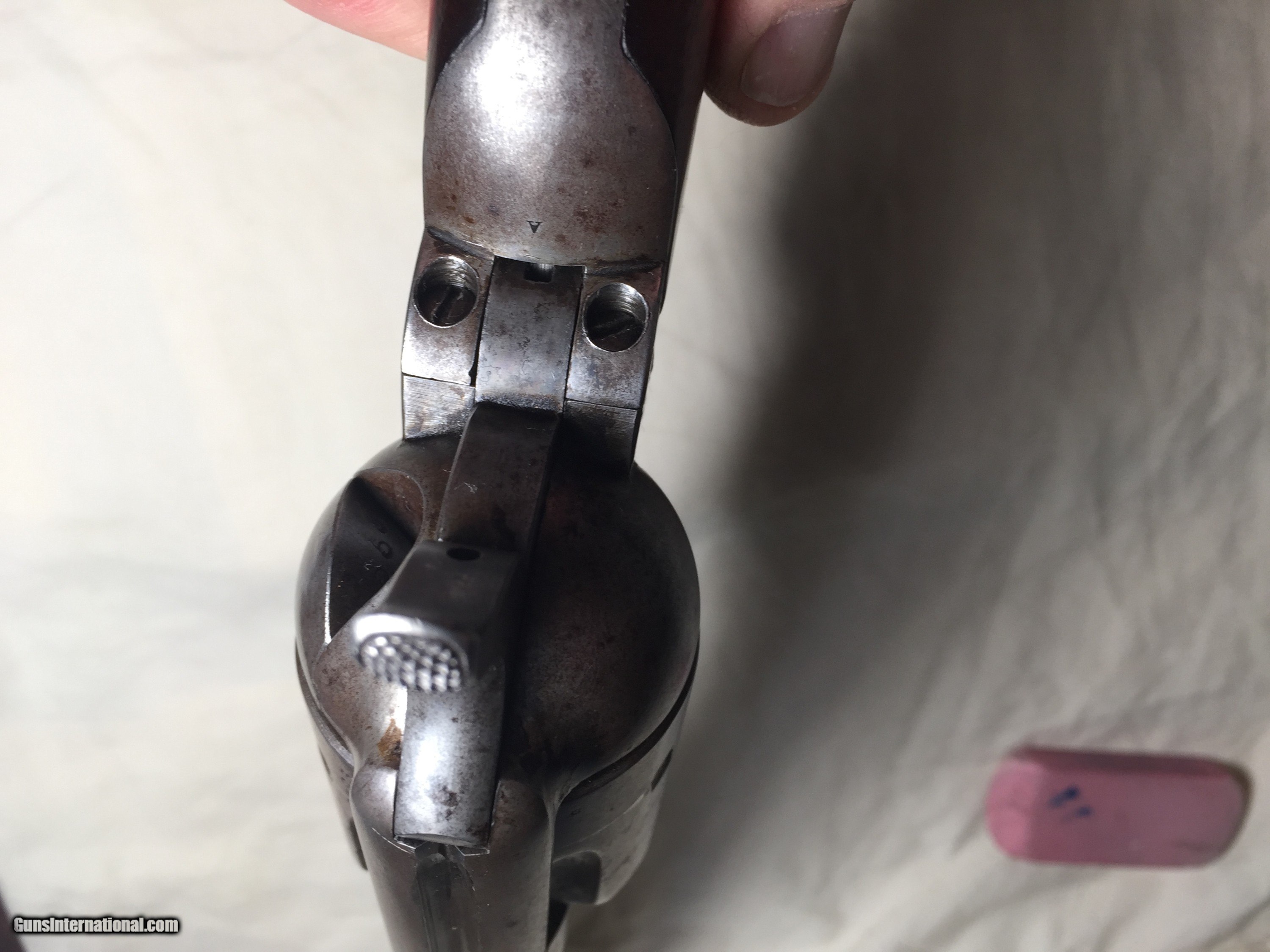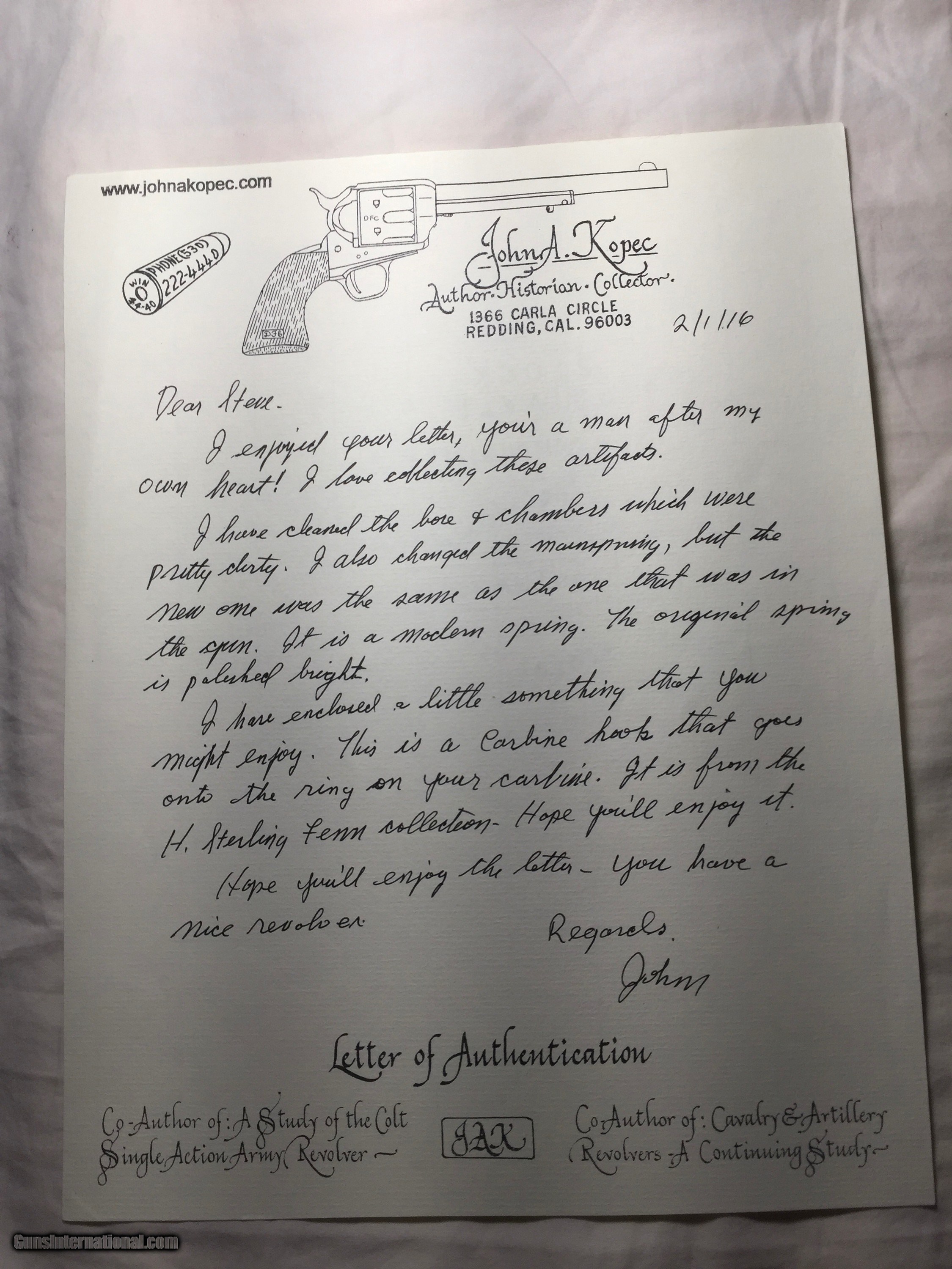 Description: I AM SELLING MY BEAUTIFUL ORIGINAL 1874 SERIAL NUMBER 8525 AINSWORTH INSPECTED 1ST GEN CAVALRY REVOLVER I WON THIS REVOLVER IN THE JUNE 2020 ROCK ISLAND # 79 LOT NUMBER #3263 PLEASE FEEL FREE TO LOOK UP THE REVOLVER FOR MORE PHOTOS aND INFORMATION I WILL SELL THIS BEAUTIFUL GUN FOR $29,000I DO NOT NEED HELP SELLING THIS GUN ..... PLEASE READ THE KOPEC LETTER UNLIKE ALMOST ALL OF THESE OFFERED , THIS IS NOT A MILITIA GUN . THIS WAS USED AND ISSUED TO THE 8TH CAVALRY IN. TEXAS/NEW MEXICO WITH GREAT HISTORY ITS UNMOLESTED AND 100 ORIGINAL PATINA I LOOKED HIGH AND LOW TO FIND ONE LIKE THIS. PLEASE NOTE KOPECS OBSERVATIONS. ITS A CLEAN KOPEC LETTER WITHOUT LINE ITEMS OF PROBLEMS, AS ALMOST HAVE. . BEAUTIFUL GRIPS WITH CARTOUCHE. THE GUN IS BEAUTIFUL IN HAND NICE RICH EVEN PATINA. WELL CARED FOR RIA RATED THE GUN AS VG+ DISPLAYS TRACES OF CASE COLORS ON THE HAMMER ABD SMALL AMOUNTS OF BLUE ON THE GRIP STRAPS AND PROTECTED AREAS. GUN WAS NEVER MISHANDLED AND A JOY TO LOOK AT KOPEC INSTALLED A NEW MAINSPRING WHICH IS COMMON . THIS GUN WILL NOT DISAPPOINT I DO NOT SEE MANY LIKE THIS ONE OFFERED THESE DAYS I AM A COLLECTOR NOT A RESELLER. THIS FINE DESIRED AINSWORTH BELONGS IN A NICE COLLECTION. THANK YOU SERIOUS REASONABLE OFFERS WILL BE CONSIDERED! I HAVE REDUCED THE SELLING PRICE TO 29,000. TO ENCOURAGE A SALE I KNOW MY IMAGES ARE NOT GREAT GUN MUCH BETTER CALL FOR INFORMATION/DESCRIPTIONS AND/OR ILL TRY BETTER PICS UPON REQUEST SOLD Antique: Yes Manufacturer: COLT Model: 1873 SINGLE ACTION Serial Number: 8525 Condition: VG PLUS Metal Condition: VG PLUS Wood Condition: VERY FINE Bore Condition: FINE |