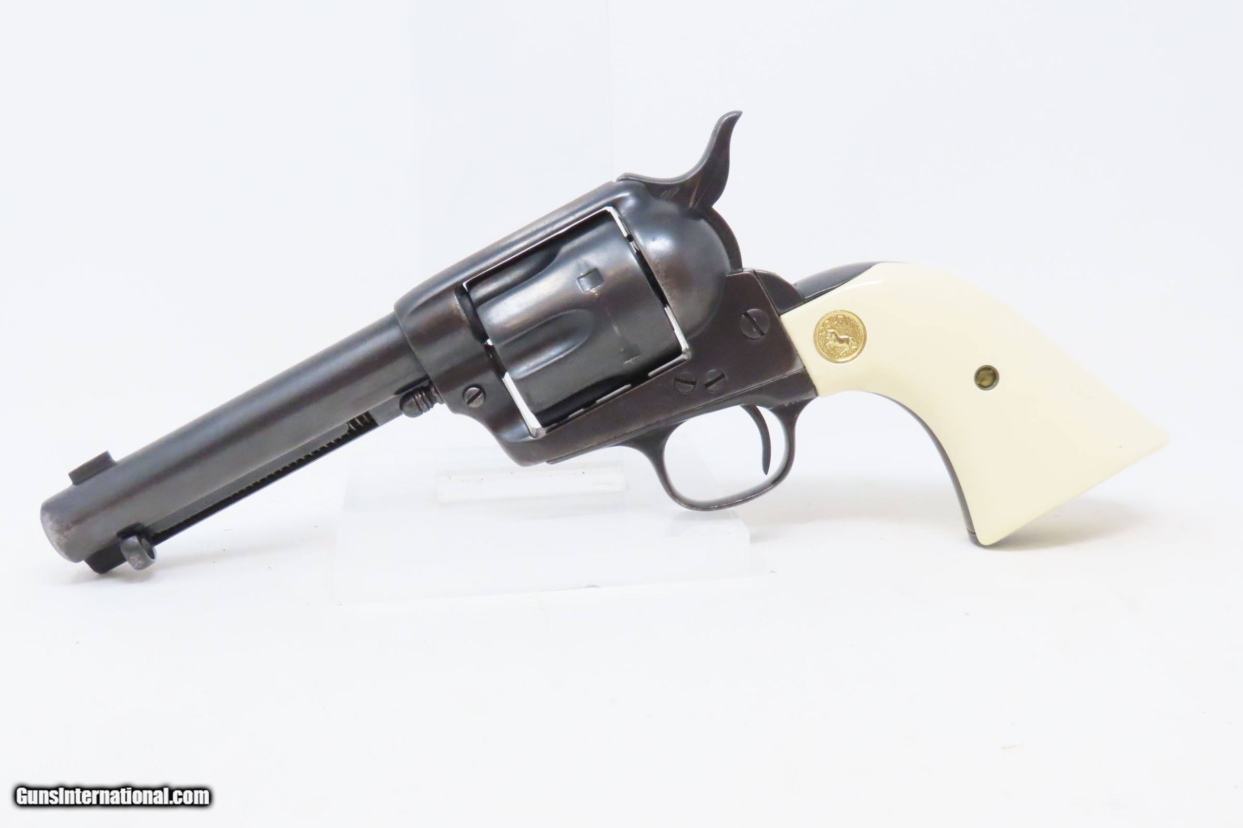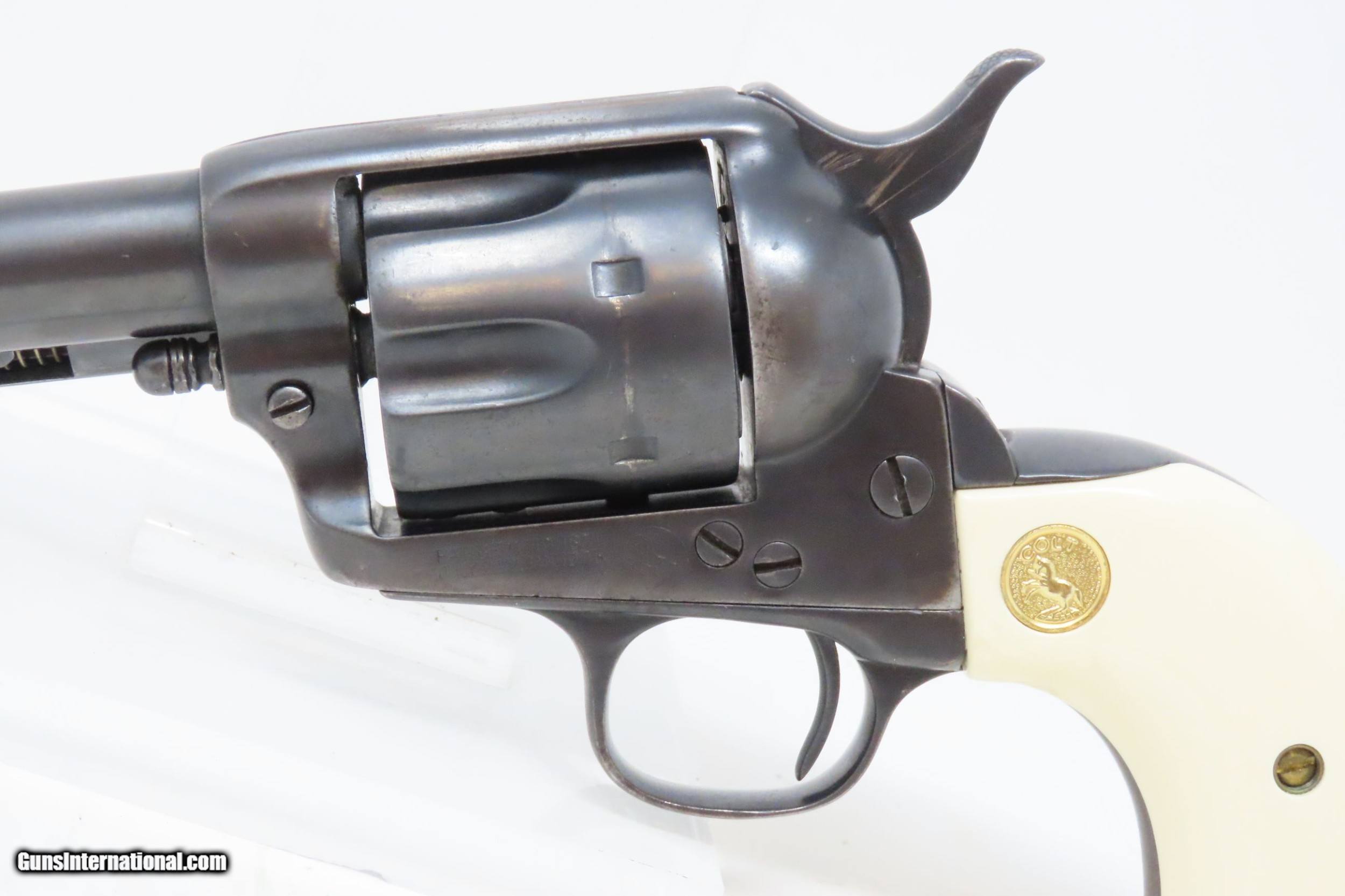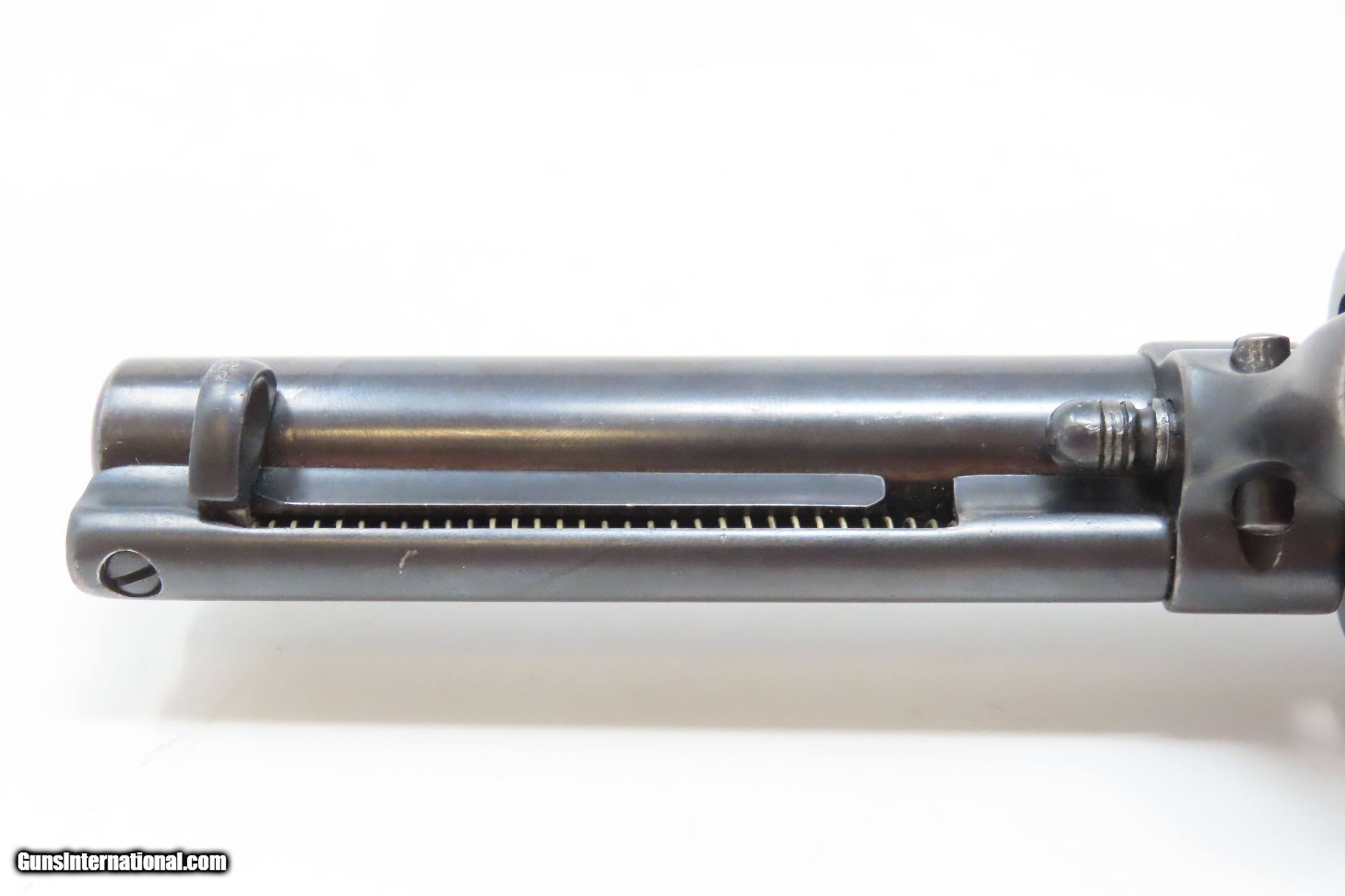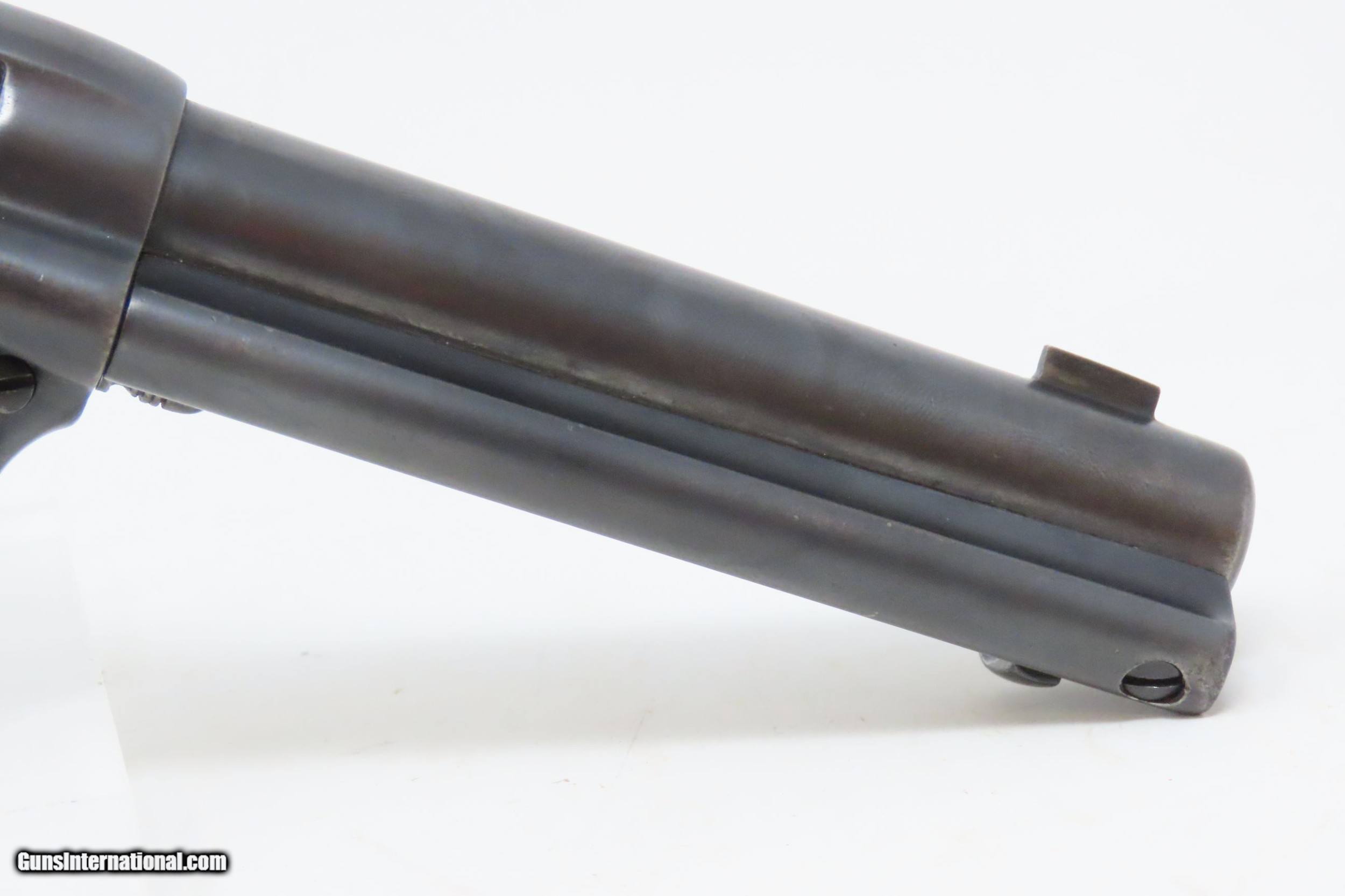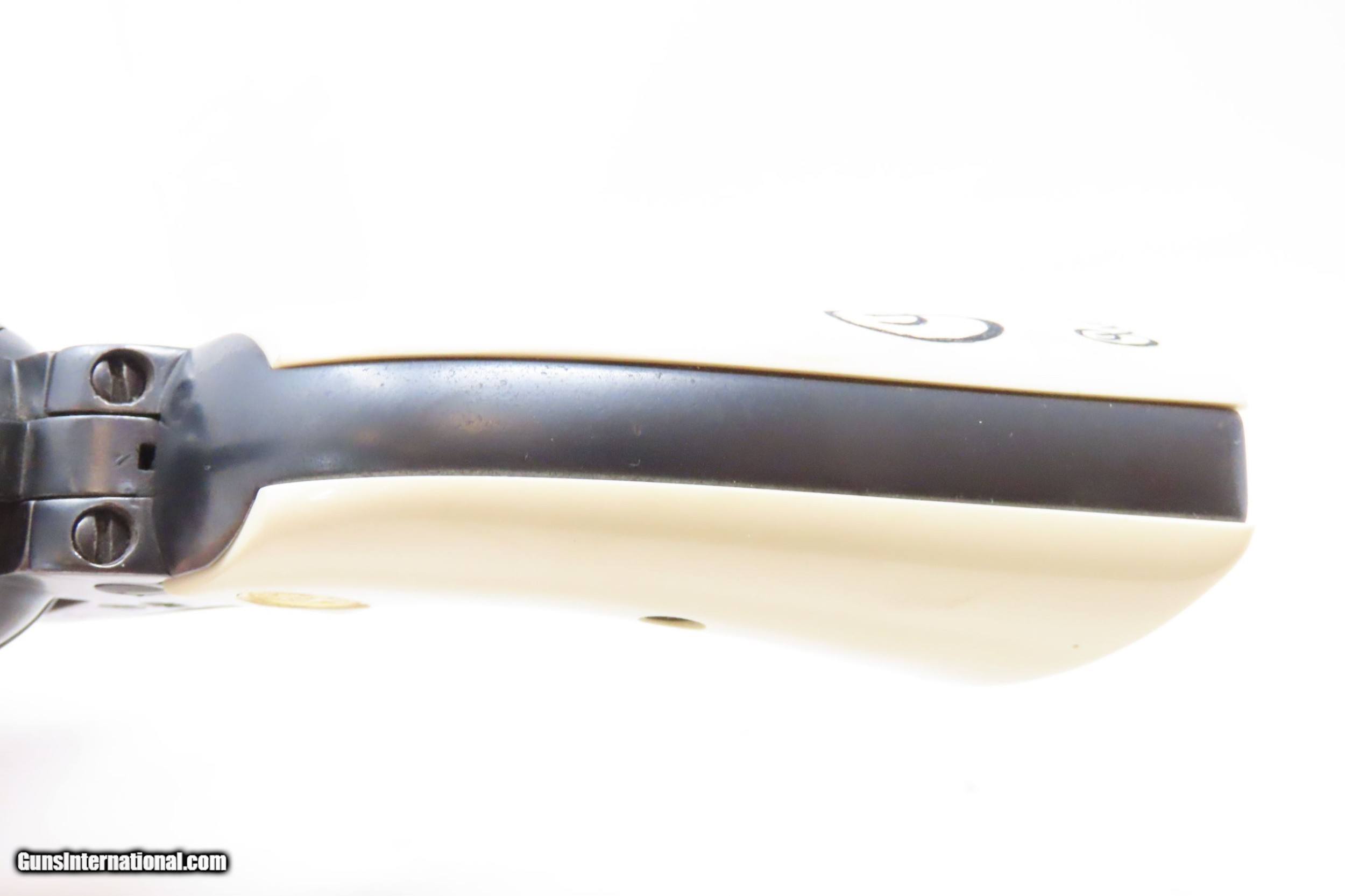 Description: c1897 Antique COLT “PEACEMAKER” Single Action Army Converted to .22 LR SAA A Unique Conversion to .22 Rimfire! Here we present an antique Colt Single Action Army Revolver, manufactured in 1897 in Hartford, Connecticut. The Colt “Peacemaker” was introduced in 1873 and has become one of the most iconic firearms in all of history, thanks to its widespread use by the U.S. military, civilians and, more recently, in Western films. Total production numbers for the Colt Single Action Army reached 357,859. The production numbers for the .38 caliber reached just over 50,000, making this model the third most popular out there. Though Colt enjoyed the largest contracts of any handgun maker during the American Civil War, it had to rely on its array of percussion fired revolvers, namely the 1860 Army until the Smith & Wesson owned Rollin White Patent expired in 1869. This enabled them to begin making revolvers with completely bored through cylinder chambers in order to utilize modern metallic cartridge ammunition in the most effective manner. In 1869, Colt began development of a suitable cartridge revolver in earnest, first coming out with a number of conversions for their percussion lines, until 1872 when they debuted what was to become the Colt Model 1873 Single Action Army in the 1872 U.S. Trials. Needless to say, it won, and became the Army’s revolver of choice. It also became the sidearm of choice for many others like cowboys, guards, lawmen, crooks, shopkeepers and all manner of civilians. This example started out life in what looks to be a large caliber revolver, likely a .38 or .45 caliber (the bored out portion measures .476”), and sometime over the years was converted to .22 Long Rifle, keeping the original barrel and cylinder and adding liners for the conversion. The right grip is marked “AGR/Austin, Texas”. The overall condition is fine. Refinished and reworked. The action is excellent. Bright bore, sleeved for .22LR. This example has fine ivory-white Ajax polymer grips. Numbers match. The front sight has been filed for the new cartridge. Own the original! This is a legitimate antique and not a reproduction. Barrel is 4-3/4 inches. Caliber: .22 S, L, LR Rimfire Overall condition as seen in photos. Very Fast. Very Safe. FREE SHIPPING WORLDWIDE. Delivered directly to your door by express mail! Guaranteed AUTHENTIC & Includes CERTIFICATE OF AUTHENTICITY. ancestryguns $4200 #220153 SOLD Antique: Yes |