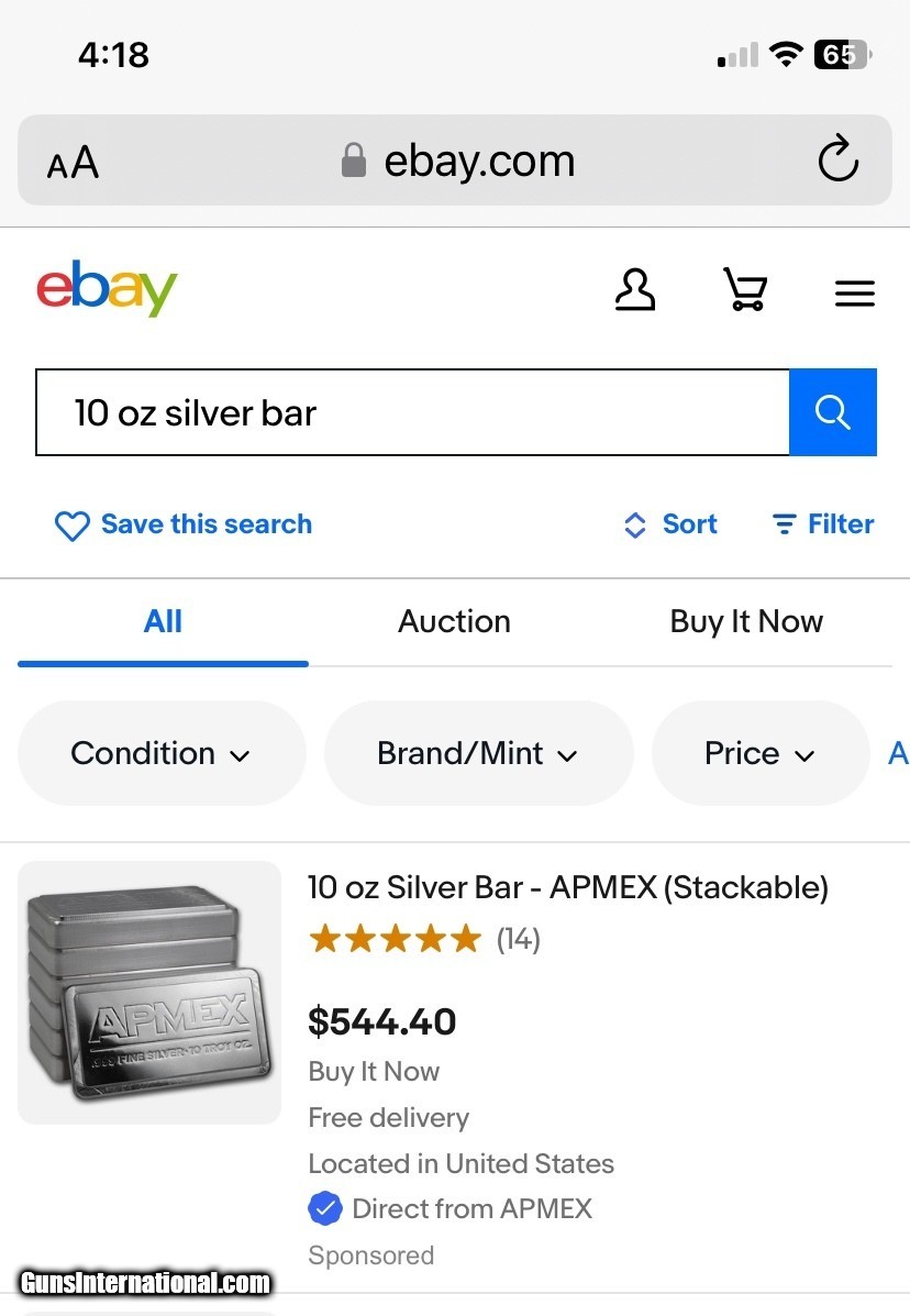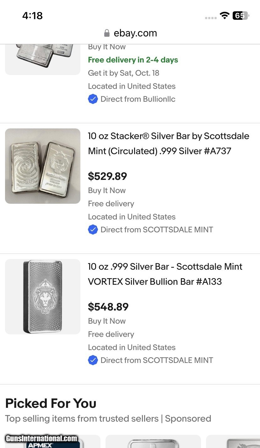 Sale pending on the silver. Says he's out of town until Tuesday. Then he will mail out the money. We'll see how this turns out. I do have a lot of these 10oz bars I will list more later. My high school friend owns a pawnshop and scraps gold and silver about once a month. I've scrapped some bars before. But you really hate to. They are nice and have eye appeal.