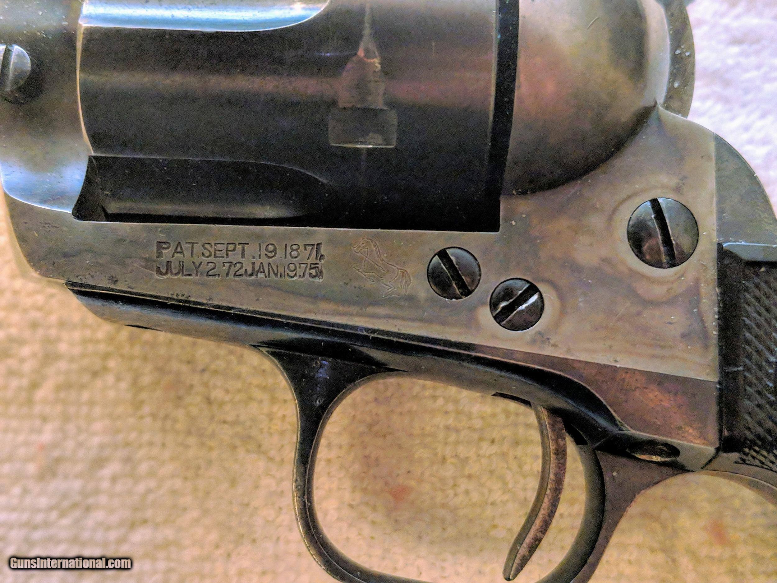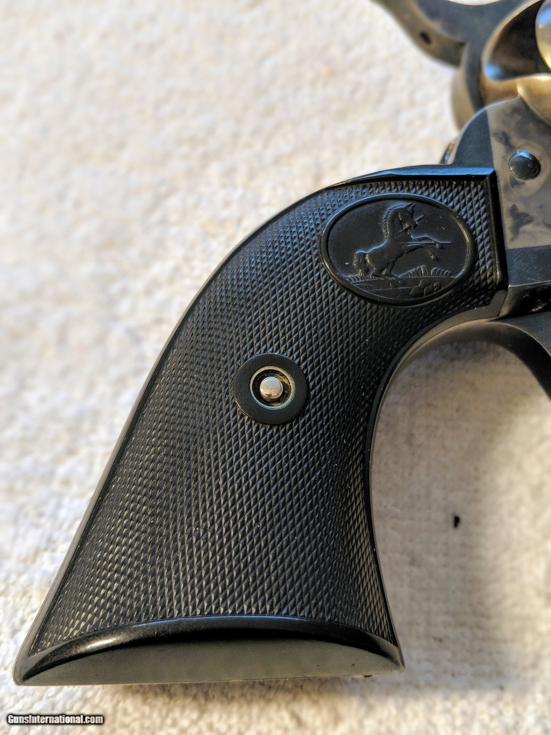 Description: Very nice conditioned Colt 45 with 7 1/2" barrel and factory letter.. A little freckling on the cylinder. Slight dragline and slight wear on left muzzle. Bore and grip like new. Overall gun is 90%+. A really nice 1st Gen Colt manufactured 1924 with mint bore. Ships insured to FFL or C&R $50.00. SOLD Curio/Relic: Yes Manufacturer: Colt Model: Single Action Army - 1st Generation Serial Number: 346345 Caliber Info: 45 LC Bore Condition: mint Manufacture Date: 1924 Extras: Factory Letter |