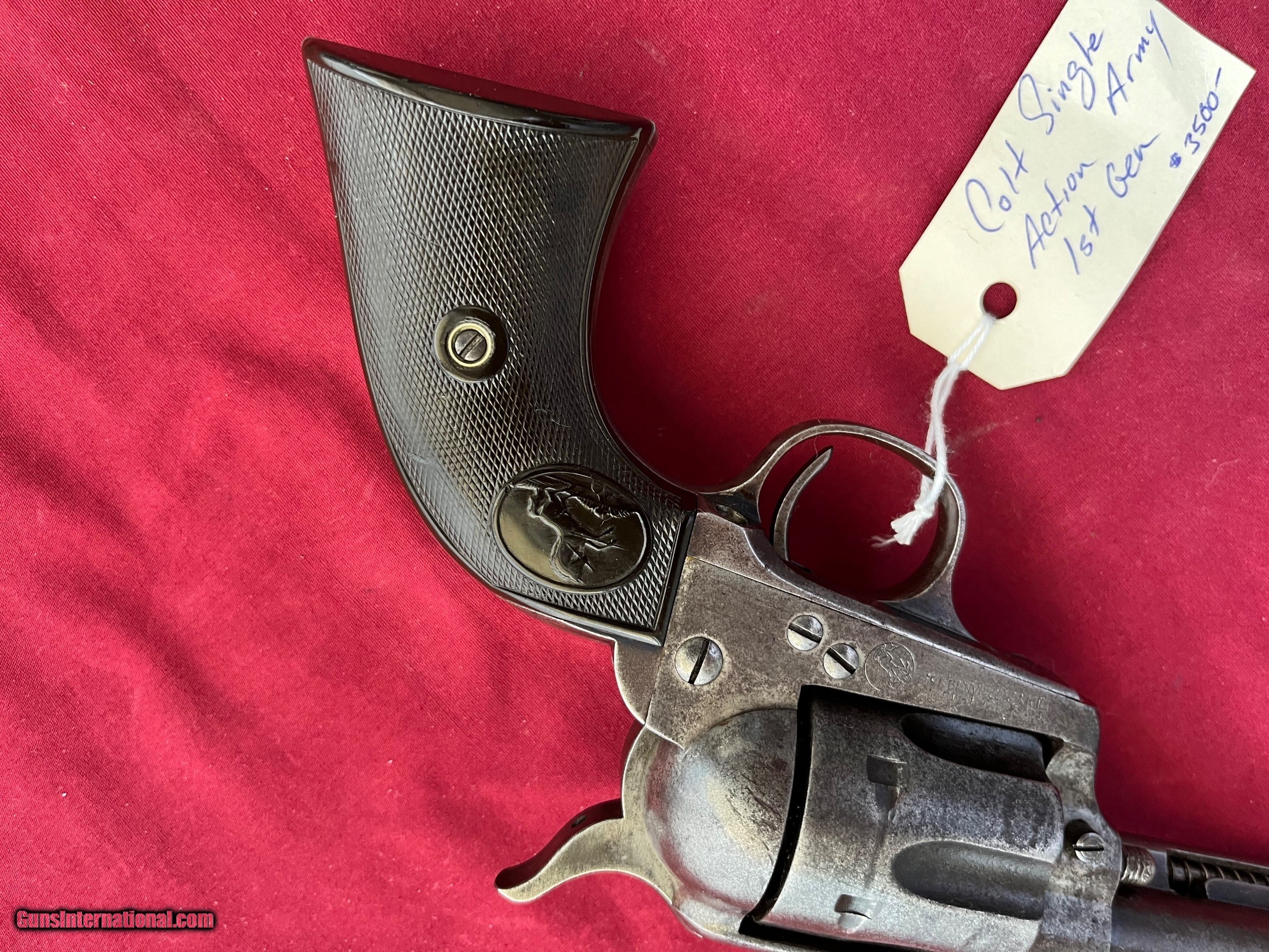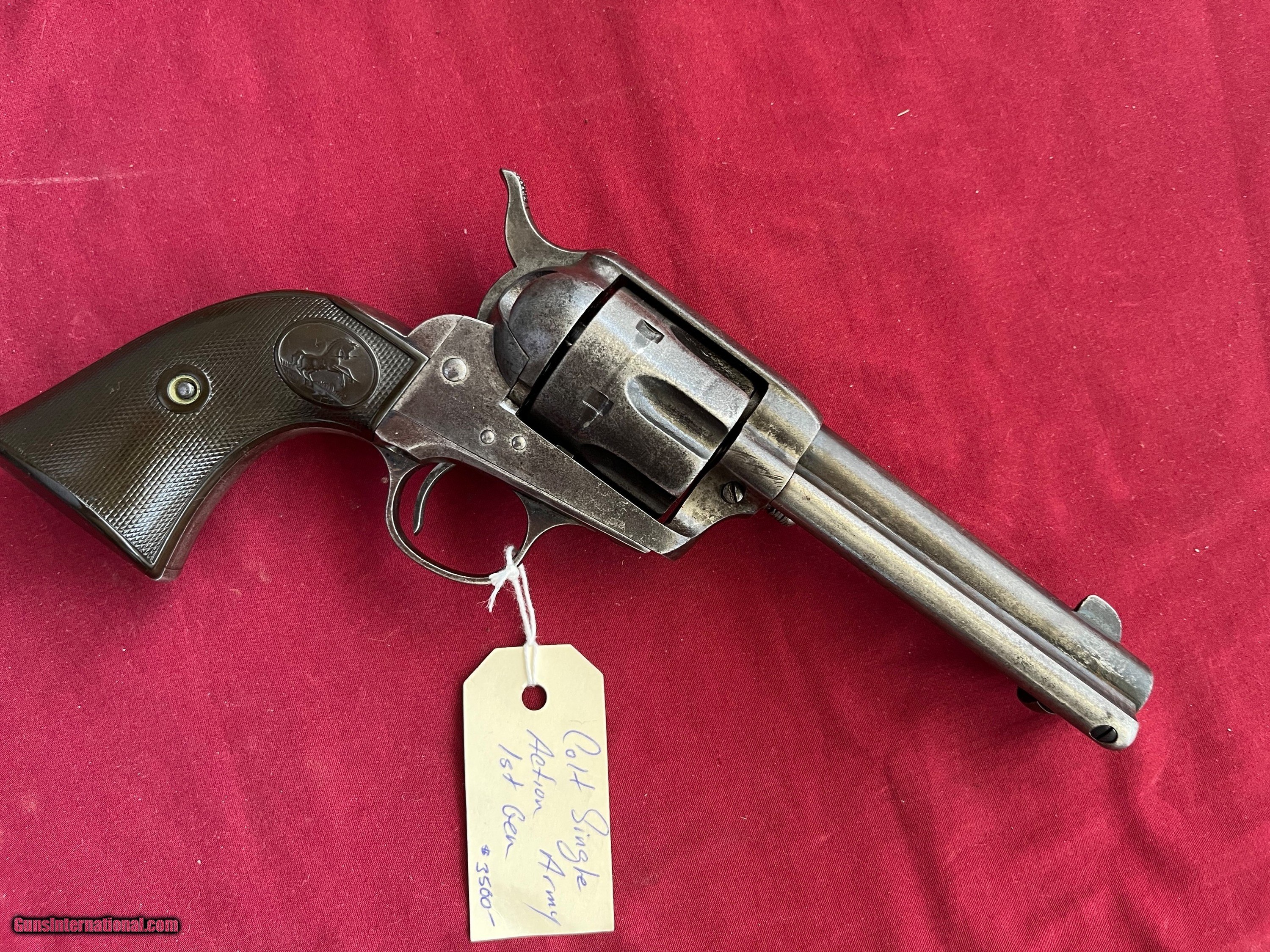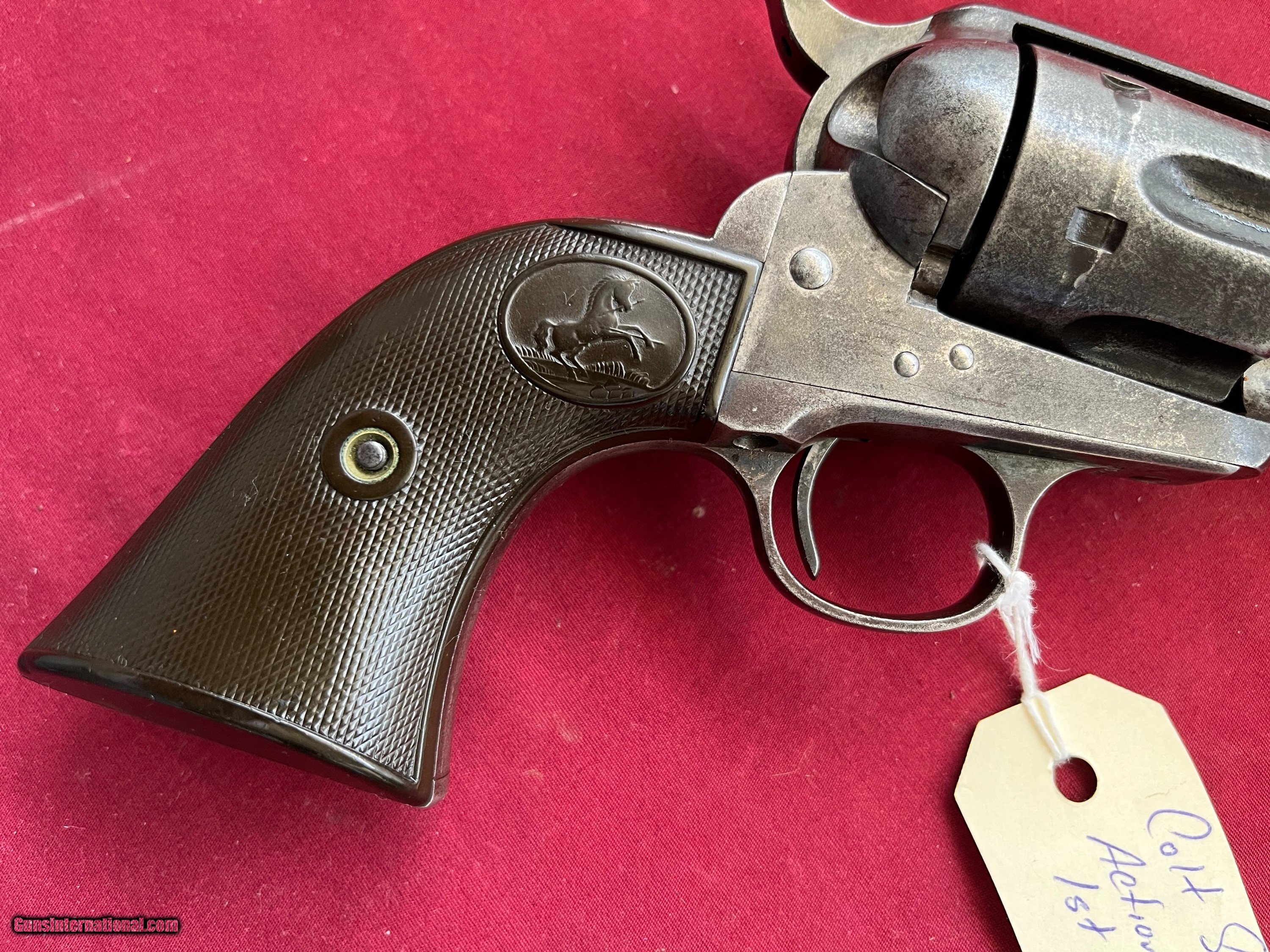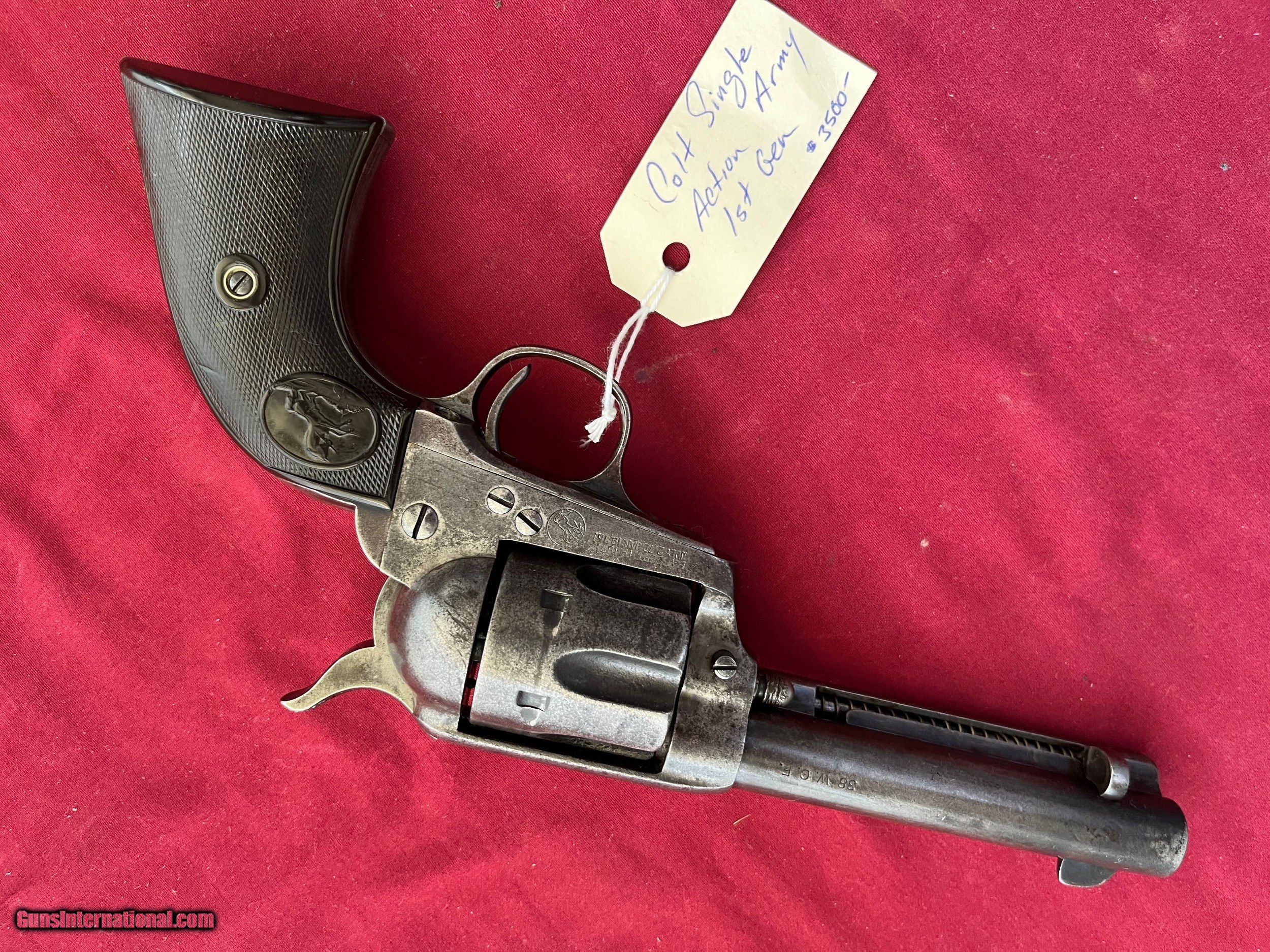Description: COLT SINGLE ACTION ARMY REVOLVER . SER# 214584, MADE IN 1901 , MATCHING NUMBERS, CALIBER 38-40 ( 38 W.C.F.) TIGHT CRISP ACTION THAT FUNCTIONS FINE. 4 3/4 INCH BARREL WITH TWO LINE ADDRESS. VERY SHOOTABLE BORE WITH LIGHT TO MODERATE PITTING. METAL SHOWS A GRAY / BROWN PATINA. GOOD SOLID GRIPS WITH NO CRACKS. EASTERN BRANCH FIREARMS ADD 35.00 SHIPPING – HANDGUN USPS PRIORTY MAIL ADD 35.00 SHIPPING – LONG GUNS GROUND SHIPPING Questions e-mail or call Glen at Eastern Branch Firearms 207-215-5021 TERMS – PLEASE READ BEFORE I DO NOT HAVE A LAYAWAY OPTION ( WE ACCEPT CREDIT CARDS ) -- I GET ALOT OF REQUEST FOR TRADES, I WOULD PERFER NOT TO DO TRADES ON MY INTERNET LISTINGS PAYMENT OPTIONS- We accept money orders, cashier’s checks , bank checks. sorry no personal checks. We accept all major credit cards please add 3% to the ’s cash discount price.(Maine Residents to pay 5% sales tax) .Handguns and long guns do need to be shipped separate. PLEASE do not send payment via FED EX . USPS & UPS are fine. Thank you. We include a signed copy of our FFL with each firearm shipped. SAFTY NOTICE- Buyer is solely responsible for determining that a used gun is safe to shoot. The firearms offered have not been test fired but have been given a visual inspection only for purposes. It is a requirement that every used firearm is inspected by a qualified gunsmith before firing. By , the buyer agrees to hold seller harmless against damages, injury, or death caused by defective merchandise. RETURN POLICY- All firearms come with a 3-day non firing , non messing with ( turning srews ,taking apart,removing parts, scoping. firing, cleaning or messing with in anyway) inspection/return privilege.Inspection is based on a visual review of the gun to confirm the gun is in the condition stated. In the case of a return, buyer pays all shipping charges & if paid for with a credit card buyer absorbs the 3% credit card charges . So please ask questions BEFORE you bid. Thanks for Looking and Good Luck!! U.S. sales only, no exports…this includes antiques. I will ship to third party for exporting SOLD Curio/Relic: Yes |
