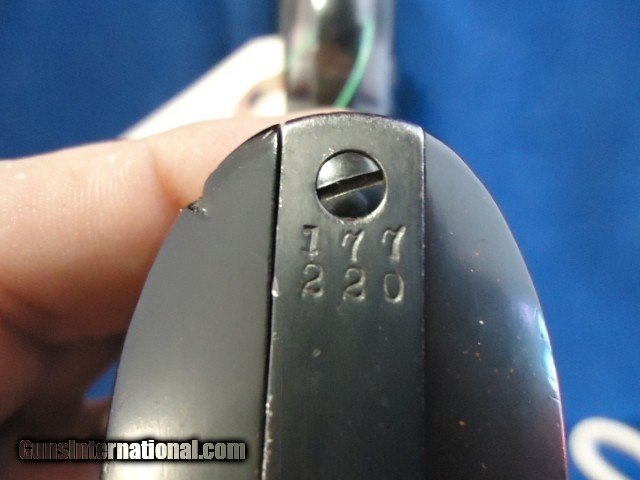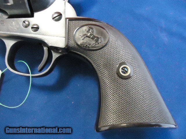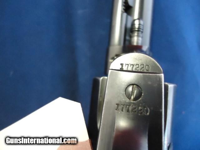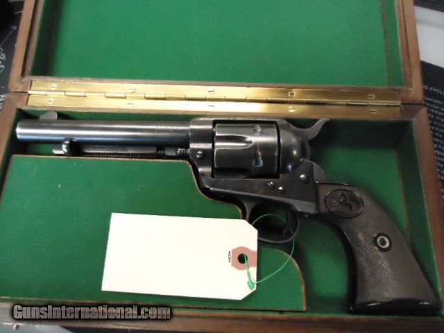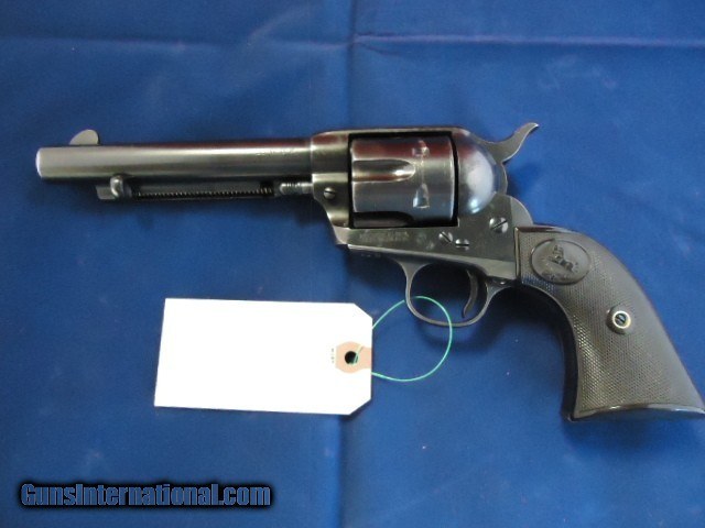 Description: Up for sale is this very, very nice Colt Single Action Army revolver chambered in .38 WCF. This is a 5 1/2 " in very RARE condition and comes from the factory with a blued frame. ( Not color case hardened ) I have the papers from Colt to go along with this beauty. This revolver has not been molested in any way and was made in 1898 as you can see by the serial number. It has the original set of grips that are serialized to this revolver. All serial numbers match and the hammer is correct. It's certainly not too often that I run into a Colt revolver in this nice of condition. It is certainly a collectors piece. Please take a very good look at all the pictures and ask any and all questions that you might have before buying this revolver. All of the Colt papers and Wooden Colt display box will be shipped with this firearm. And Please take a look at some of the other firearms that I have listed as well. I have a few more 1st. Gen Colts and a emaculate U.S.F.A chambered in .45LC / .45 ACP, 4 3/4" Turnbull color case hardened up for sale as well. Well worth your time to check out ! SOLD Antique: Yes Manufacturer: Colt Model: S.A.A Serial Number: 177220 Barrel Length: 5.5 Caliber Info: .38 WCF Ejectors: very good Condition: Very good Metal Condition: very good Wood Condition: n/a Bore Condition: very good Barrels: very good Barrel Type: round Action: single Triggers: factory |