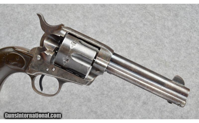 Description: Colt Single Action Army, Intermediate Smokeless Configuration, c.1913. Thin ,mottled finish with traces of original case colors and bluing in the protected areas. Locks up fine on all six,very light trigger. Exceptional bore. .41 Long Colt SOLD Metal Condition: Blued and Cases Hardened Barrels: 4 3/4 Inch Triggers: Single Action Sights: Notched frame, Blade front Item Location: Allen, TX |