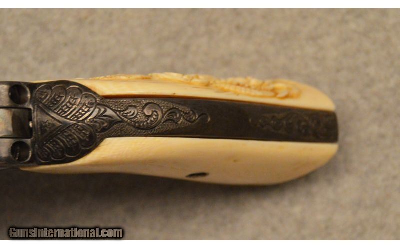 Description: Colt Single Action Army manufactured in 1899. Subsequently upgraded and engraved by NC Foster of Texas in 2007. .32 WCF SOLD Curio/Relic: Yes Metal Condition: Good as upgraded Barrels: 7 1/2 Triggers: Factory Butt Pad: Dragon Scrimshawed right, Left side plain with repairs Item Location: Fort Worth, TX |