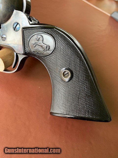 Description: Colt, Single Action Army, 1st generation 5-1/2", .45 caliber, shipped August 25, 1906, to Von Lengerke & Detmold, New York, New York. The gun retains a fair amount of case colors and blue in protected areas. The bore is bright with plenty of shine. The barrel has a blemish under the caliber marking, see pic. Colt factory letter included. This gun is not an antique and must be shipped to an FFL holder. Buyer pays shipping and insurance. Please don't hesitate to ask questions. Additional pictures available upon request. $5,900.00 - Plus shipping and insurance. --Sale Pending-- SOLD Handgun Caliber: .45 Colt |