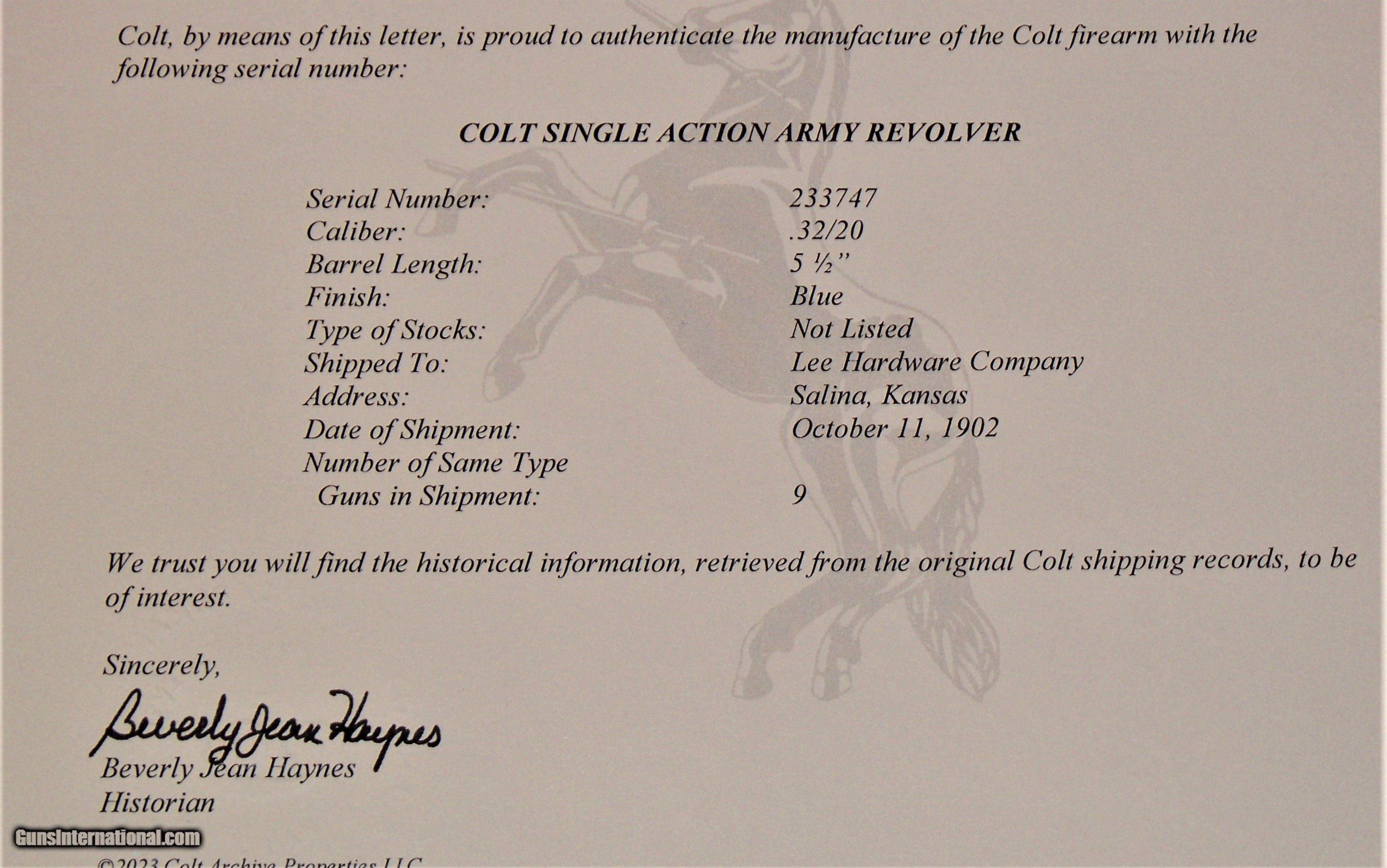 Colt 1st Generation Single Action Army SAA .32 WCF 5.5 Barrel c. 1902 wHolster, Letter