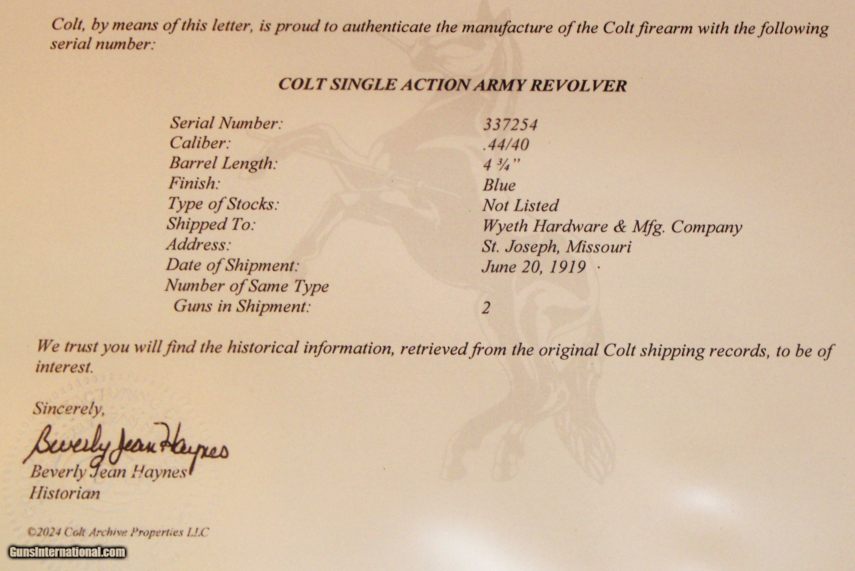 Colt 1st Generation Single Action Army SAA Frontier Six Shooter (.44WCF)