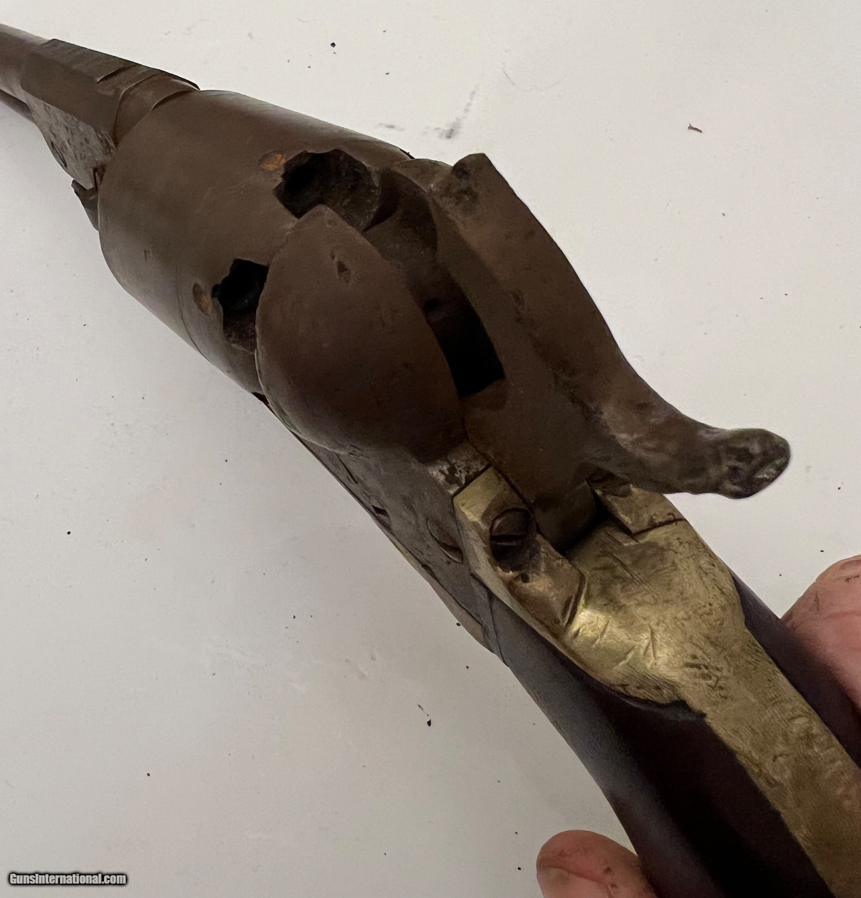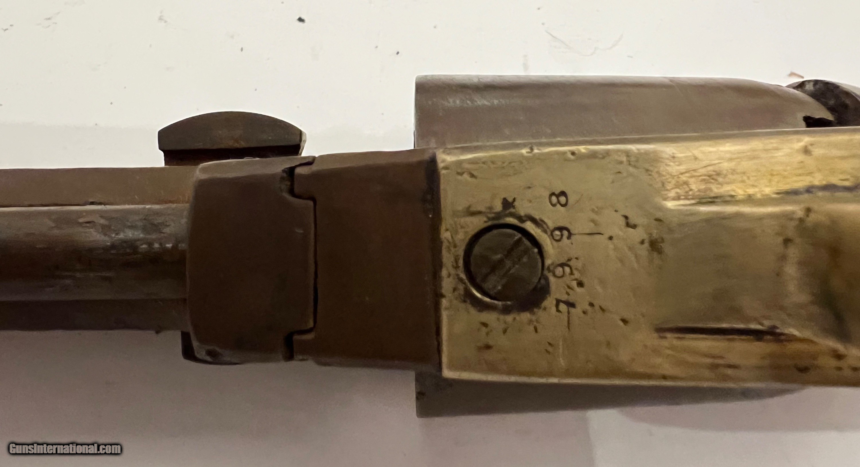 Description: Colt Dragoon 1st model 1849 production, very rough unworking condition. 7 1/2" barrel serial 7998 SOLD Antique: Yes Handgun Caliber: .44 Manufacturer: Colt Model: Dragoon Serial Number: 7998 Barrel Length: 7.5” |