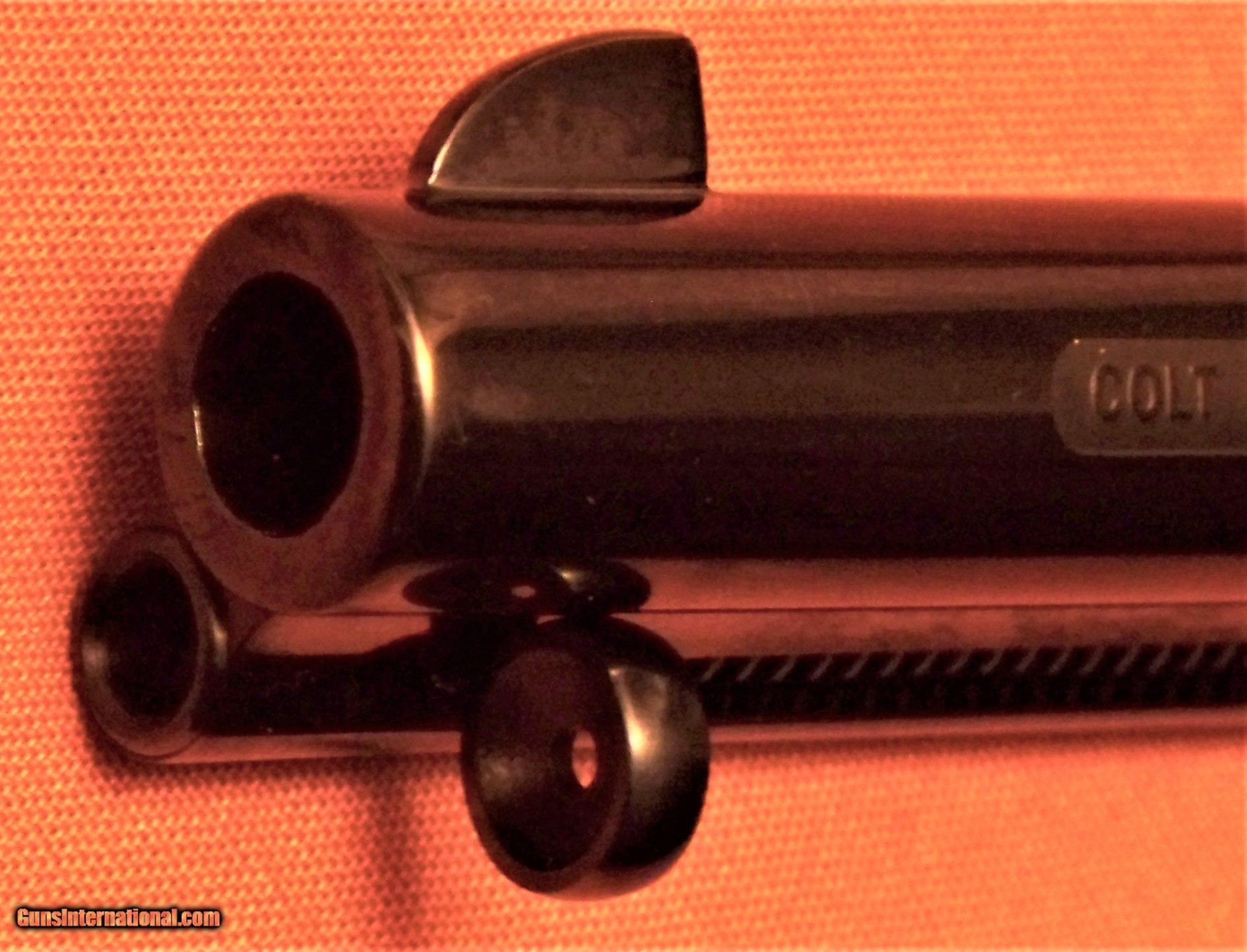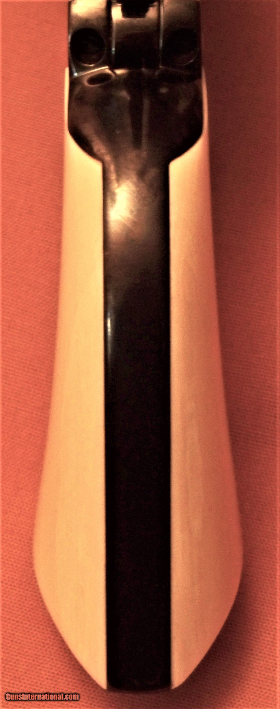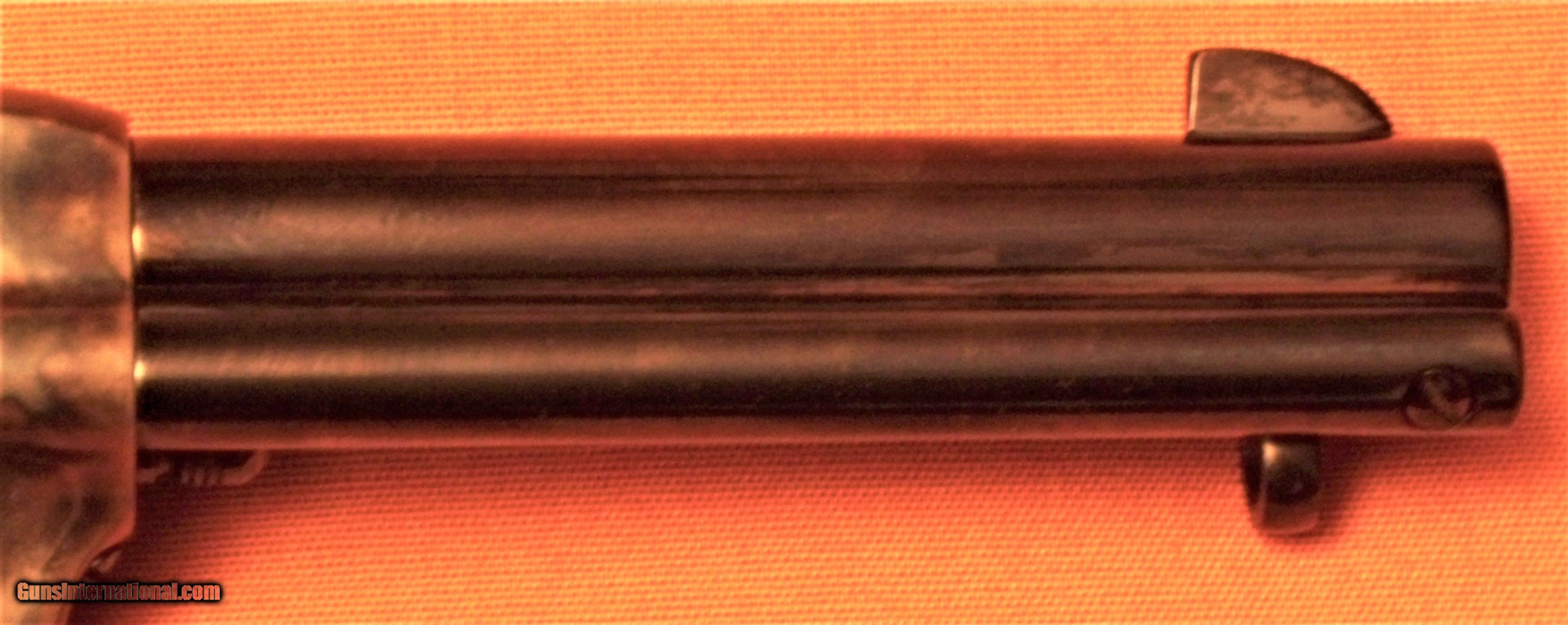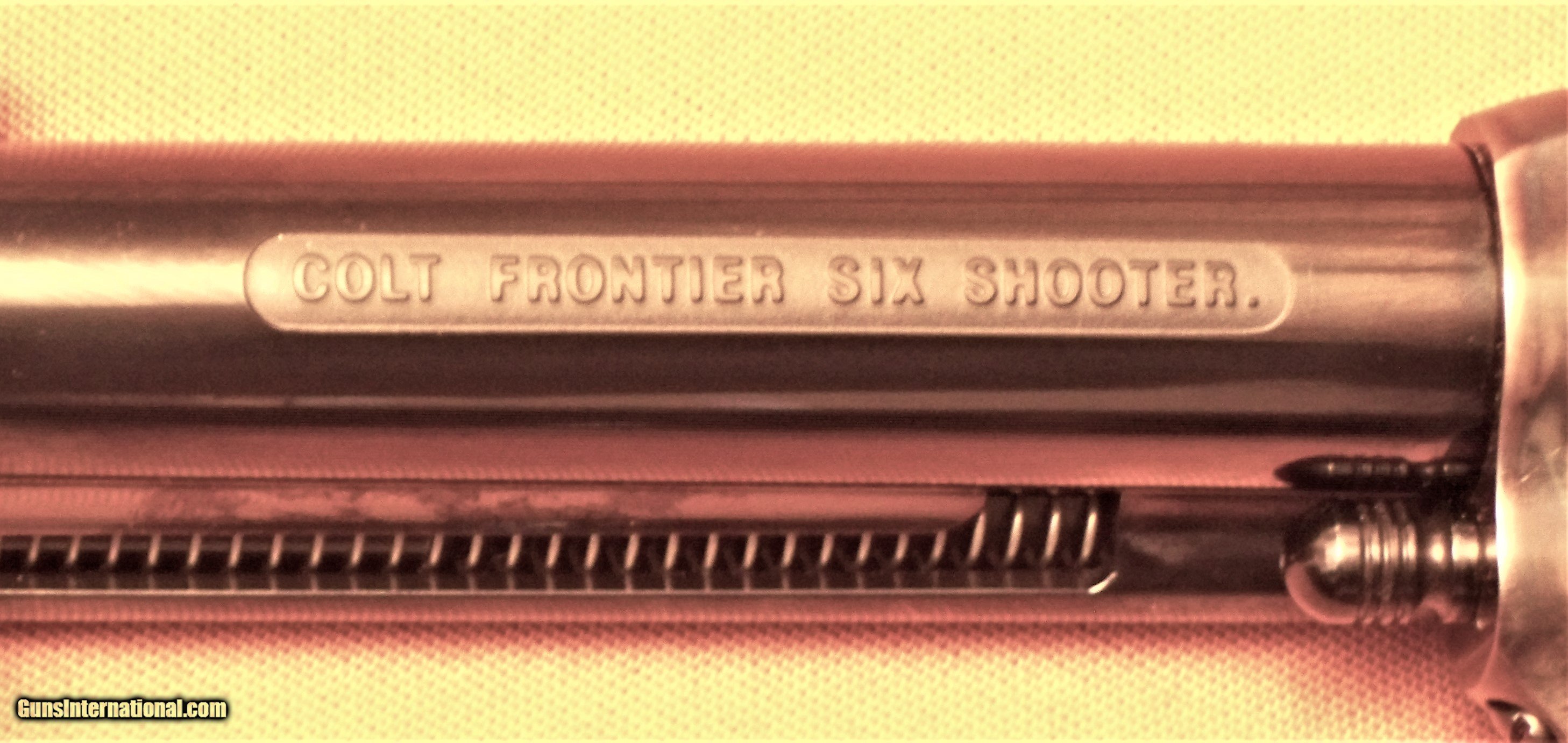 Description: This is a 3rd Generation Colt Single (SAA) Army revolver made in the Custom Shop 1993 (serial #S03311A). It is a Colt Frontier Six Shooter (.44-40 or .44 WCF) with 4.75” barrel, blue and case colored black powder frame, etched panel on barrel, bullseye ejector rod and one-piece factory ivory grips. It is New-in-the-Box, unturned and unfired, with all original papers, blue Custom Shop box in white sleeve cover, with the original factory label for this specific gun. Part of what makes this gun relatively rare is the etched panel on the left side of the barrel, rather than a standard roll die or caliber designation. Most etched panel guns came out between 2008 and 2010 (blued guns only produced for one year – discontinued in 2009). From my research I discovered some etched guns were made possibly as early as 1983 on special order, and another group made for distributor Lew Horton in early 1993. Serial numbers of these 200 or so guns may have had an extra “C” added before the SA in the serial prefix. Colt announced at some point after 2010 that they would not make the etched panel guns again to “,,,protect the investment of those who bought them…”. Most, if not all, etched panel guns had black powder frames (single base pin retaining screw in front rather than the spring-loaded cross release pin design). Shipping is $100.00 Priority, insured. SOLD Handgun Caliber: .44-40 Winchester (.44 WCF) Manufacturer: Colt Model: SAA Serial Number: S03311A Barrel Length: 4.75 |