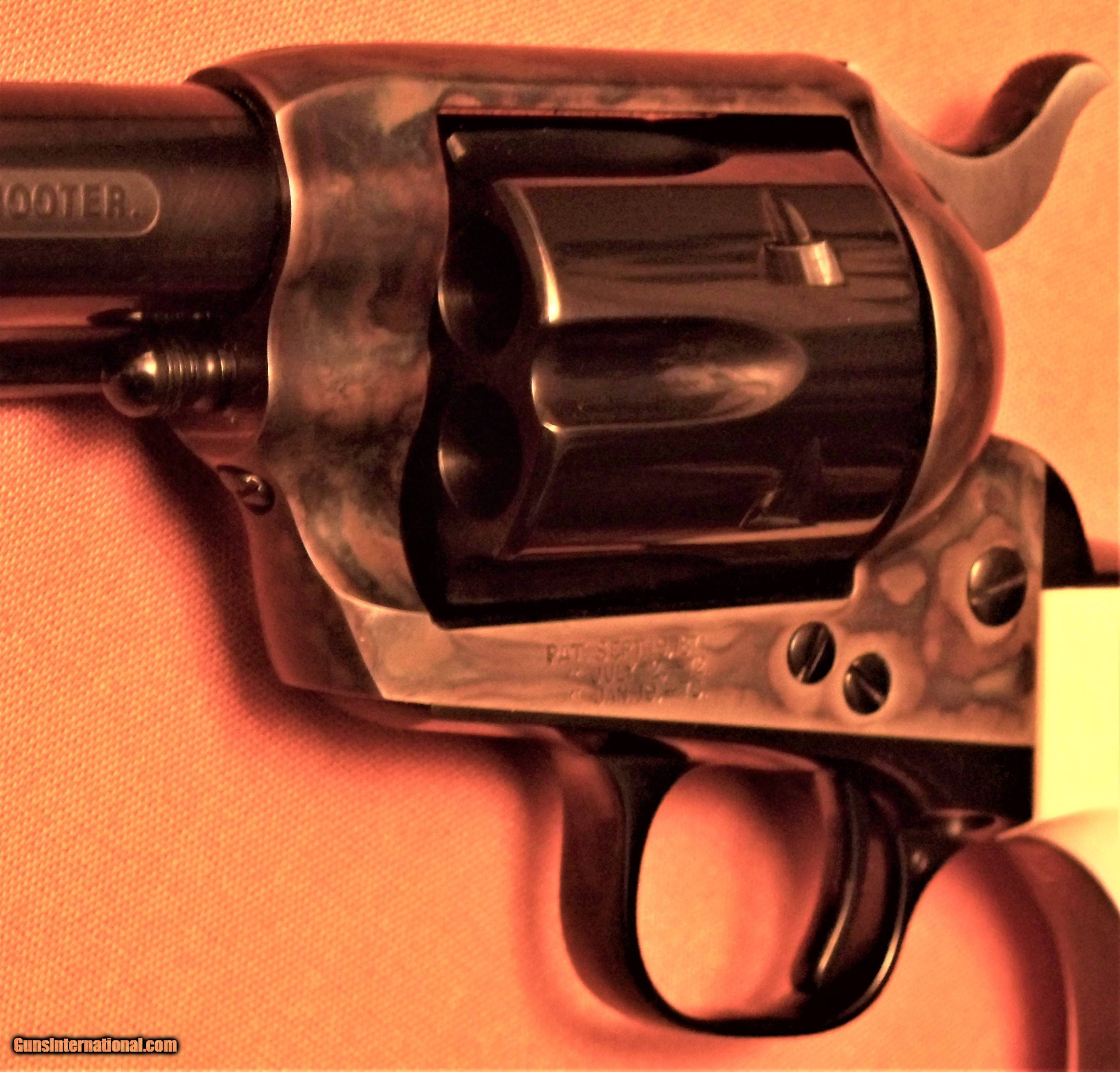 Colt 3rd Generation SAA Single Action Army, Etched Panel Frontier Six Shooter, Blue & Case, 4.75 Barrel, Factory One-piece Ivory Grips, Black Powder F