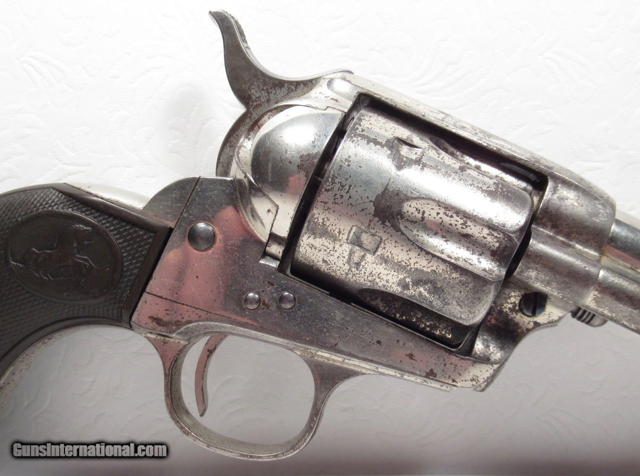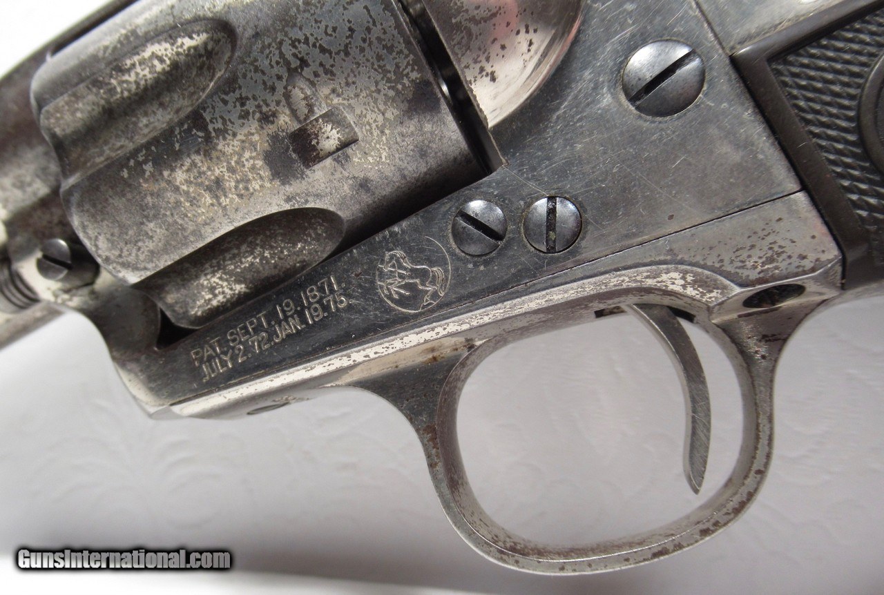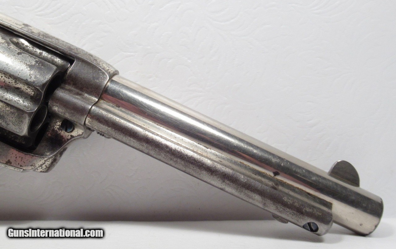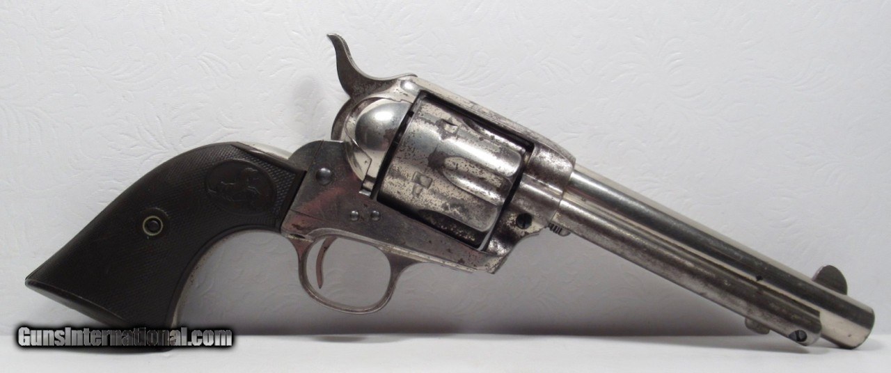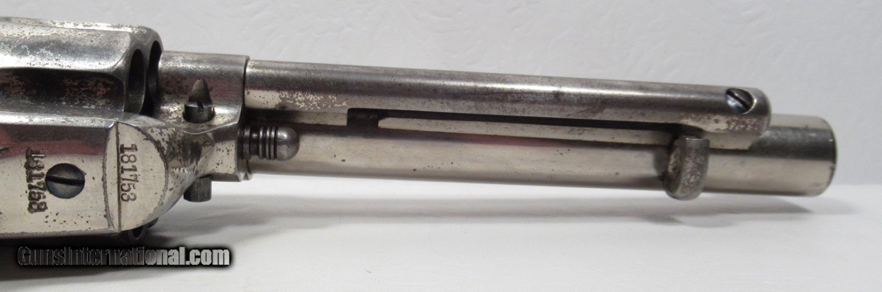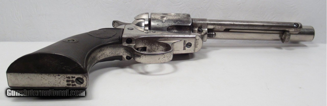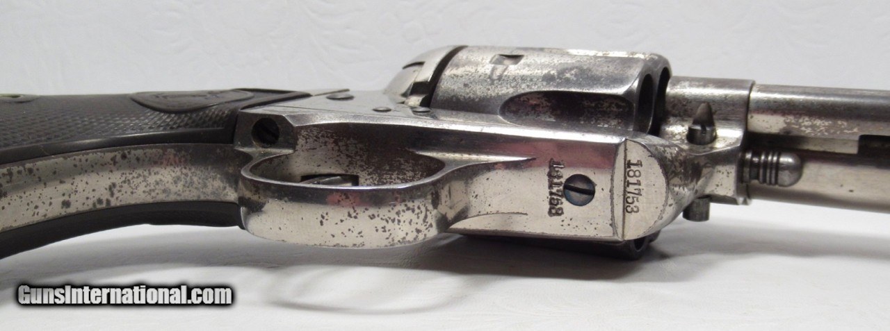 Description: Colt Single Action Army Revolver; Serial No. 181753; Per Included Factory Letter: .45 Caliber with 5 ½” Barrel, Nickel Finish, and Rubber Grips; Shipped to Colt Distributor Simmons Hardware of St. Louis, MO. in 1898; This is a 100% MATCHING, PURE, ORIGINAL Colt SAA; a Rare Find for a Pure 125 Year-Old Texas Colt out of the Fort Worth, TX area; Very Rarely do you find an Antique Single Action that Has Not Been Messed With; Most of the Original Nickel Finish Remains, Full Front Sight, Perfect Screws & Great Original Colt Hard Rubber Grips; Perfect Action; Strong Bore with only light minor frosting; Nickel Plated Colt SAA’s were Preferred by Cowboys & Law Men due to the Durability of Nickel Finish; See All Photos for Condition; No Texts; Call (254)541-5765 or Email Only; PERSONAL PROPERTY of Harold Wieser; Price: $5,975 + $45 S&H Via USPS PRIORITY MAIL; Payment Address: Harold Wieser - 1466 U.S. Hwy 77 - Rosebud, TX 76570; SEND PAYMENTS VIA USPS PRIORITY MAIL; BEWARE of SCAMS!!! – DO NOT SEND MONEY or CORRESPONDENTS ELECTRONICALLY UNLESS YOU HAVE SPOKEN to HAROLD WIESER FIRST! 254-541-5765 SOLD Antique: Yes Manufacturer: Colt Model: 1873 Serial Number: 181753 |