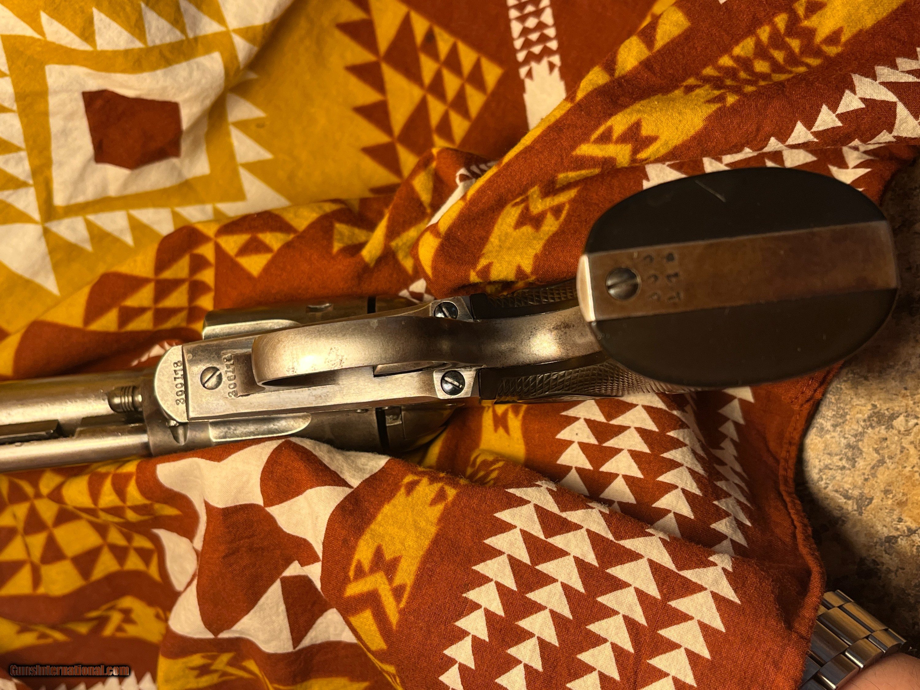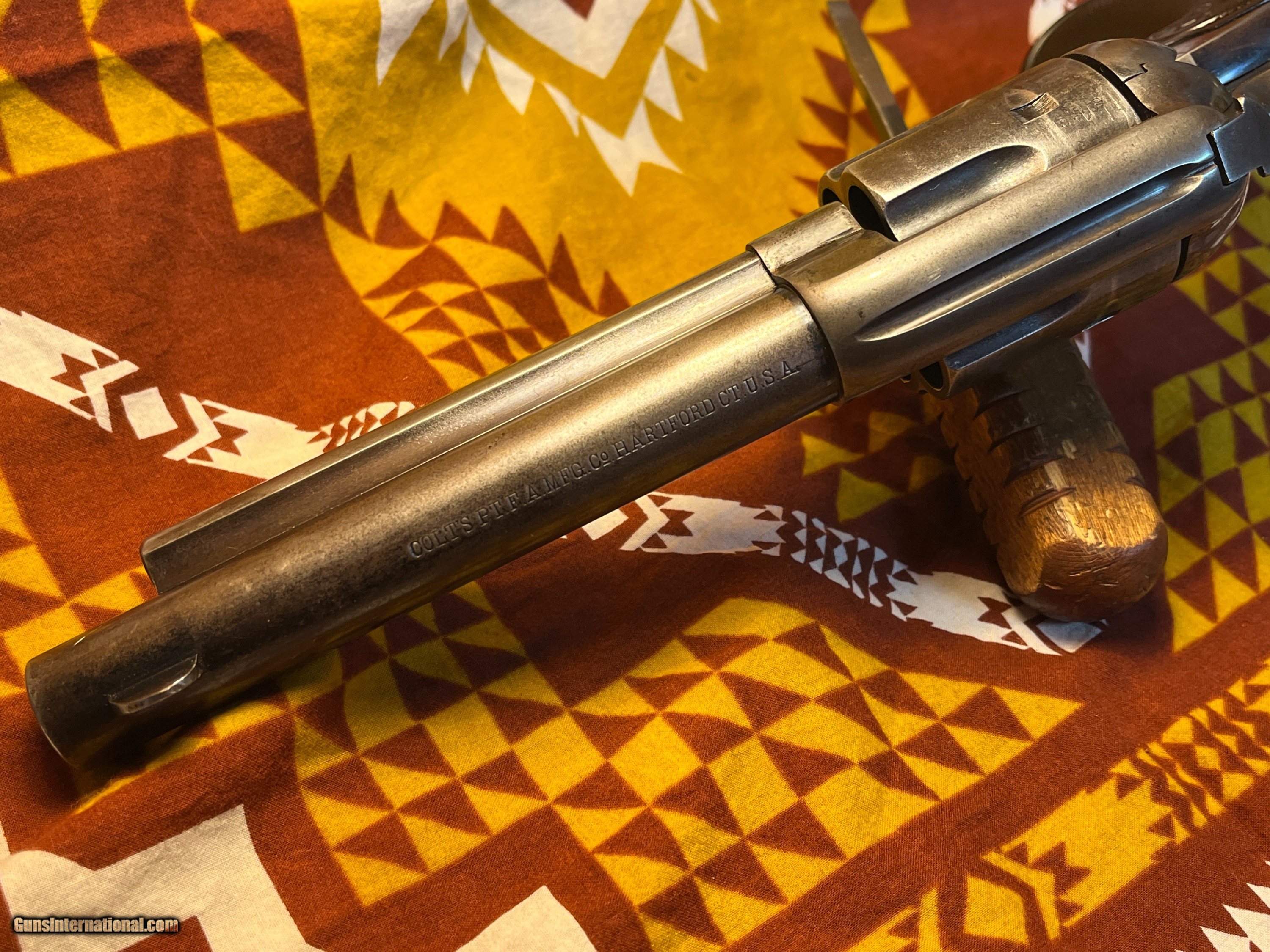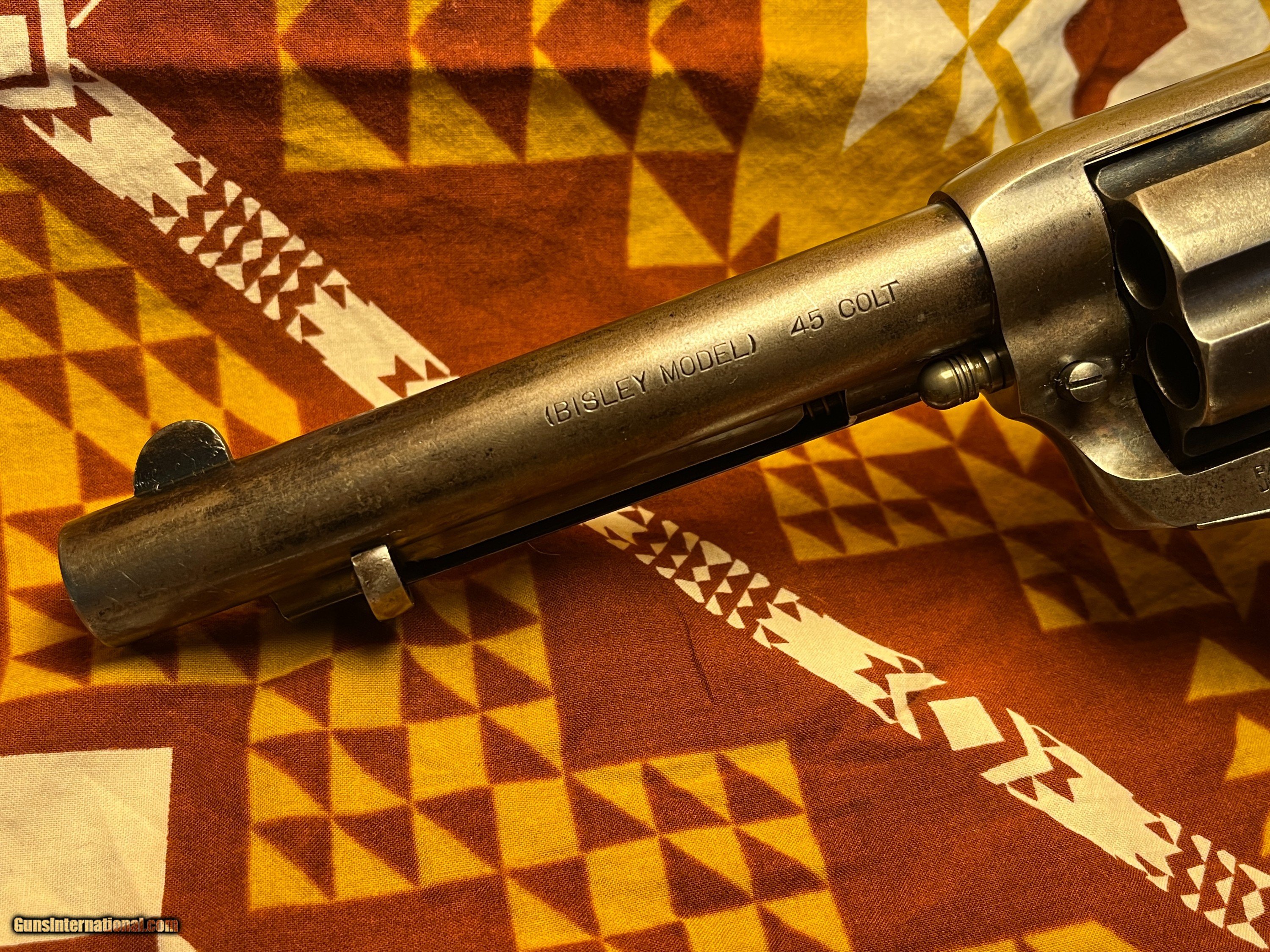Description: For sale is a solid and honest Colt Bisley Model. Nearly all of the original blue has faded to patina; the exception is some of the nitre bluing on the trigger. There are only a few areas of minor pitting in the past, and the bore has very sharp rifling. The original grips are without chips or cracks as well. Hence why I say it is a solid/honest gun. It is an old gun and has the wear that come with age, but it has not been abused. Functions as it should. Has only had a few very light handloads run through it in my ownership. I can only take a certified check as payment. Shipping in a hardcase is $60. If you would like to insure it, that can be done for an additional price. Best regards, Ethan SOLD Handgun Caliber: .45 Colt Model: Bisley Serial Number: 300100 Manufacture Date: 1907 Item Location: Eastern Washington |