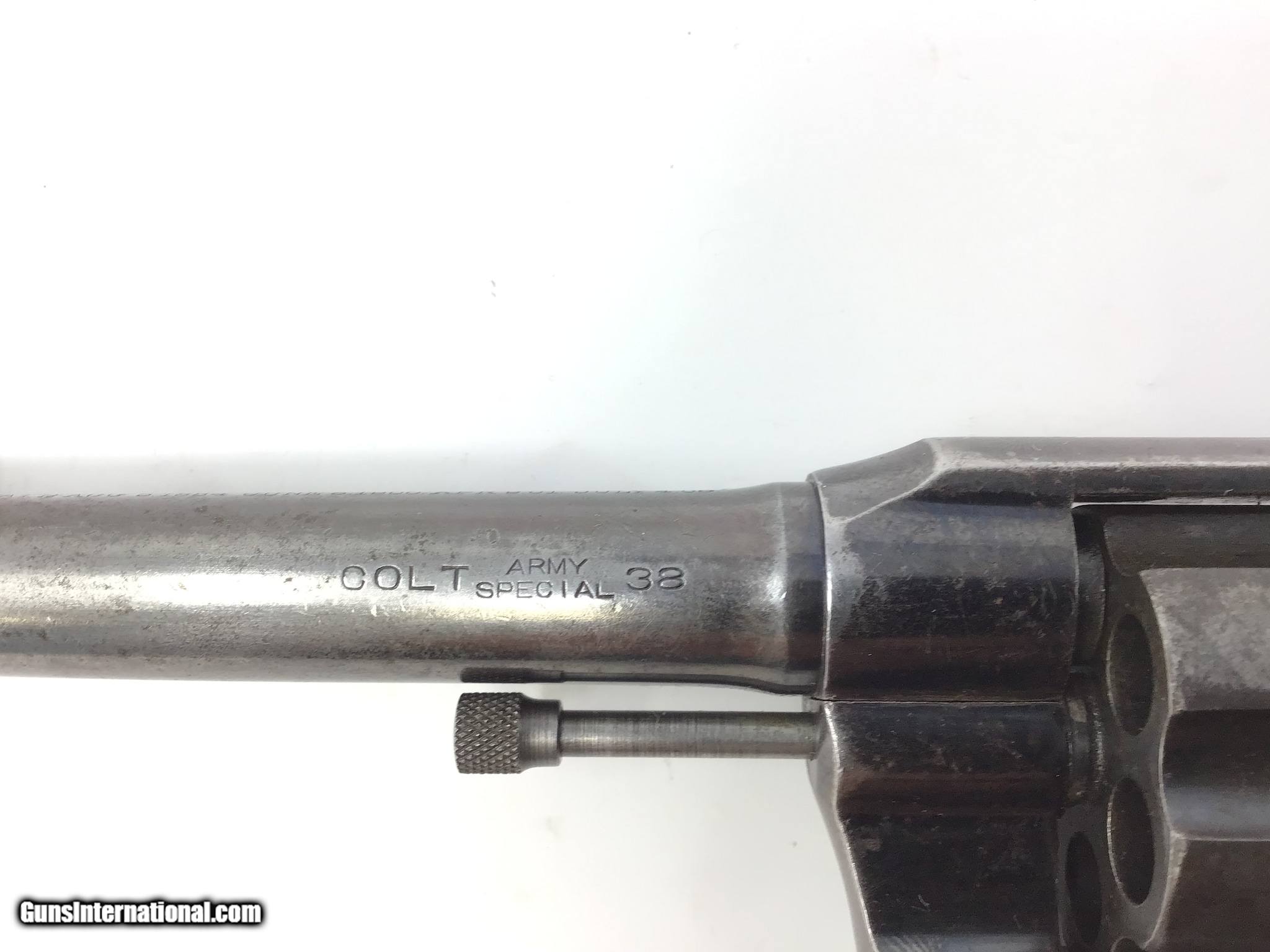 Description: Guns Listing ID: 587639 The Colt Army Special is a double action, six round revolver. Classical model Colt Official Police is a medium frame, double-action revolver with a six-round cylinder, primarily chambered for the .38 Special cartridge, and manufactured by the Colt‚‚s Manufacturing Company. Released in 1908 as the Colt Army Special, the revolver was renamed the \"Colt‚‚s Official Police\" in 1927 in order to better market to law enforcement agencies. It became one of the best selling police firearms of all time, eventually in the 1950s coming to exemplify typical law enforcement officer weaponry.[2] The Official Police was also used by various U.S. and allied military forces during World War I SOLD Manufacturer: COLT Model: Colt Single Action Army Revolver Caliber Info: 38 SPL +P Condition: Used - Non-Certified Barrels: 6 BARREL |