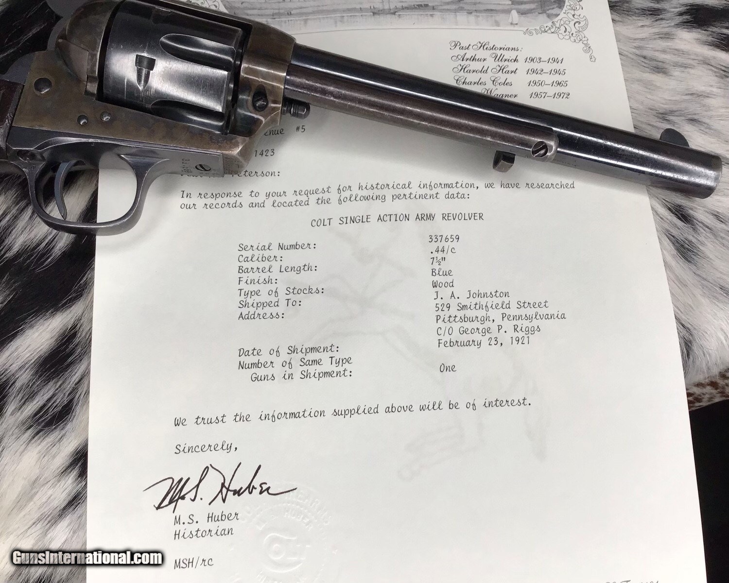 COLT FRONTIER SIX SHOOTER SINGLE ACTION REVOLVER (1921). W/Colt Archives letter