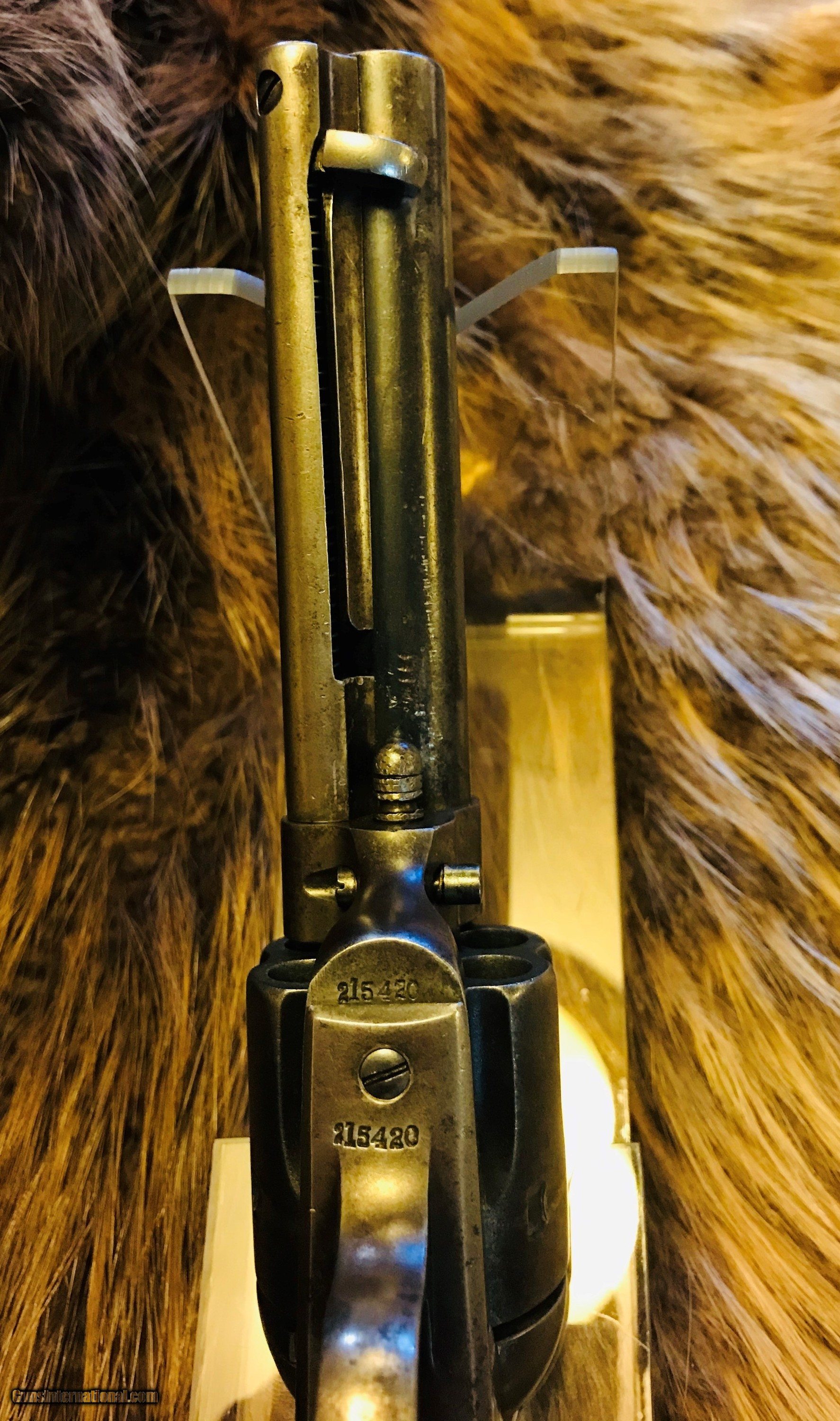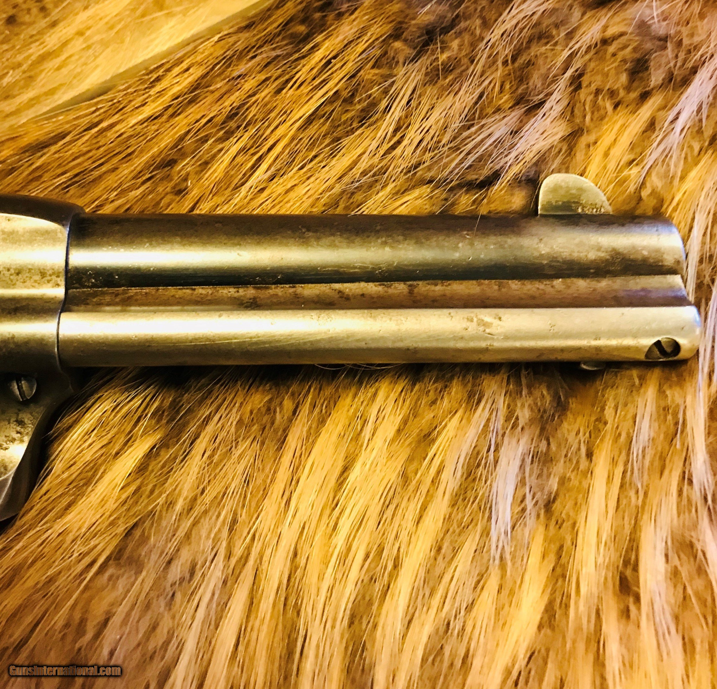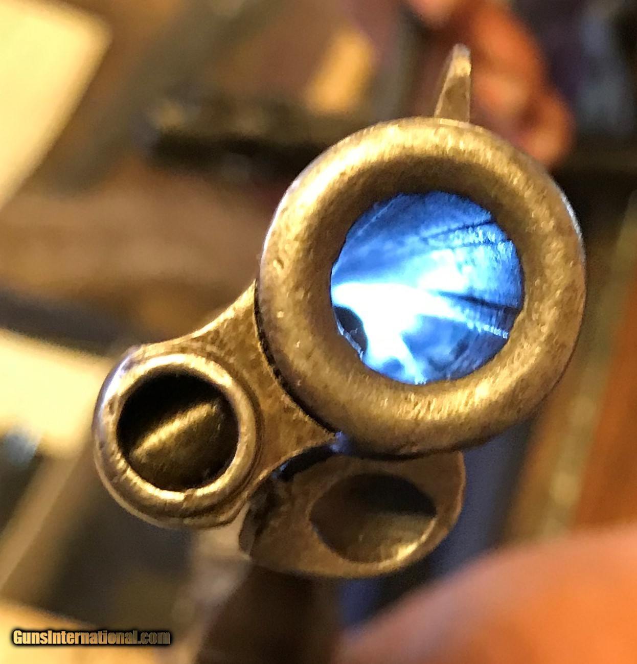 Description: Colt 1st Gen 38 WCF (38-40) shipped in 1901 to Kanas City Missouri. Nice all original shooter grade Colt with 4 3/4" barrel. Colt Archive Letter. The bore would rate 5-6 with strong lands and shallow pitting in the grooves. It has a W or VV scratched on the butt and an arrow scractched in the left grip. A little play in the cylinder with very little end shake. $2,400 shipped to your FFL. Reasonable offers accepted. Credit cards accepted at no additional fee. 3 day inspection. SOLD Curio/Relic: Yes Manufacturer: Colt Model: SAA Serial Number: 215420 Caliber Info: 38 WCF Manufacture Date: 1901 |