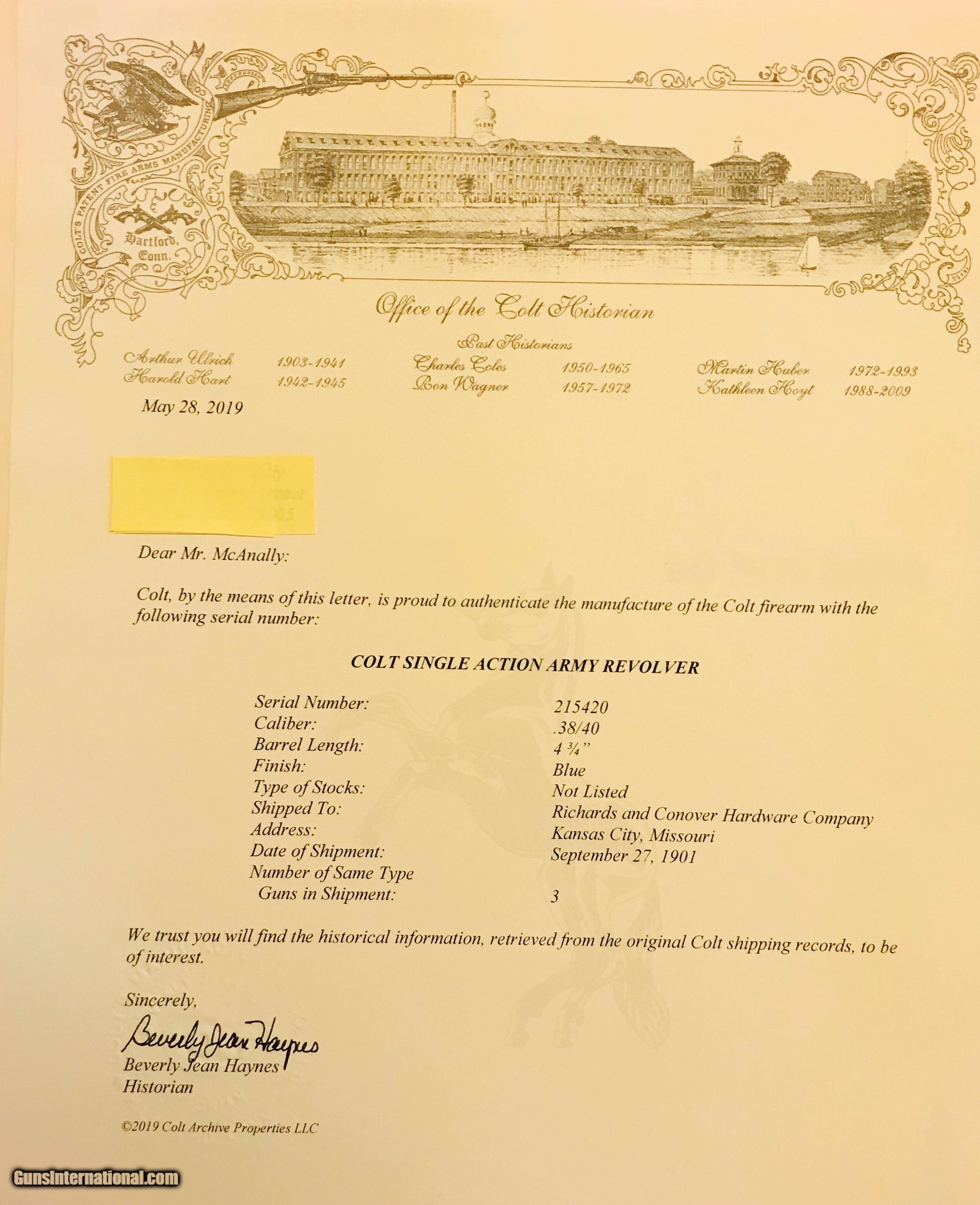 Colt SAA 1st Gen. 38-40 with Letter