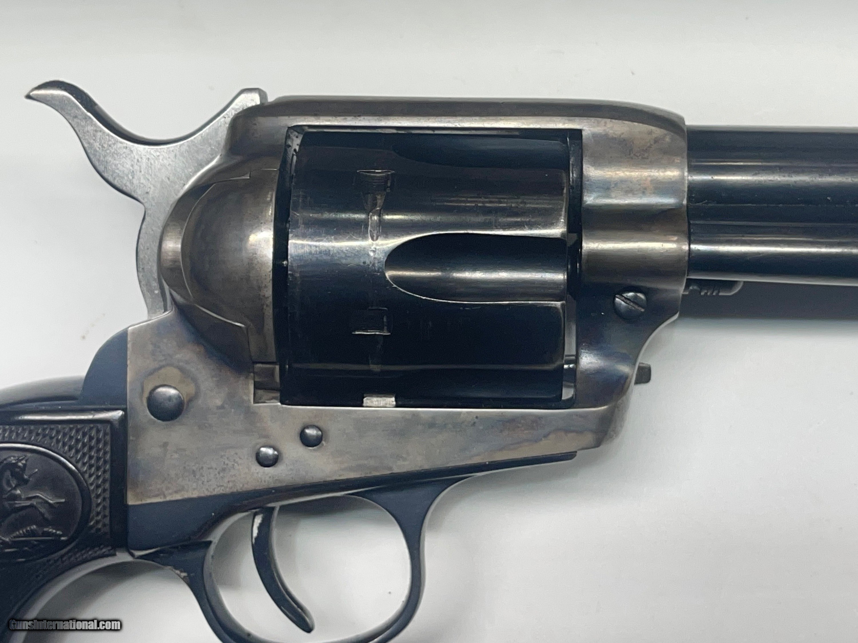 Description: All original in very nice condition "Colt Frontier Six Shooter ". Made 1903. Last 2-digits covered in pics for security. 90% -95% original blue and case colors. 4.75" barrel. Excellent bore and cylinder chambers. Locks up and indexes properly. No rust or pitting. Serious offer considered. Buyer to pay actual shipping and insurance costs. SOLD Handgun Caliber: .44-40 Winchester (.44 WCF) |