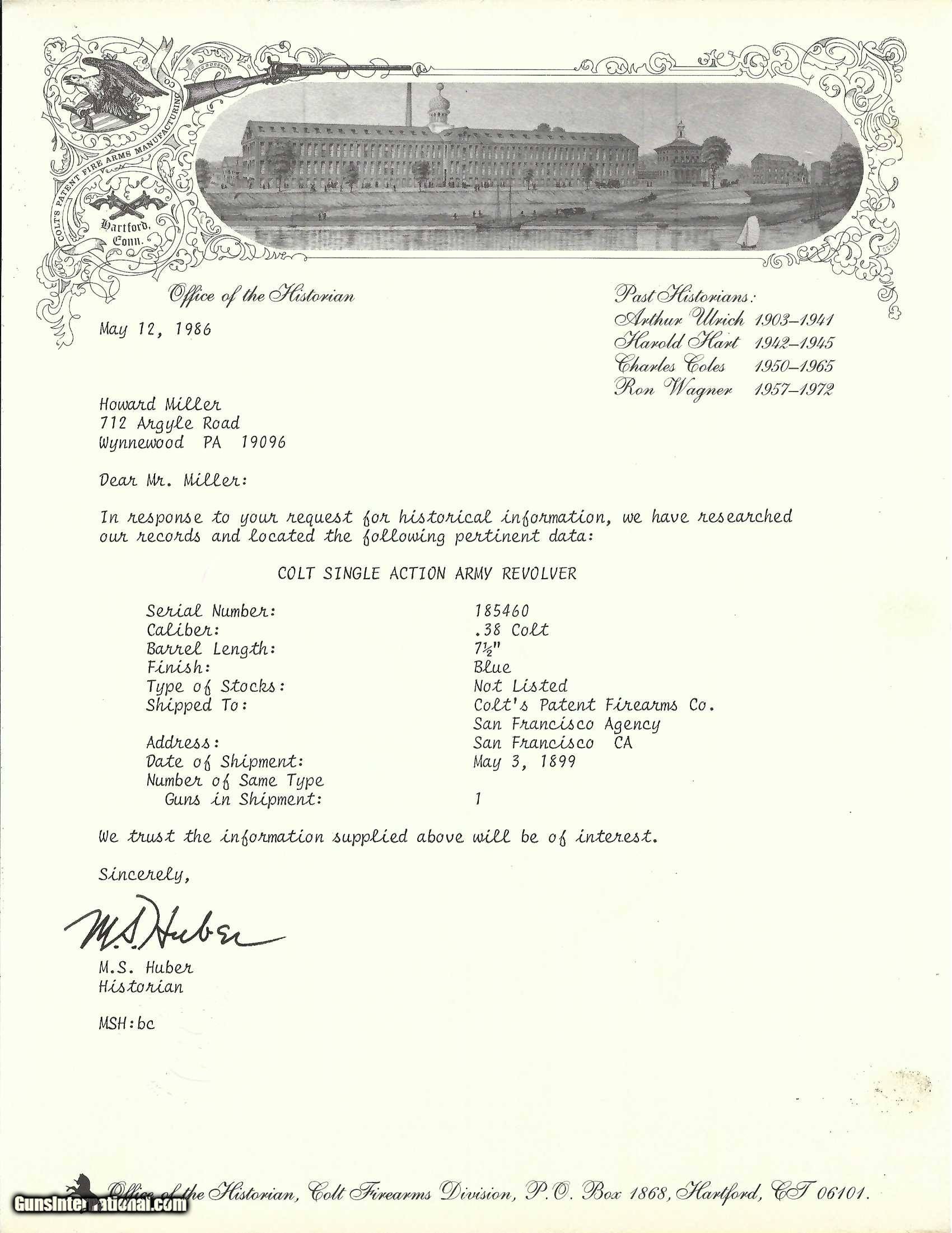 Colt, SAA, 1st Gen, Rare .38 Colt, SN: 185460