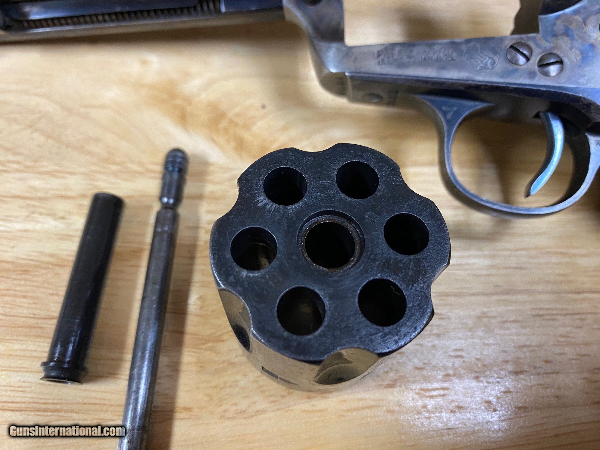 Description: This gun was mfg in 1911. Factory letter included. Great bore and lockup. Beautiful original finish. All correct, except for the grips. 3 sets of numbers makes this a cowboy era single action. offers accepted Shipping to your FFL: $75.00 SOLD Curio/Relic: Yes Handgun Caliber: .32-20 Winchester (.32 WCF, .32-20 Marlin, .32 Colt Lightning ) Manufacturer: Colt Model: SAA Condition: Excellent |