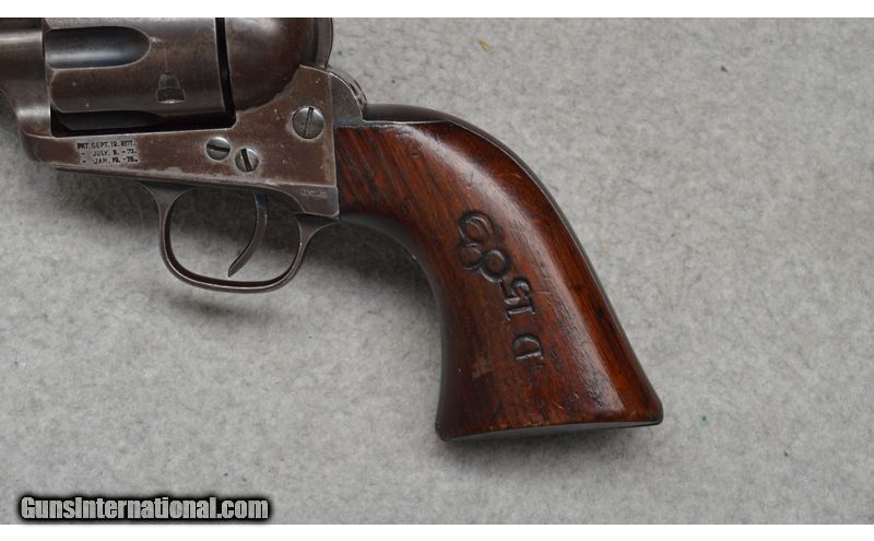 Description: Colt SAA,First Generation, Blackpowder Frame,"Overrun" manufactured in 1880 and chambered in .45 Cal. Firearm has all matching numbers with 7.5" barrel. Functionally it locks up tight and has a clean unpitted barrel with good grooves but th .45 ACP SOLD Antique: Yes Metal Condition: Good with various light marks, freckling, and wear Wood Condition: Very good with handling marks Barrels: 7.5 Sights: Notch and blade sights Item Location: Boise, ID |