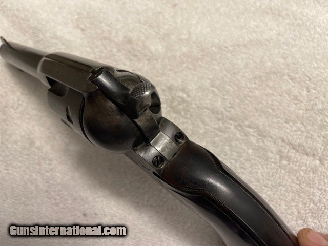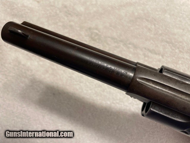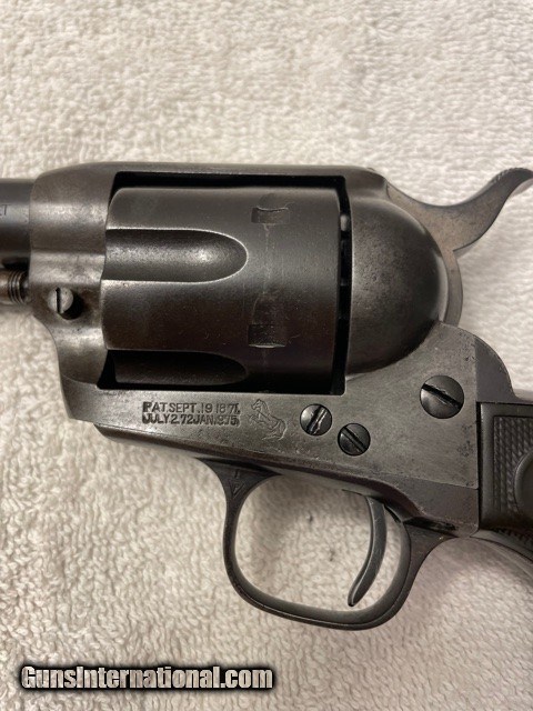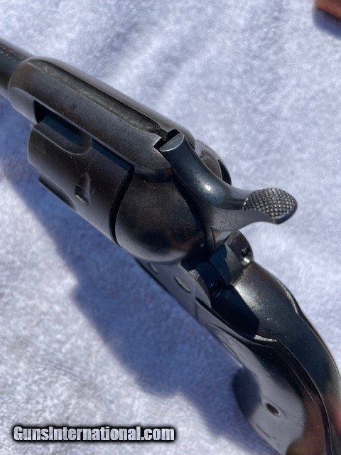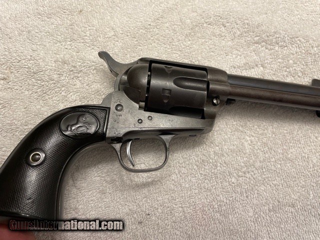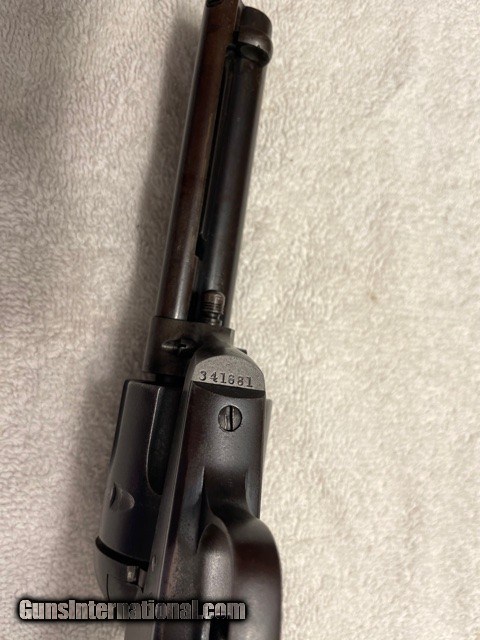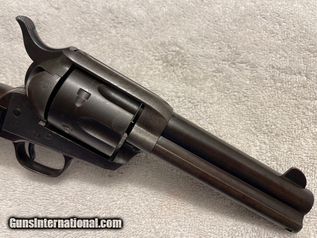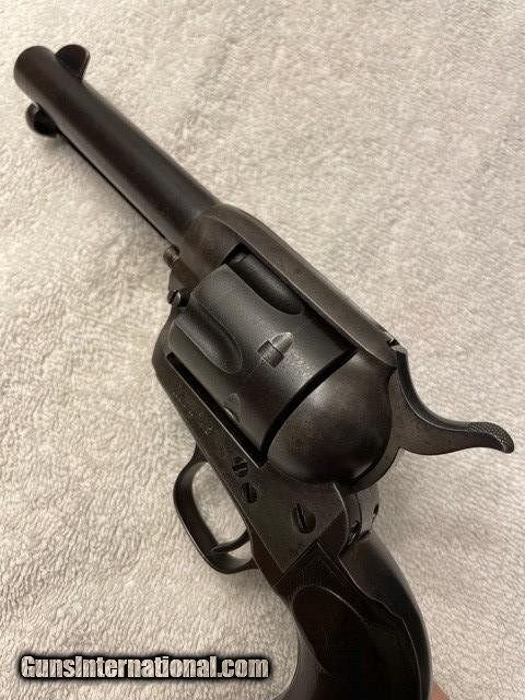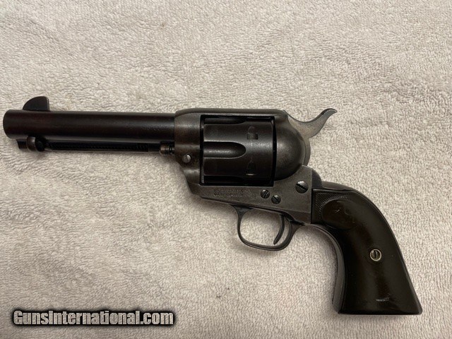 Description: Very sharp Colt Single Action factory 4-3/4 45 Blue, (I do not have a factory letter, but will guarantee confirguration is correct). Made in the first year of the serial number re-location, single frame serial number and two additional serial numbers under the grips (ALL MATCHING), cylinger has the last two digits (81) on the rear face of the cylinder. see photos. Gun has smooth patina blued finish sharp clear markings and strong 4-click action and locks tight. Excellent bore probably a solid 9/10, shinny with sharps lands and grooves very light pitting. SAA is an excellent shooter and hits point of aim; it'll shoot better than you do! Very straight and honest 1920 Colt SAA. Email or call for questions or more photos if needed. Priced to Move, excellent representative SAA that wont break the bank. **FREE SHIPPING ON THIS COLT** I am an 01-FFL Dealer, TEXAS SALES TAX to TEXAS SALES Only. 01-FFL or 03-C&R (where legal) Required. NO INTERNATIONAL SHIPPING, NO SALES TO CA. PAYMENTS via Cash, Check, or ZELLE APP. SOLD Curio/Relic: Yes |
