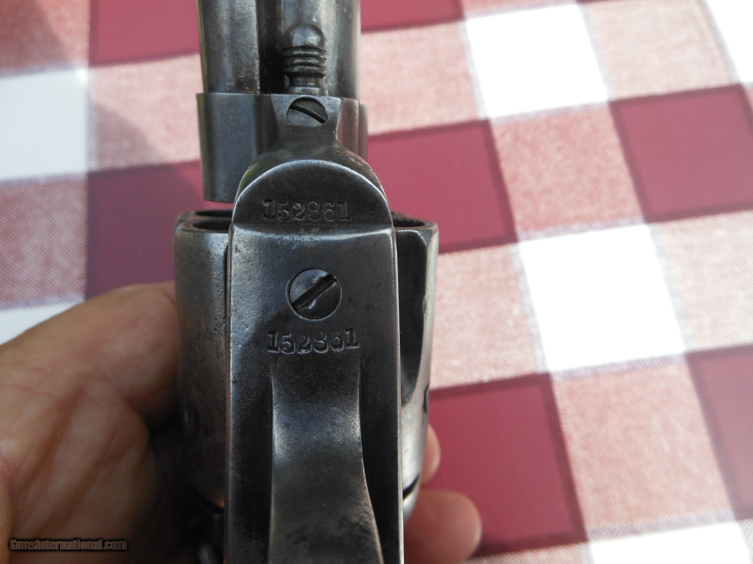 Description: This is a colt SAA 4.75 in 44-40 sent to Ft Smith Arkansas in August of 1893. All 4 clicks on the action and grips are original to the gun. This one has never seen a buffing wheel which is how I like them. The bore is about 6 out of 10 as you would expect in a black power work horse. Ft Smith History This was the gateway to The Indian Territory where only US Marshals were allowed to enforce the law. It was overseen by Judges like Isaac Parker who had no time for mercy. Judge Isaac Parker served as U.S. District Judge 1875–1896. He was nicknamed the "Hanging Judge": in his first term after assuming his post, he tried 18 people for murder, convicted 15 of them, and sentenced eight of those to die. Six of these men were later hanged on the same day. Over the course of his career in Fort Smith, Parker sentenced 160 people to death. Of those, 79 were executed on the gallows. SOLD Antique: Yes |