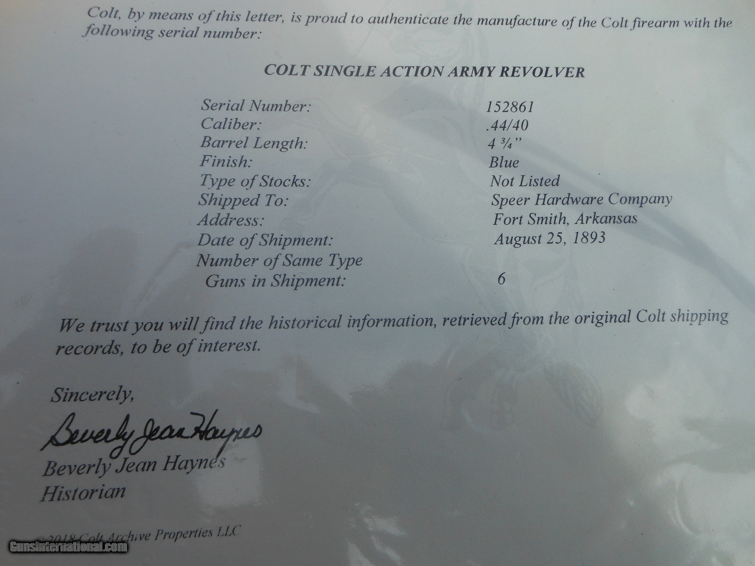 Colt SAA .44-40 4.75 inch sent to Ft Smith 1893.