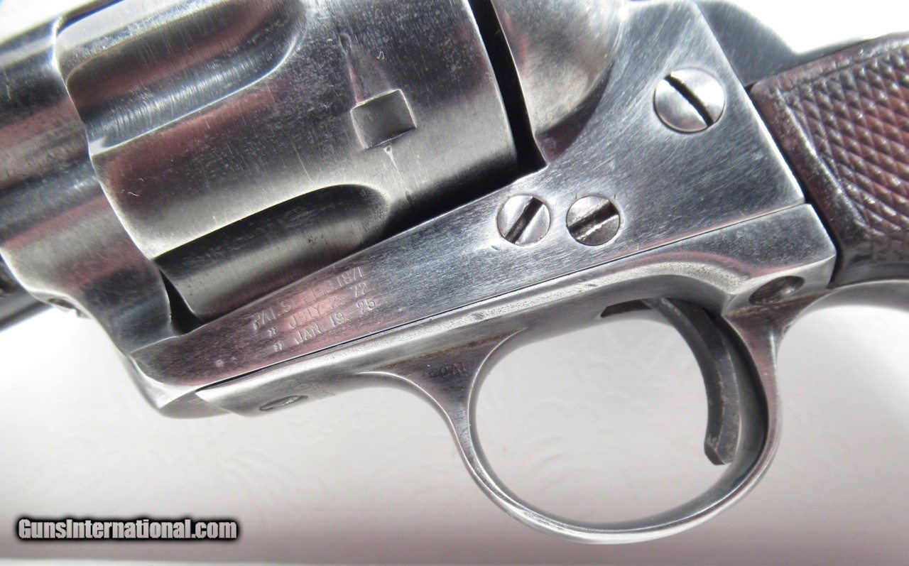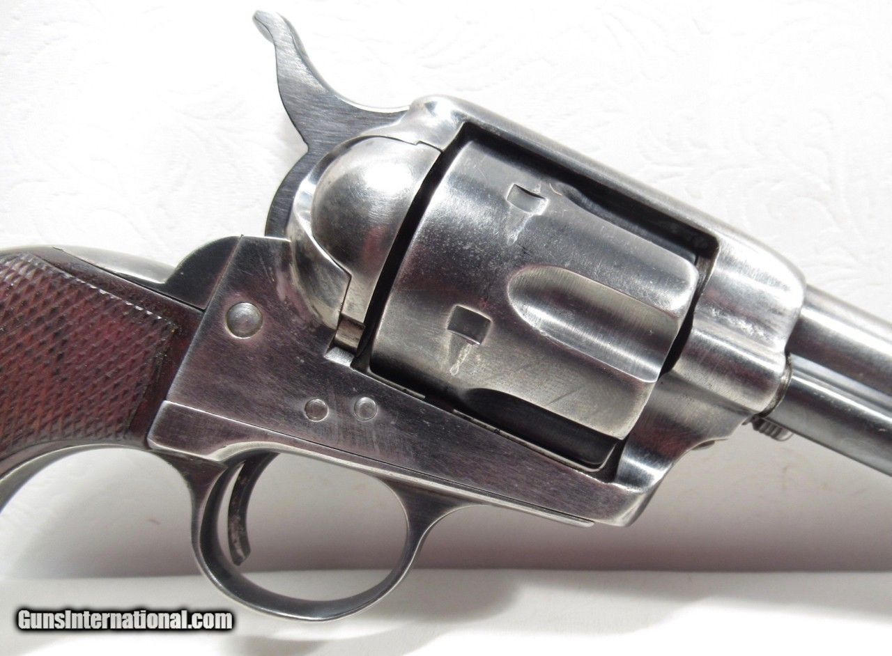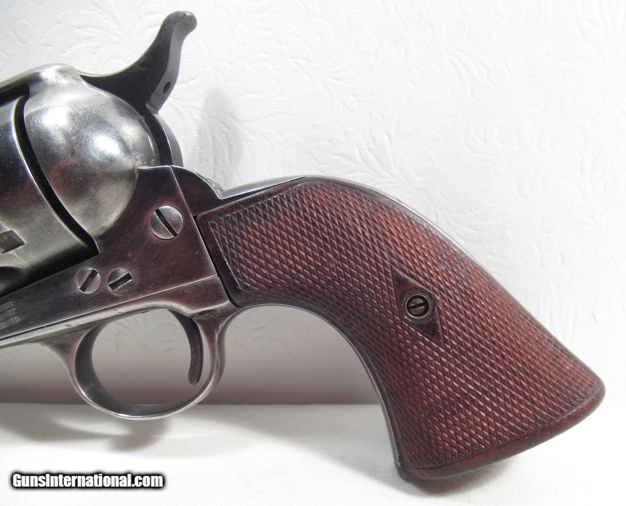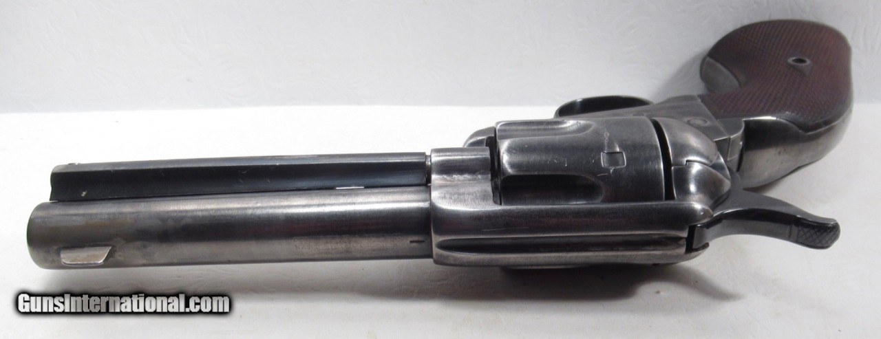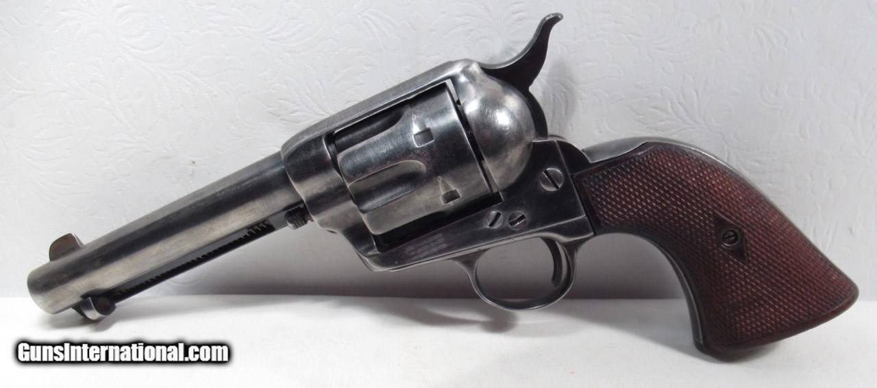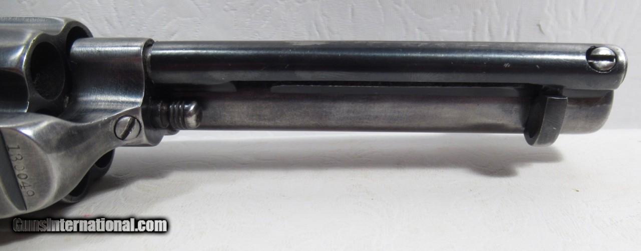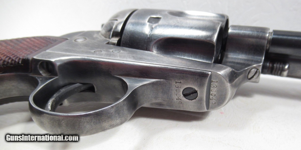 Description: Colt Single Action Army; Serial No. 130045; 45 Long Colt Caliber; 4 ¾” Barrel; Checkered Wood Grips; Good Amount of Old re-Finish in Blue Present; Good Action; Fairly Strong Bore with only light frosting; All Numbers Match; Ejector assembly does not fit well; Should be a Good 130 Year-Old Shooter/Collector Colt 45; No Sales to New York City or New Jersey; See All Photos for Condition; No Texts. Call or Email Only; PERSONAL PROPERTY of Harold Wieser; Price: $1,675 + $45 S&H Via FedEx Express; Price includes insured shipping; return policy: three days inspection from the date the item is received; full refund of shipping both ways ONLY IF THE ITEM IS MISREPRESENTED. SOLD Antique: Yes Manufacturer: Colt Model: 1873 Serial Number: 130045 |