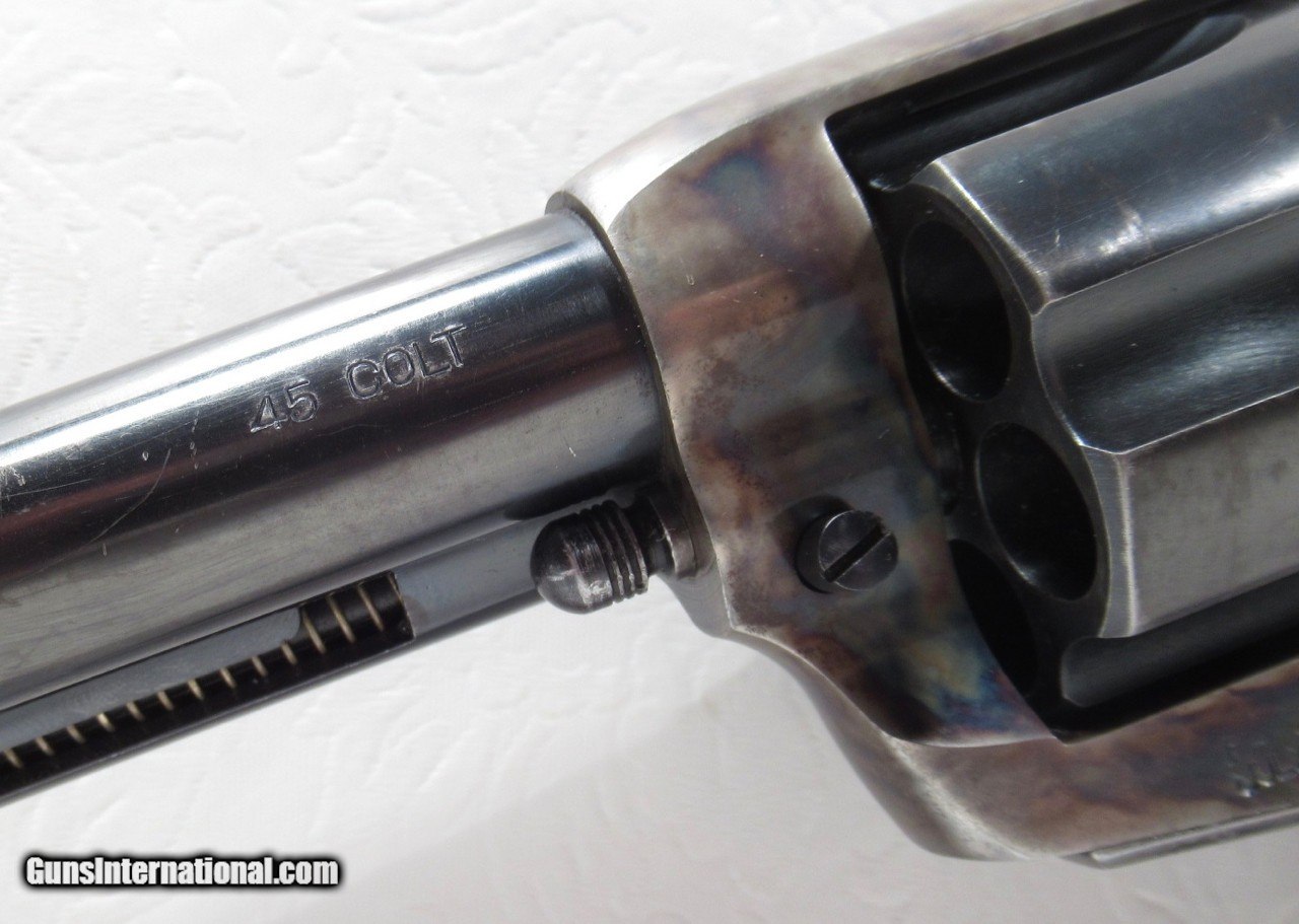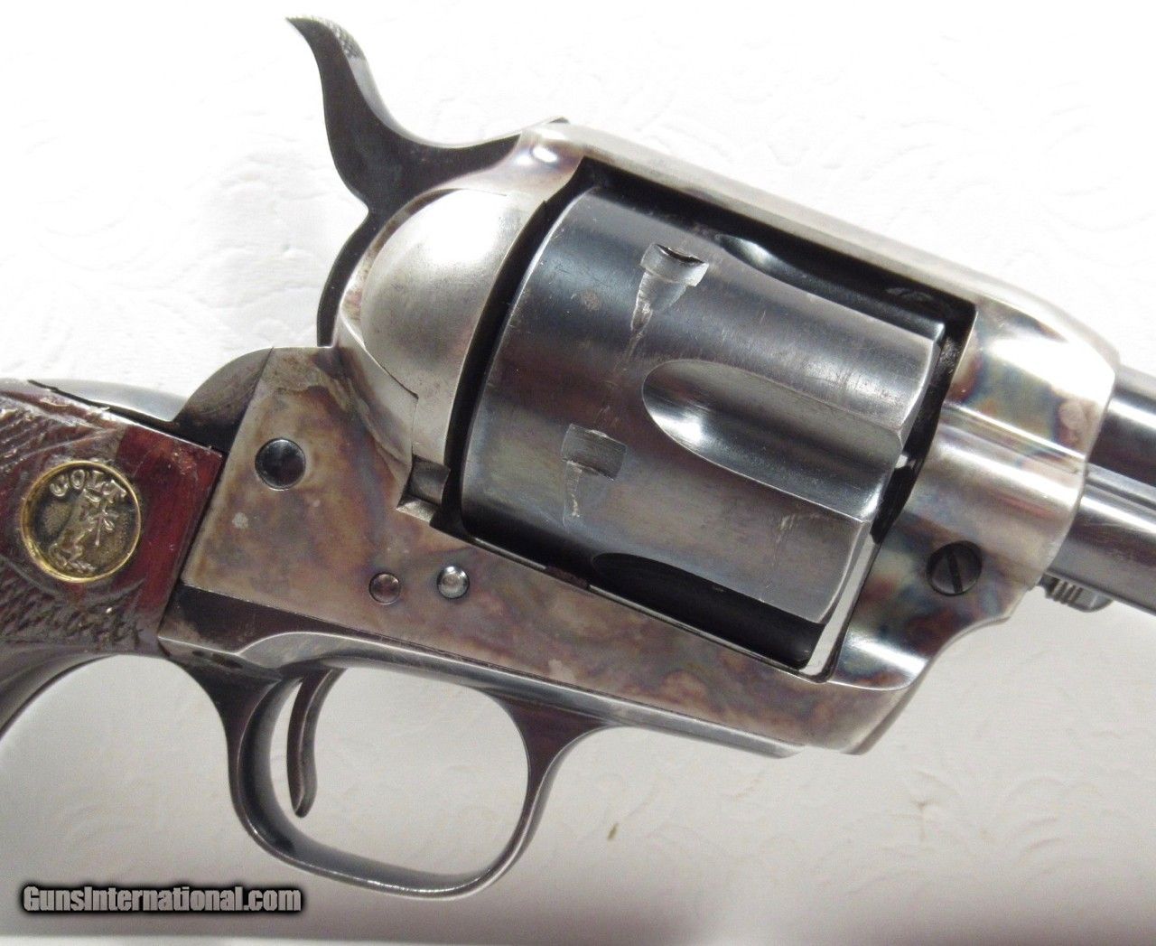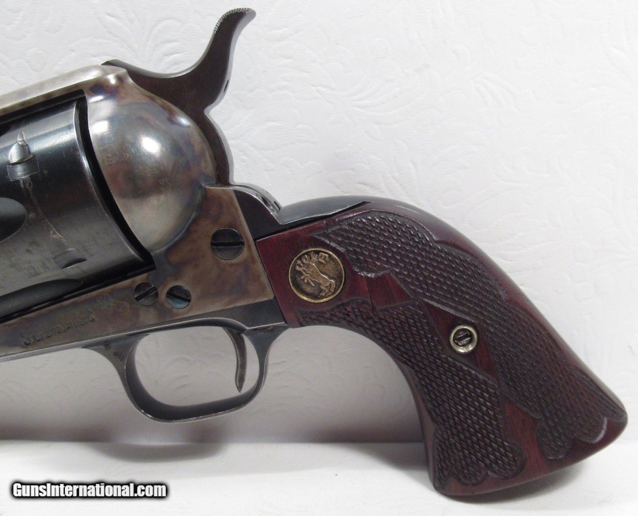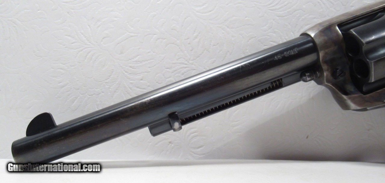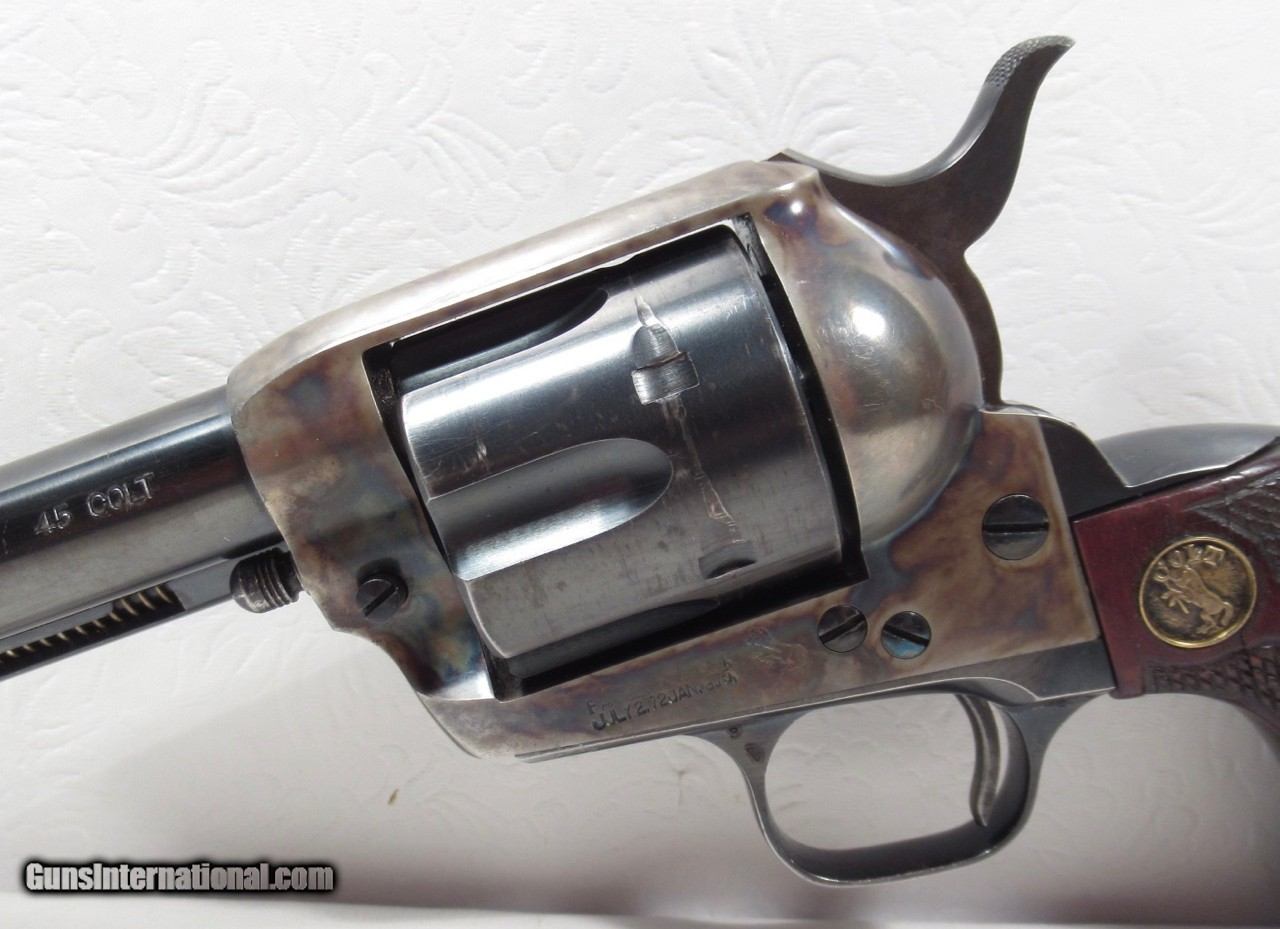 Description: Colt Single Action Army; Serial No. 348138; 45 Cal. – 7 ½” Barrel; Blue and Case Finish; Factory Letter Indicates a 1926 Shipping Date to Los Angeles Hardware Co.; Nearly All Original Metal Finish Remains; Hammer and Grips replaced; Perfect Action and Bore; Nice Fleur De Lies Walnut Grips; All Numbers Match with No. 38 on Back of Cylinder; See All Photos for Condition; No Texts. Call or Email Only; PERSONAL PROPERTY of Harold Wieser; Price: $5,900 + $45 S&H Via FedEx Express; Price includes insured shipping; return policy: three days inspection from the date the item is received; full refund of shipping both ways ONLY IF THE ITEM IS MISREPRESENTED. SOLD Manufacturer: Colt Model: 1873 Serial Number: 348138 |