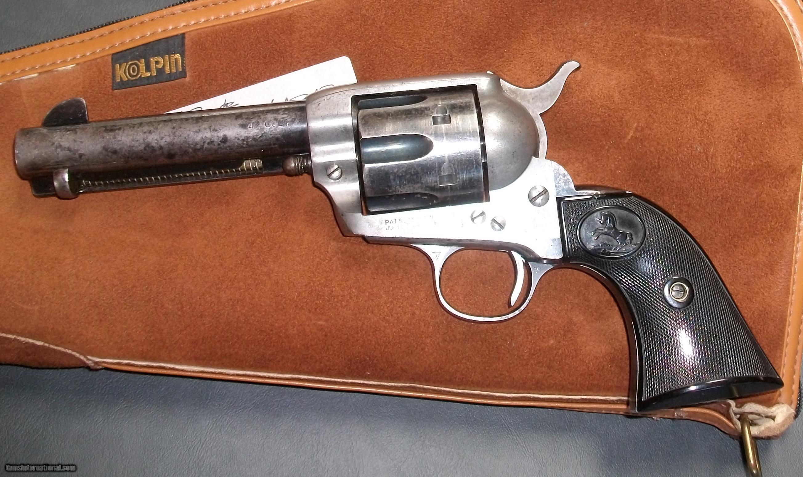 Description: Colt SAA Gen 1 .41 Colt 4-3/4 inch barrel. Manufactured in 1911, this revolver shows excellent, honest 50 % finish. Mechanically sound action. Comes with copy of Colt factory letter. SOLD |