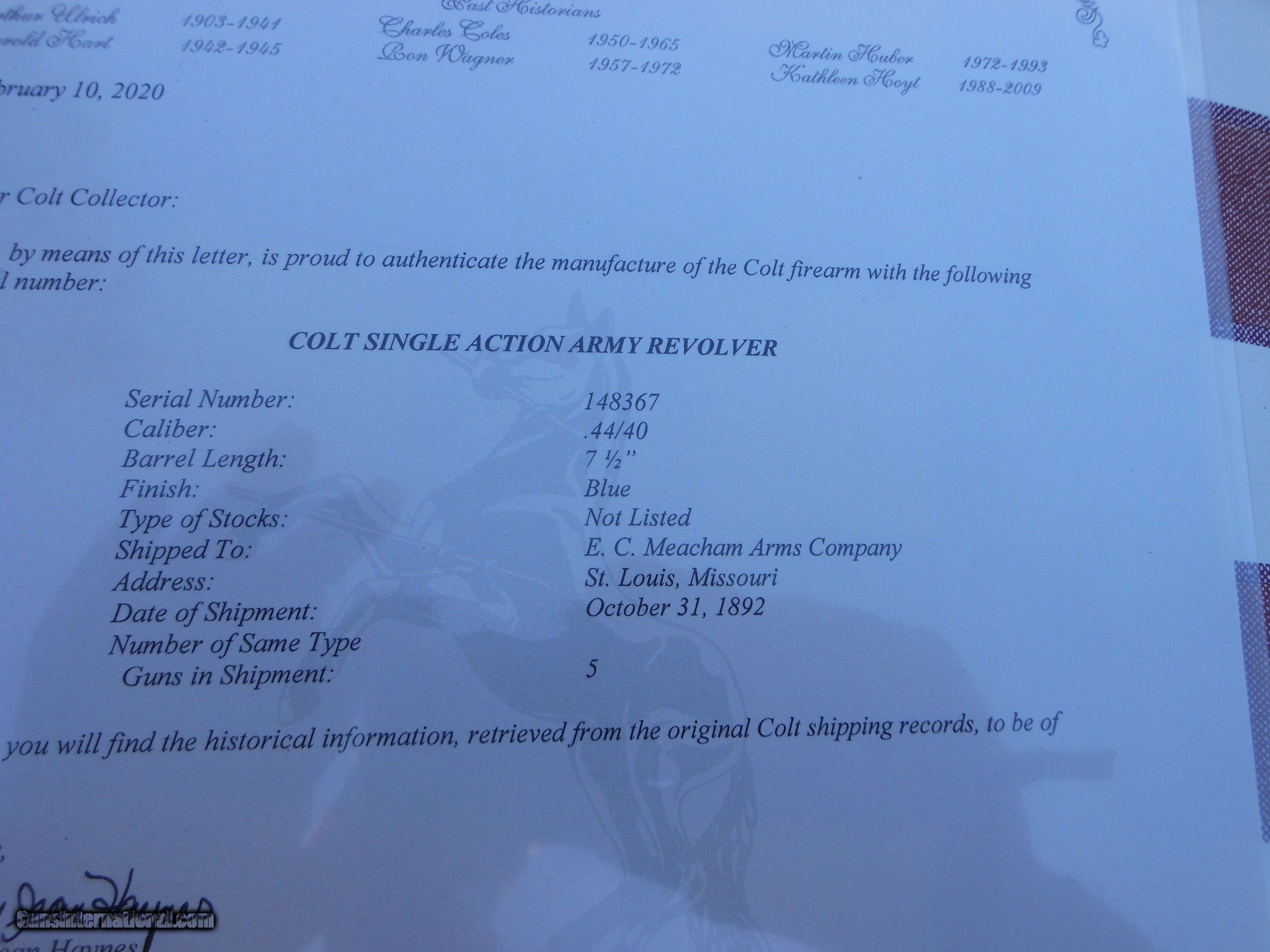 Colt SAA Lettered 1892 7.5 inch 44-40