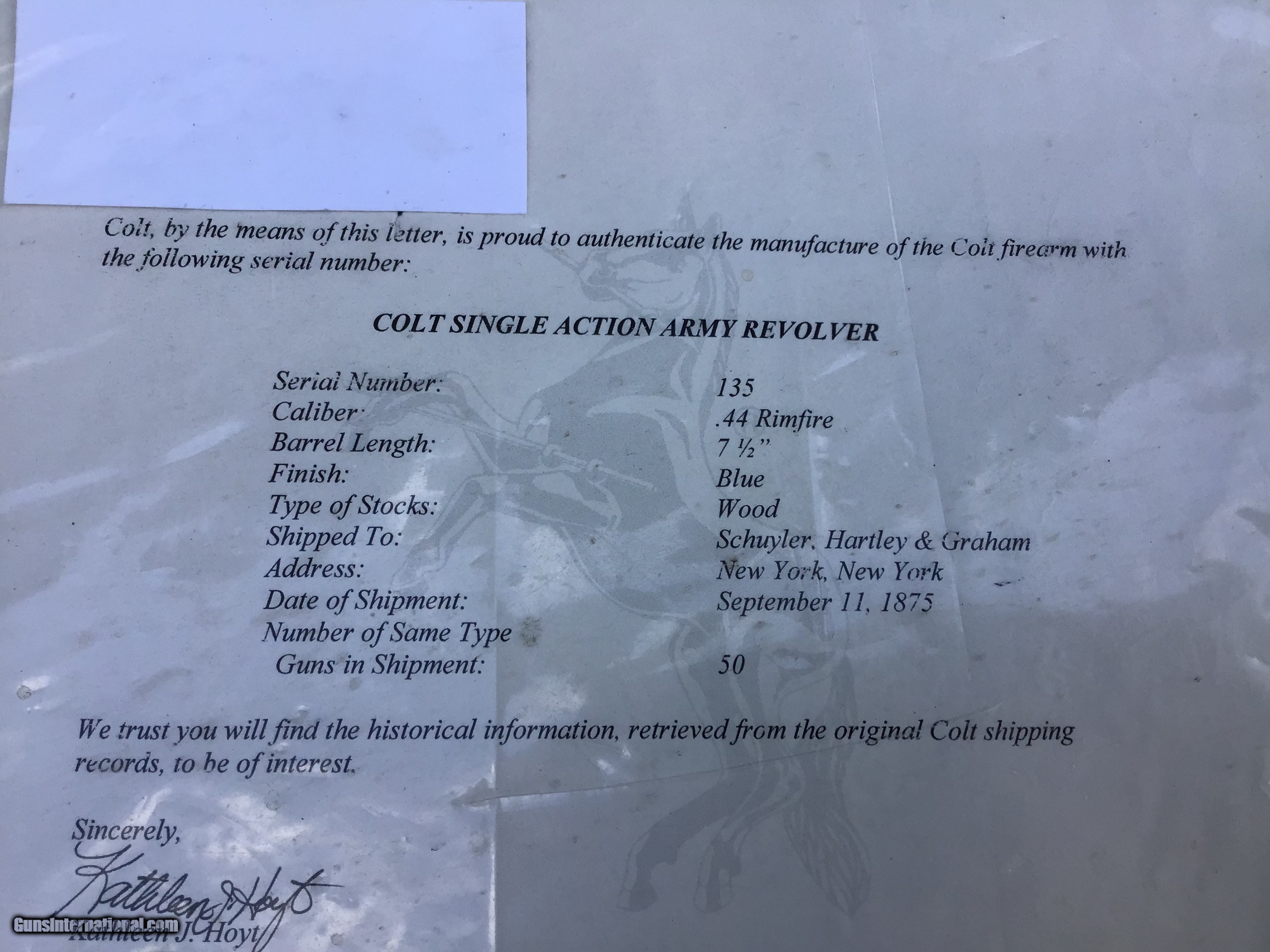 Colt SAA Revolver Rare .44 Rimfire Low Serial Number 135
