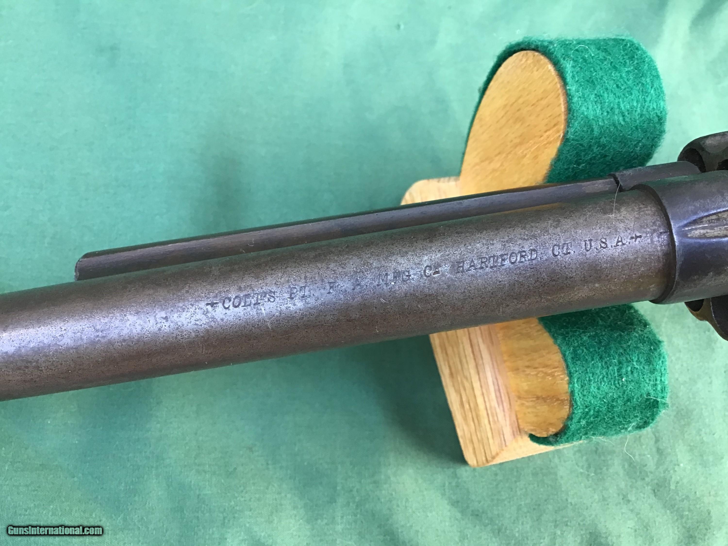 Description: Extremely rare and hard to find Colt SAA in .44 Rimfire. Comes with a Colt Factory Letter. Low serial number 135. Serial number is present on barrel, frame, triggerguard, and back strap. I can't see a number clearly enough on cylinder. The barrel, cylinder, ejector housing, and frame are all marked with a C. Action functions and indexes properly (3 out of 4 clicks). Original 7 1/2 barrel has a good bore. Most of the Rimfire Colt SAA's were sent to Mexico and unfortunately had their barrels cut to shorter lengths. Overall condition is a brown / gray patina. Markings are still visible (see pictures). This an extremely rare Colt and although it may not be perfect, it definitely will fit in someone's collection that needs to fill the void for a highly desirable SAA. I offer a layaway (contact me for details), and I will consider trades. Please feel free to contact me with any questions. Antique and can be shipped directly to your doorsteps. The 66 Winchester is not included but can be purchased separately. SOLD Antique: Yes |