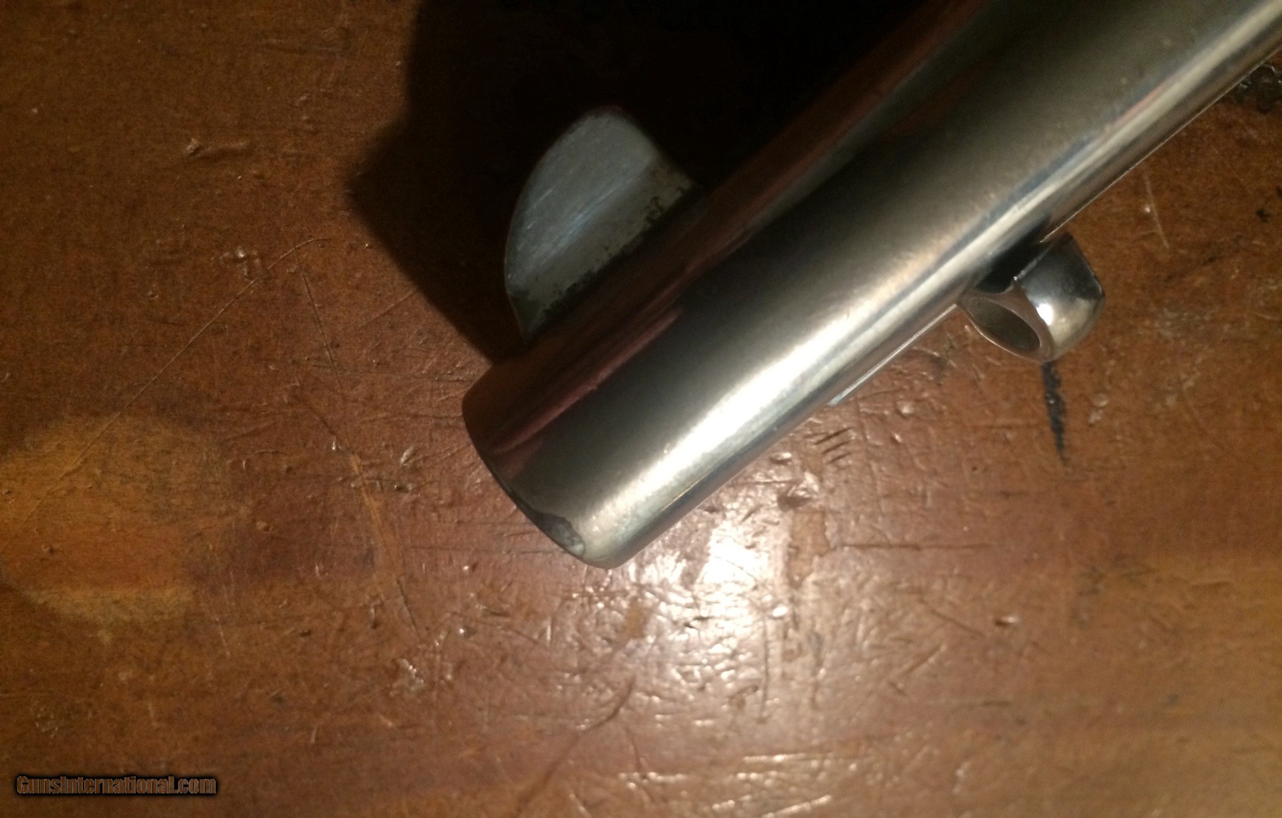 Description: TEXAS SHIPPED Colt SAA single action shipped in 1924. Beautiful high condition gun in nickel with beautiful pearl grips. Action and bore are great. This Texas shipped gun has a story. Originally shipped to Wolf & Klar as a 38-40 blue gun. Either Wolf & Klar sent this gun back or the new owner as it went back to Colt for a factory nickel and caliber upgrade to.45 caliber. The gun has both the Colt ampere stamp as well as individual typical assembly numbers on gun parts that was done by Colt. Factory nickeled and probably had the pearl grips put on then. This gun was used and carried but well cared for. The gun has perfect color with just enough wear to mellow the nickel finish. Small bit of holster rub on left tip of barrel and one small ding in top of the pearl grips. Overall a fine gun. There is a small unidentified stamp on the back straps that may be a brand. I can email photos of that is requested. ships to FFL for $38.00. see photos as description and ask question via email or call to discuss. Matt 214-957-7574 SOLD Curio/Relic: Yes Manufacturer: Colt Model: Single Action |