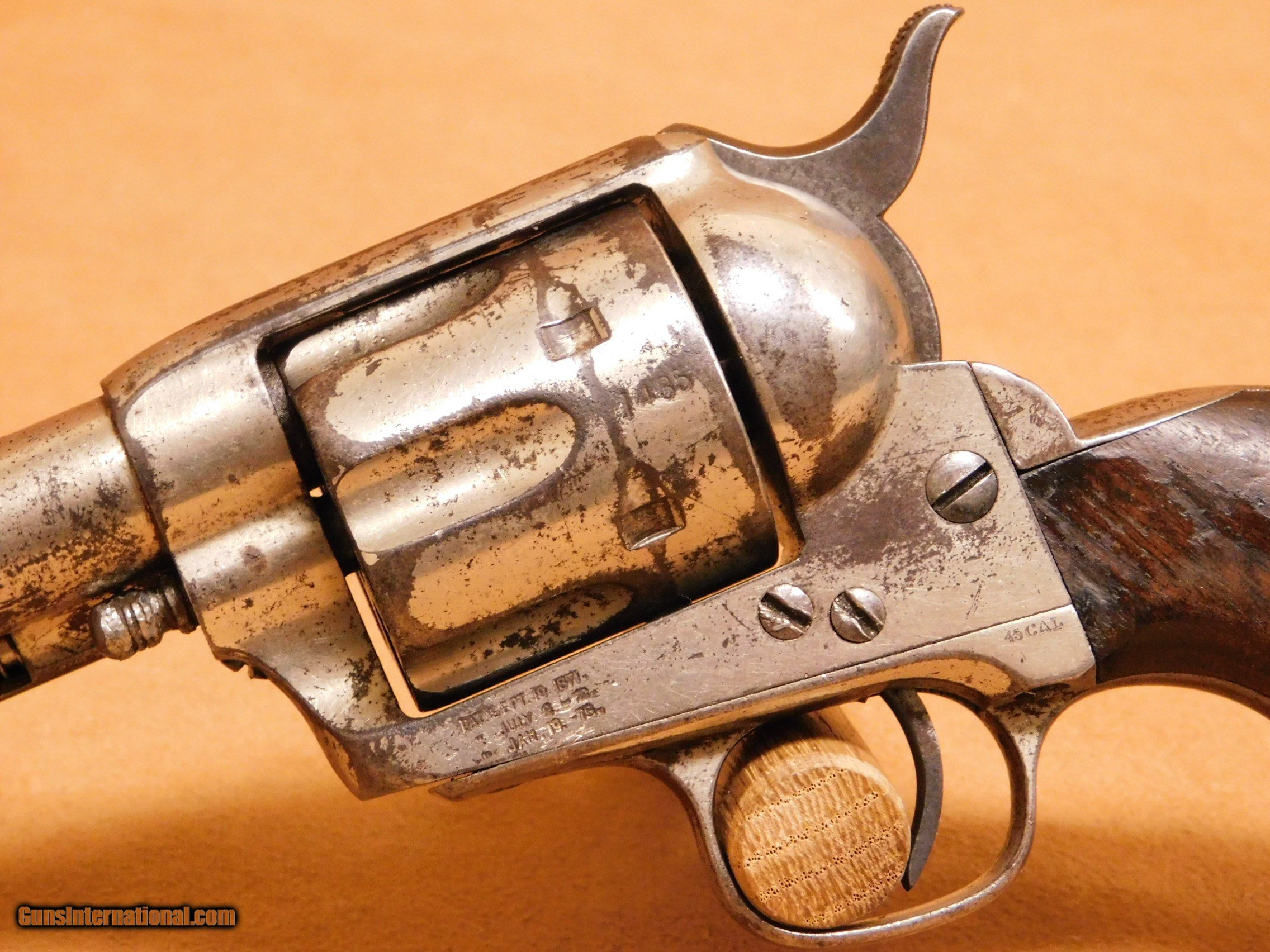 NFA Information Some items are regulated by the National Firearms Act (NFA). This includes, but is not limited to, short-barreled rifles, short-barreled shotguns, and suppressors. Please check with your local and state municipalities for any further regulatory requirements. It is the buyer’s responsibility to make sure they comply with all NFA rules and applicable laws. Such items MUST be transferred to a Class 3 FFL via a Form 3, and then transferred to you via a Form 4 from your local Class 3 dealer. The process of getting a Form 3 approved by the BATFE takes on average 6-8 weeks. Your patience is appreciated. SOLD Antique: Yes Manufacturer: Colt Model: Single Action Army Serial Number: 41435 |