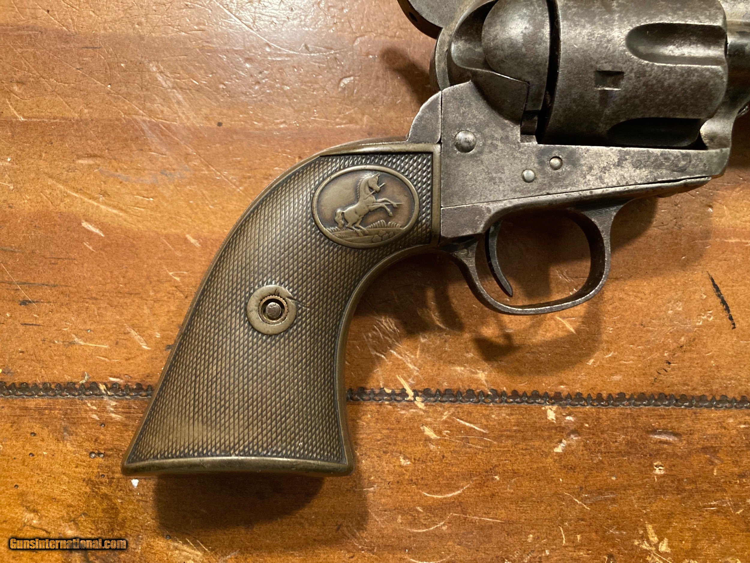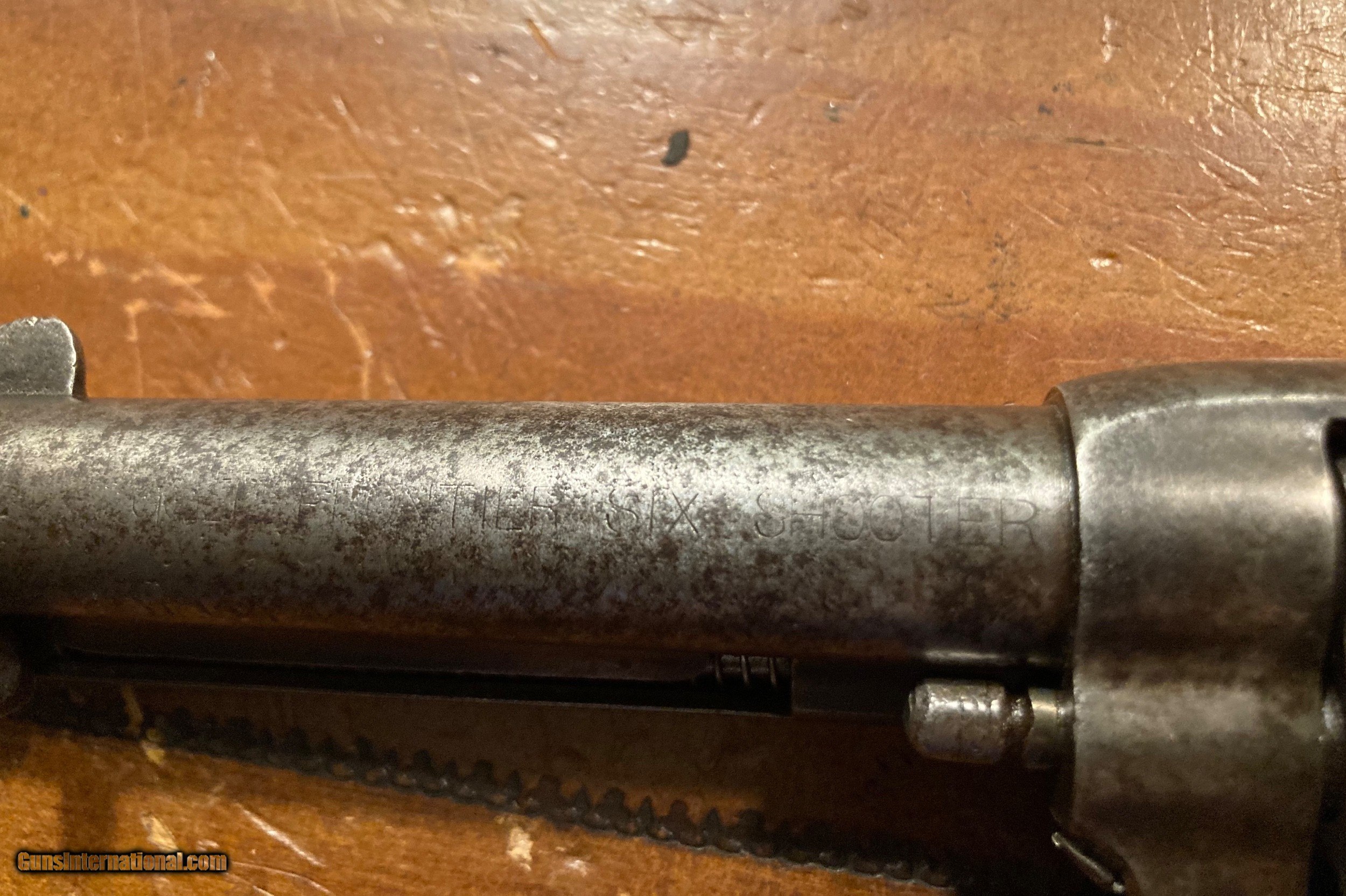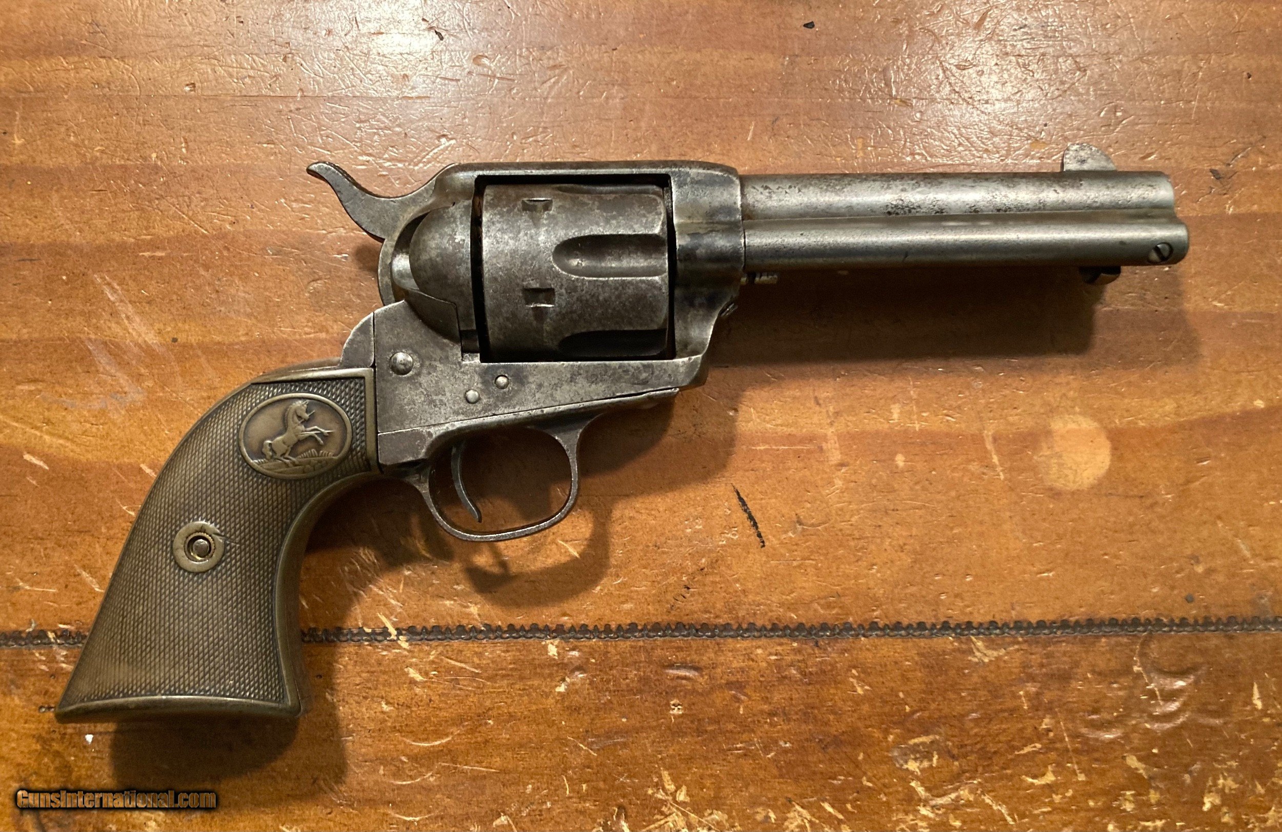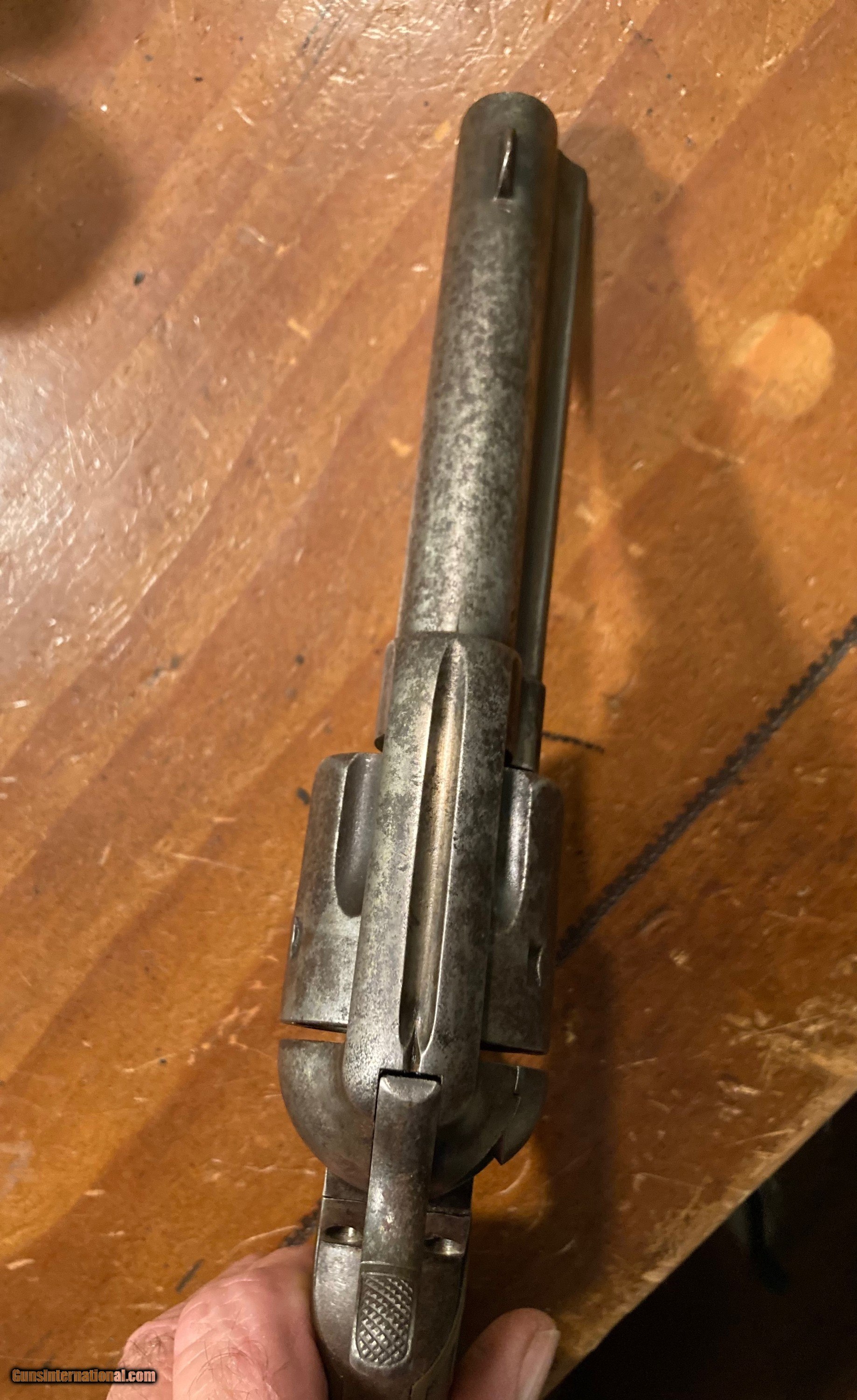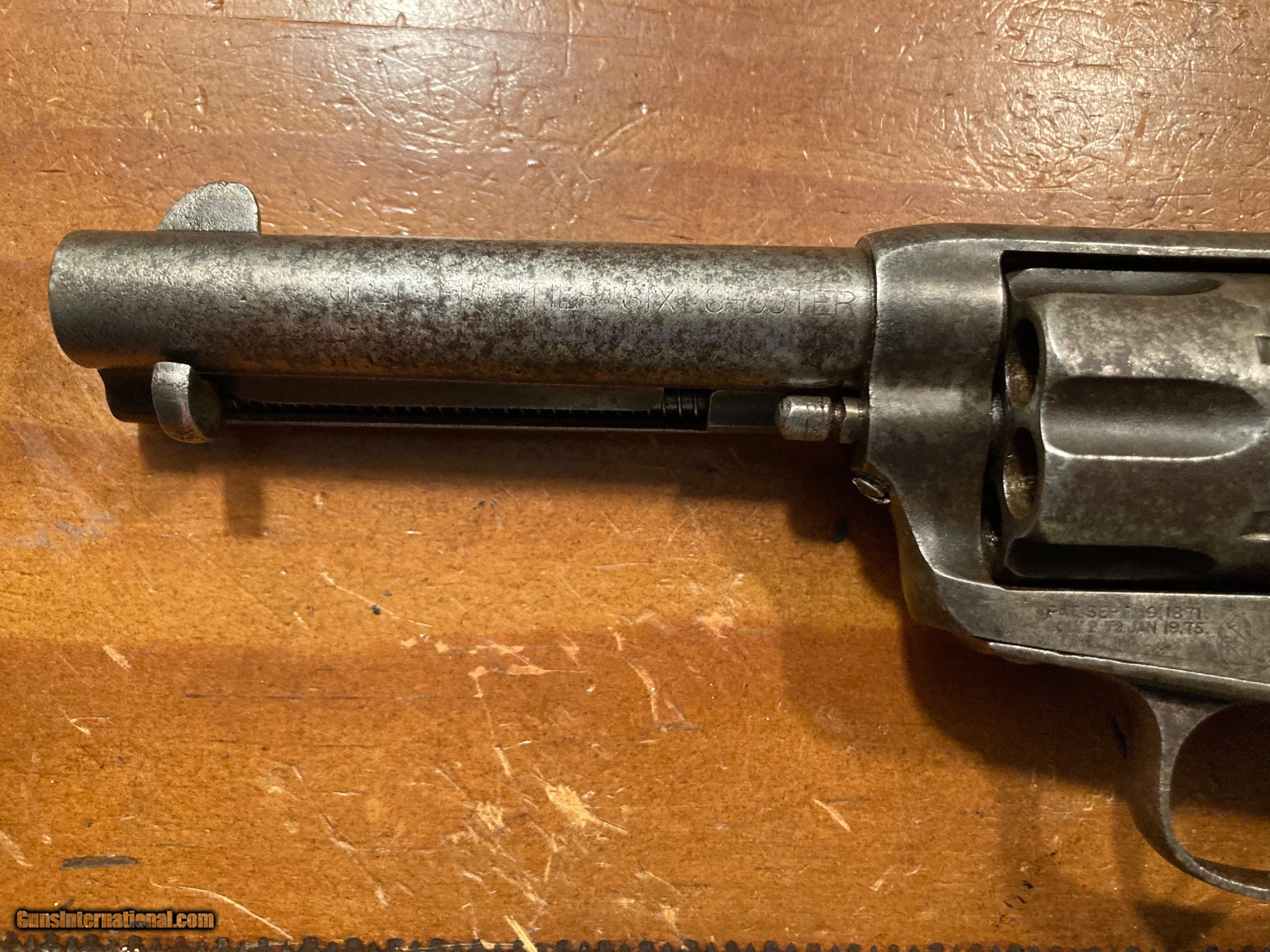 Description: Colt single action SAA Frontier Six Shooter in 44-40. This is an antique made in 1895. Serial numbers match and action is tight. Decent bore for a black powder gun. Speckled patinaed finish with age and much use. Grips are in good condition. Correct 2 line barrel address. See photos as description and email or call with questions or to discuss. Ships direct for $34. Matt 214-957-7574 SOLD Antique: Yes Manufacturer: Colt Model: Single action |
