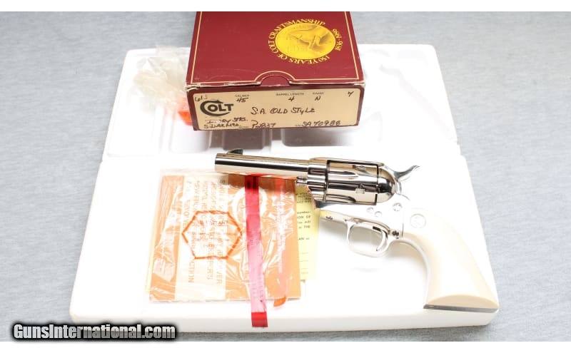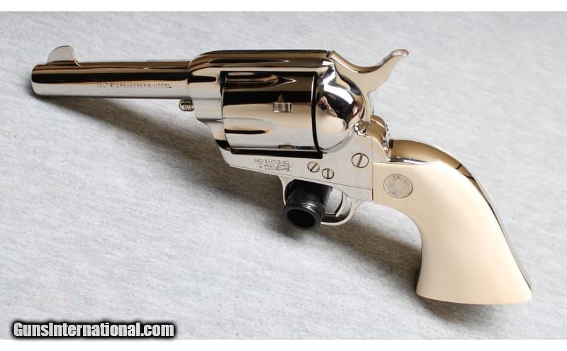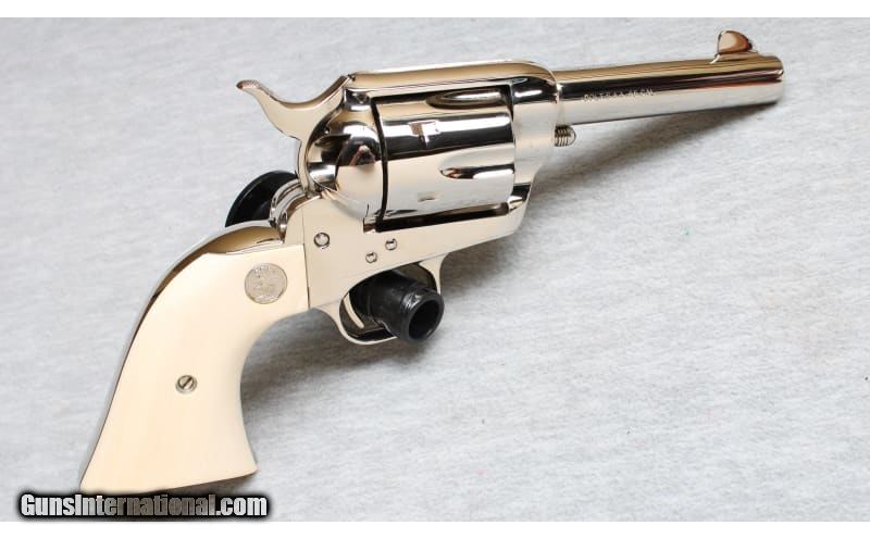 Description: Appears as new, comes with original box. Classic Colt single action revolver, 4" barrel, fixed sights, polished nickel finish, single action trigger, 6 shot fluted cylinder and Colt factory grips. An excellent choice for Colt collectors. .45 Colt SOLD Chambers: Revolver Metal Condition: As new Bore Condition: Bright Barrels: 4 Triggers: Single action Butt Pad: Factory grips Sights: Fixed rear channel Item Location: La Vista, NE |