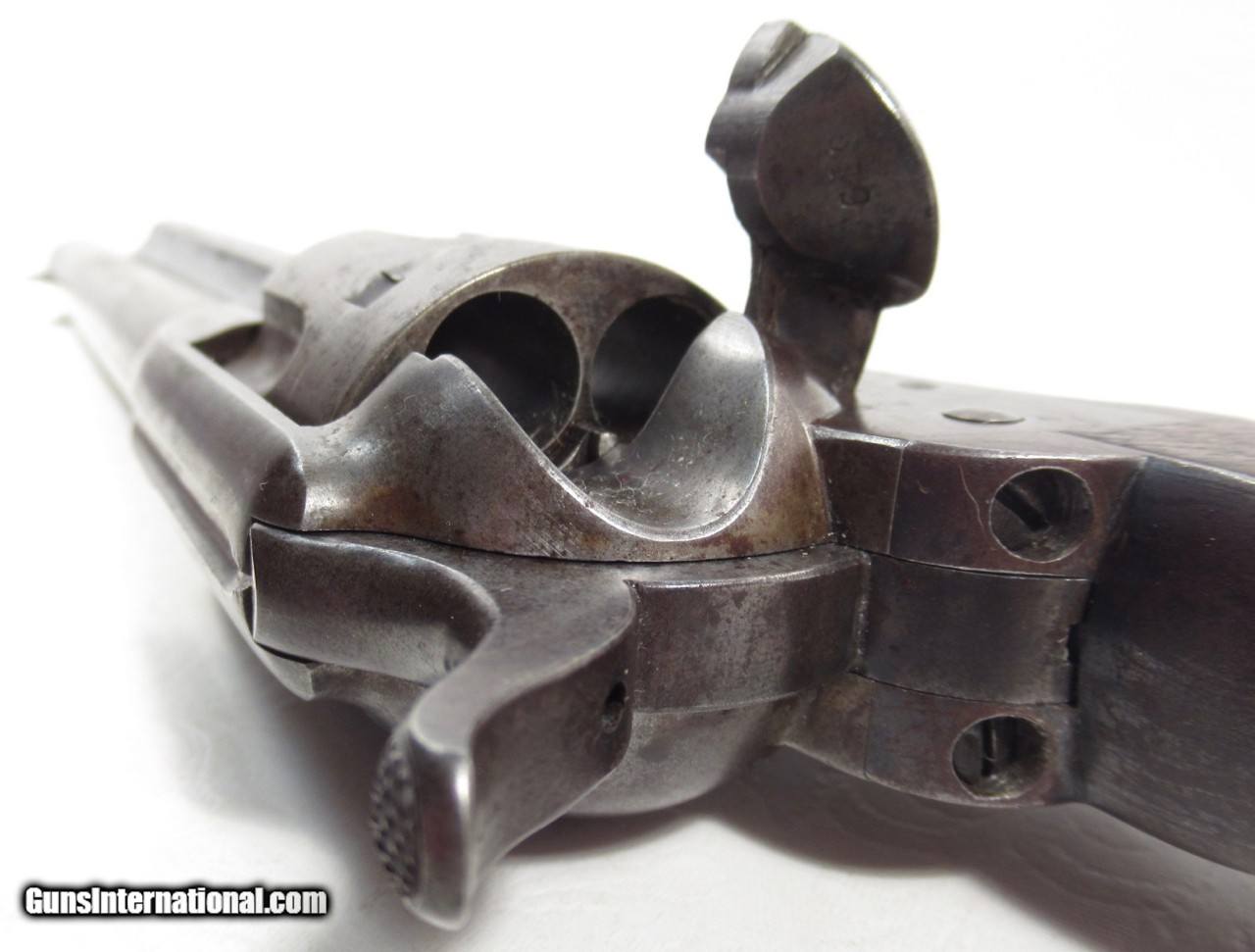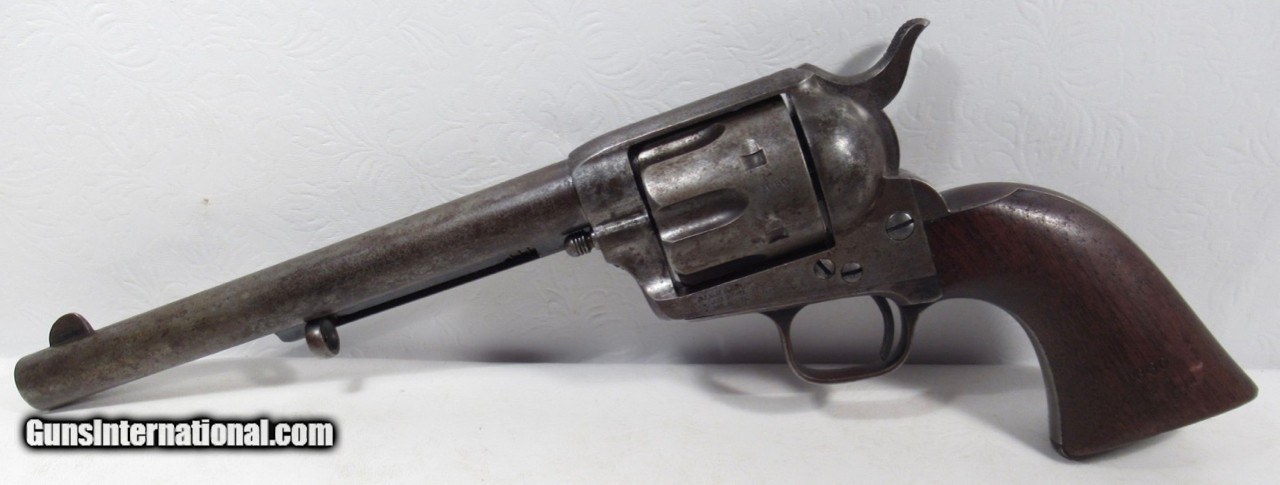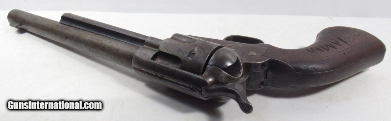 Description: SOLD--A Really Rare Item – Unaltered 100% Correct and Matching U.S. SAA Revolver; Serial No. 61050; All Correct and Matching; Some Original Metal Finish Remains; Original Grips with Strong Cartouches; “IAMM” Carved into left grip - Significance unknown; Perfect Action and Near Perfect Shiny Bore; Unaltered 140 Year-Old U.S. Calvary Colt; LIQUIDATING PERSONAL COLLECTION; Price: $7,500 + $30 S&H; Price includes insured shipping; return policy: three days inspection from the date the items received; full refund of shipping both ways ONLY IF THE ITEM IS MISREPRESENTED. SOLD Antique: Yes Manufacturer: Colt Model: 1873 Serial Number: 61050 |