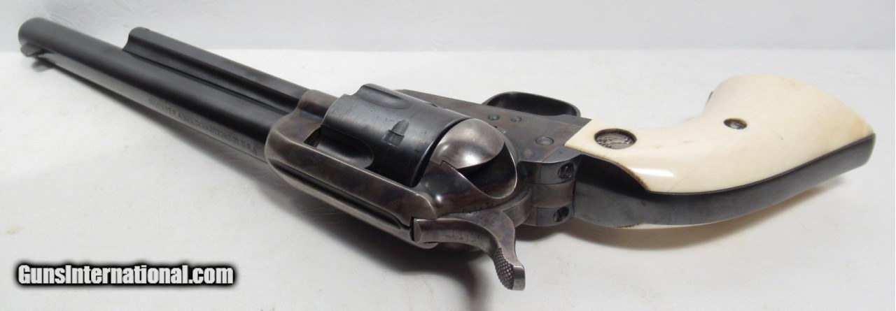 Description: Colt Single Action Army; Serial No. 347087; 32 W.C.F. Caliber (32/20); 7 ½” Barrel; Blue and Case Color Finish; Per Factory Letter – Shipped Feb. 27, 1925 to Tacoma, Washington; All Numbers Match; Nearly All Original Metal Finish Remains; Nice Old Medallion Ivory Grips that are not original to revolver; Perfect Tight Crisp Action and Perfect Bore; High Condition 95 Year-Old Colt SAA; LIQUIDATING PERSONAL COLLECTION; Price: $4,700 Shipped; Price includes insured shipping; return policy: three days inspection from the date the items received; full refund of shipping both ways ONLY IF THE ITEM IS MISREPRESENTED. SOLD Manufacturer: Colt Model: 1873 Serial Number: 347087 |