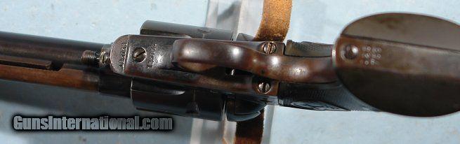 Description: COLT SINGLE ACTION 1ST. GENERATION .38 SPEC. CAL. 5 ½” REVOLVER. Originally a .44-40 caliber made in 1888. All matching serial numbers in the 125,xxx range. Re-barreled with factory new barrel and new cylinder in the post war era. Re-blued frame and straps. Replaced pre WW2 factory grips. Post war hammer with broken half cock. Excellent bore and chambers. SOLD Antique: Yes |