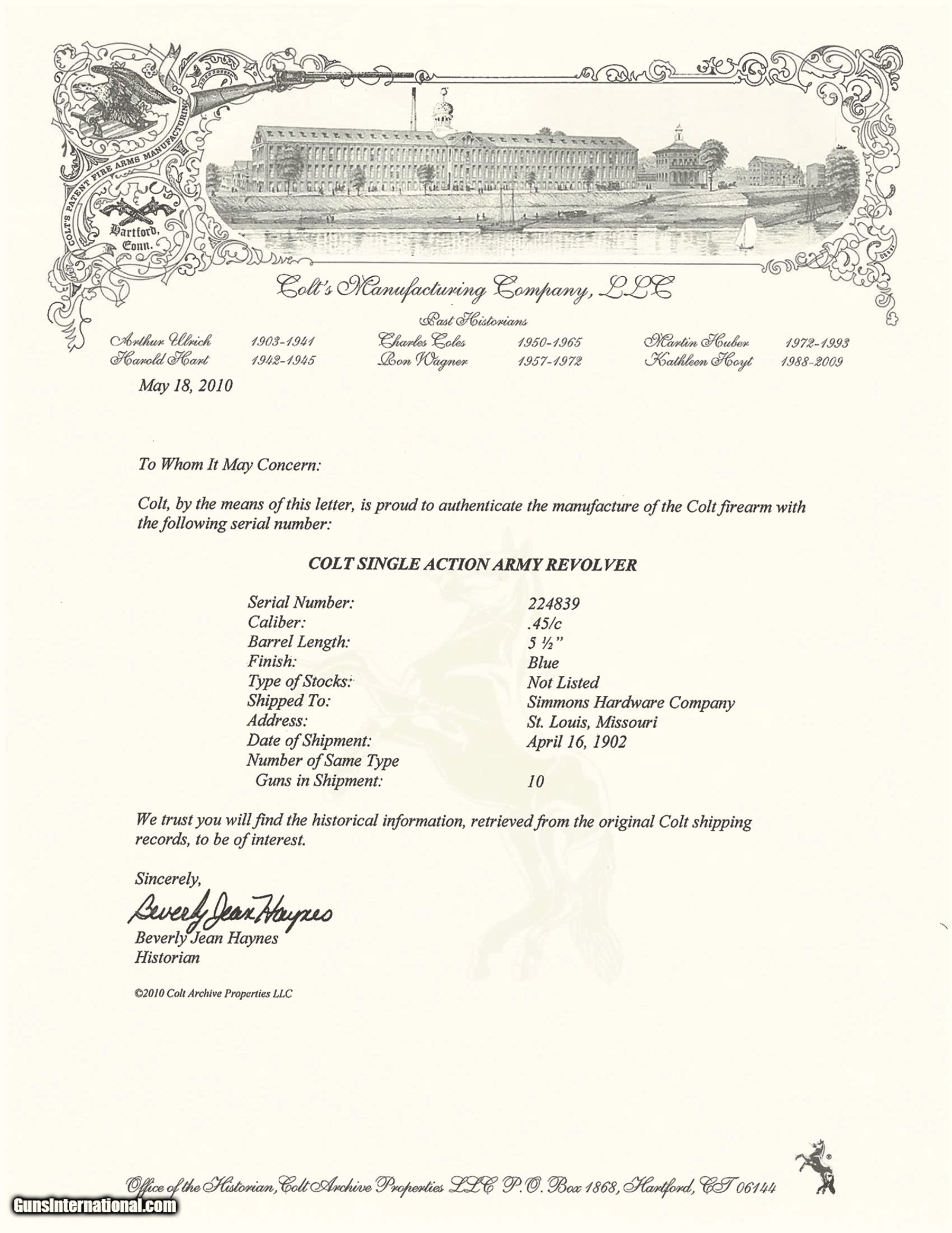 Description: SOLD Curio/Relic: Yes Model: Single Action Army Caliber Info: 45 Colt (Long Colt) |