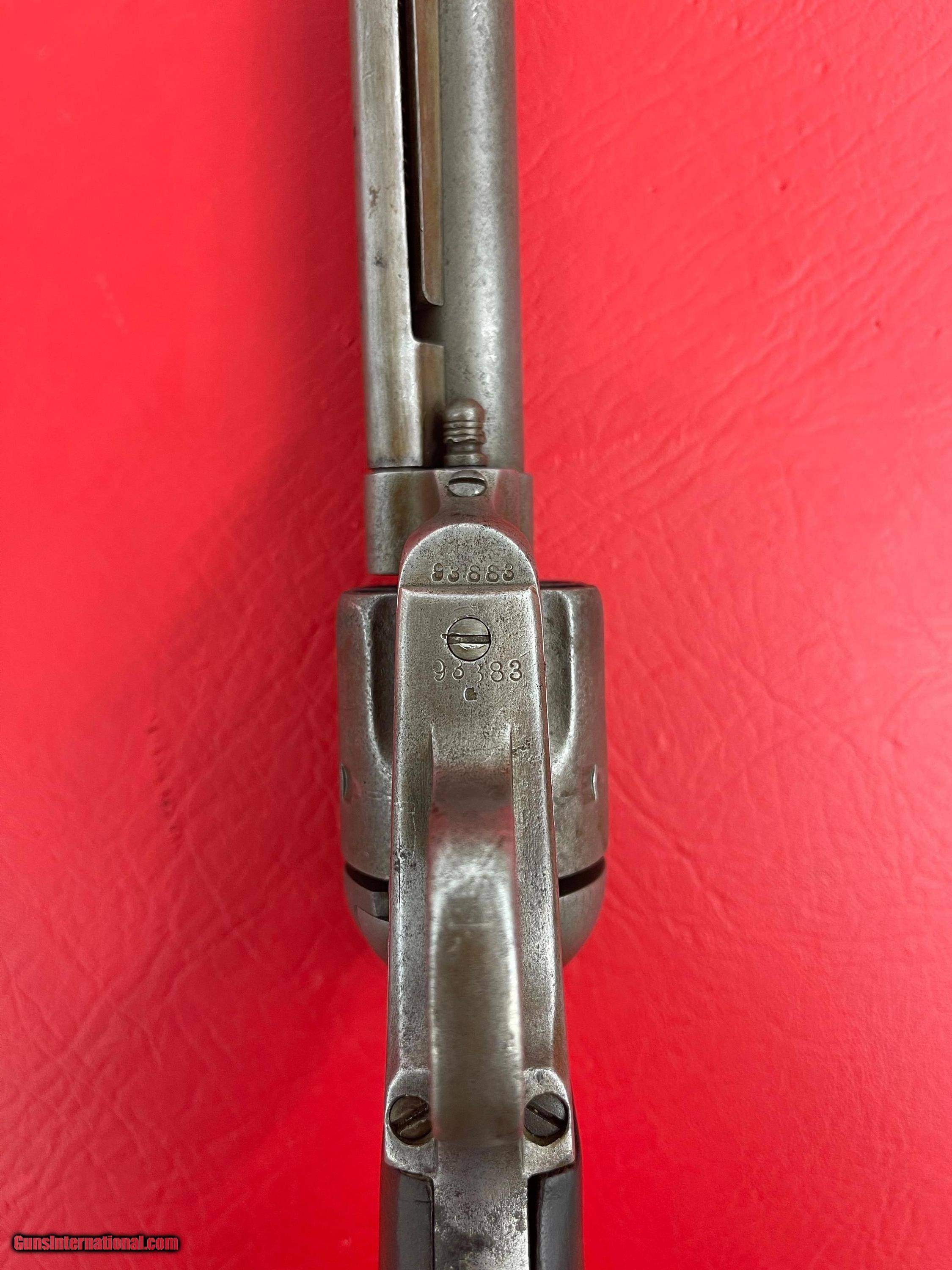 Description: Etched Panel Single Action Army - 1st Generation - If you have any other questions please feel free to ask. SOLD Curio/Relic: Yes Antique: Yes Handgun Caliber: .44-40 Winchester (.44 WCF) Manufacturer: Colt Model: Single Action Army Serial Number: 93883 Condition: Good Metal Condition: Wore Wood Condition: Good Bore Condition: Visible Rifling Moderate Pitting Throughout Action: Single Action Finish: Nickel |