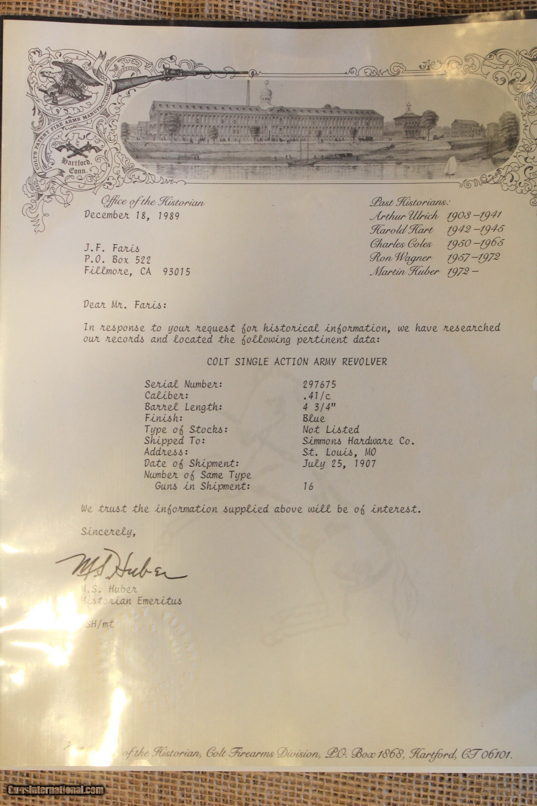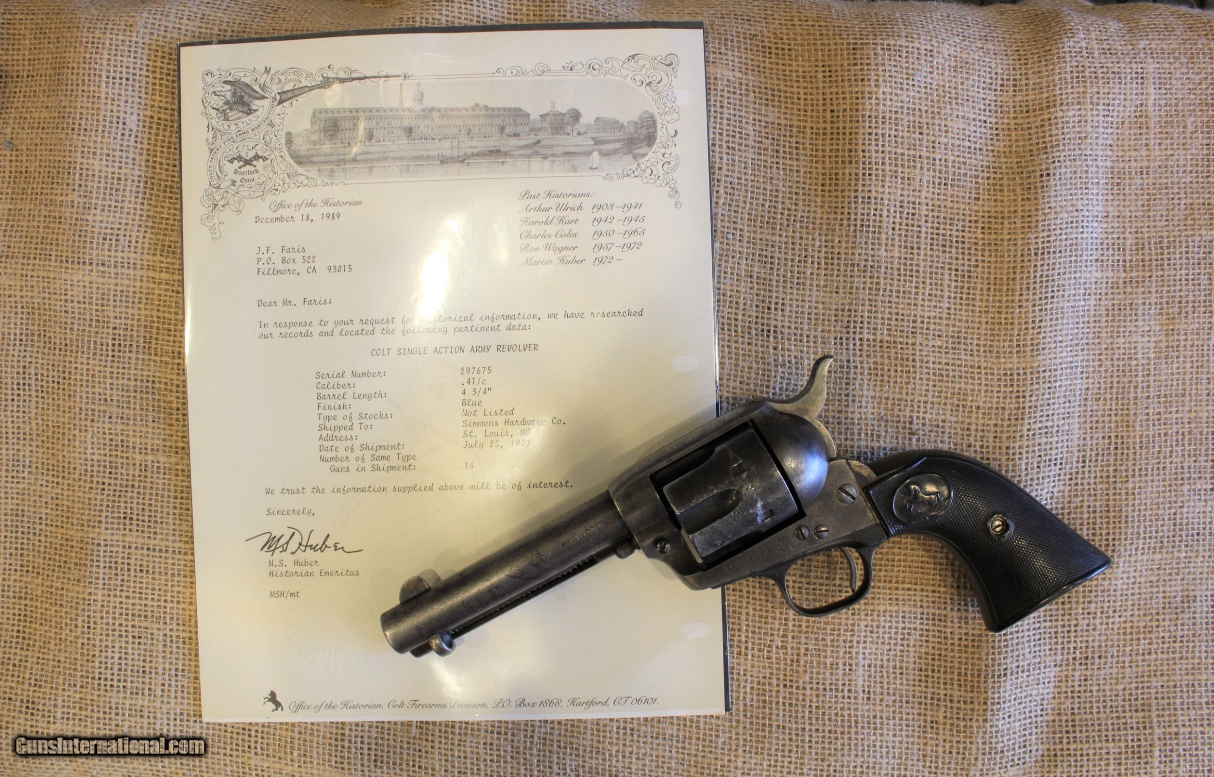 Description: Colt Single Action Army 1st Gen in .41 Colt. Serial number 297675, manufactured in 1907. Call Bill at RW Outdoors with any questions at 406-842-5271. See photos for condition. California sales additional $25 for paperwork, shipping included in price. SOLD Handgun Caliber: .41 Long Colt (.41 Colt, .41 LC) Manufacturer: Colt Model: Single Action Army Serial Number: 297675 |