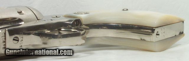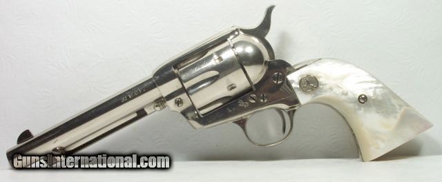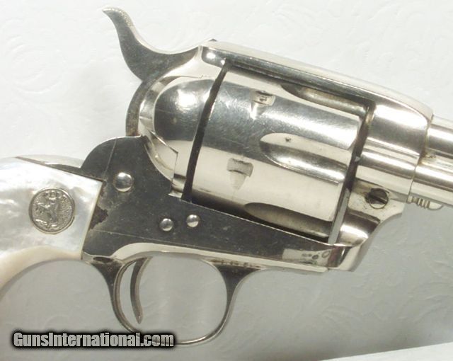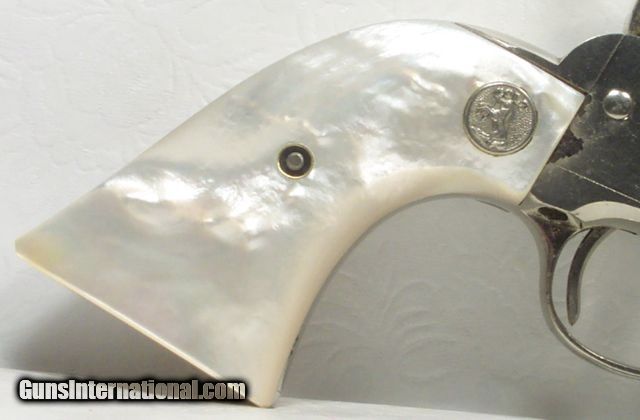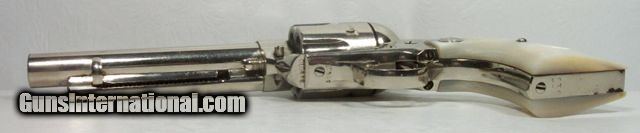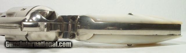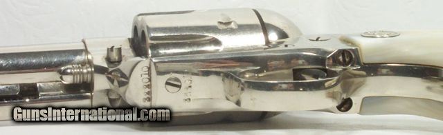 Description: Colt Single Action Army SN322010; originally shipped to Simmons Hardware as a 7 1/2 inch blue 32/20; gun reworked by Colt at unknown date has amperstand and bin #1191); revolver is now 5 1/ 2 inch bbl.; nickel plated with Pearl Grips; PERFECT tight action and lock up, shiny, strong bore; 116 year old Colt out of San Antonio, Texas; FFL/C&R required for shipping; from my own personal collection; Long guns shipped by FedEx in a hard case $65; all other items shipped fully insured Priority Mail; - -Hand guns $30 -- Spurs $30-- Knives, Swords & Sabers $30—Grips $20 – Scopes $10; return policy: three days inspection from the date the item is received; full refund of shipping both ways ONLY IF THE ITEM IS MISREPRESENTED. SOLD Curio/Relic: Yes Manufacturer: Colt Model: SSA Serial Number: 322010 |