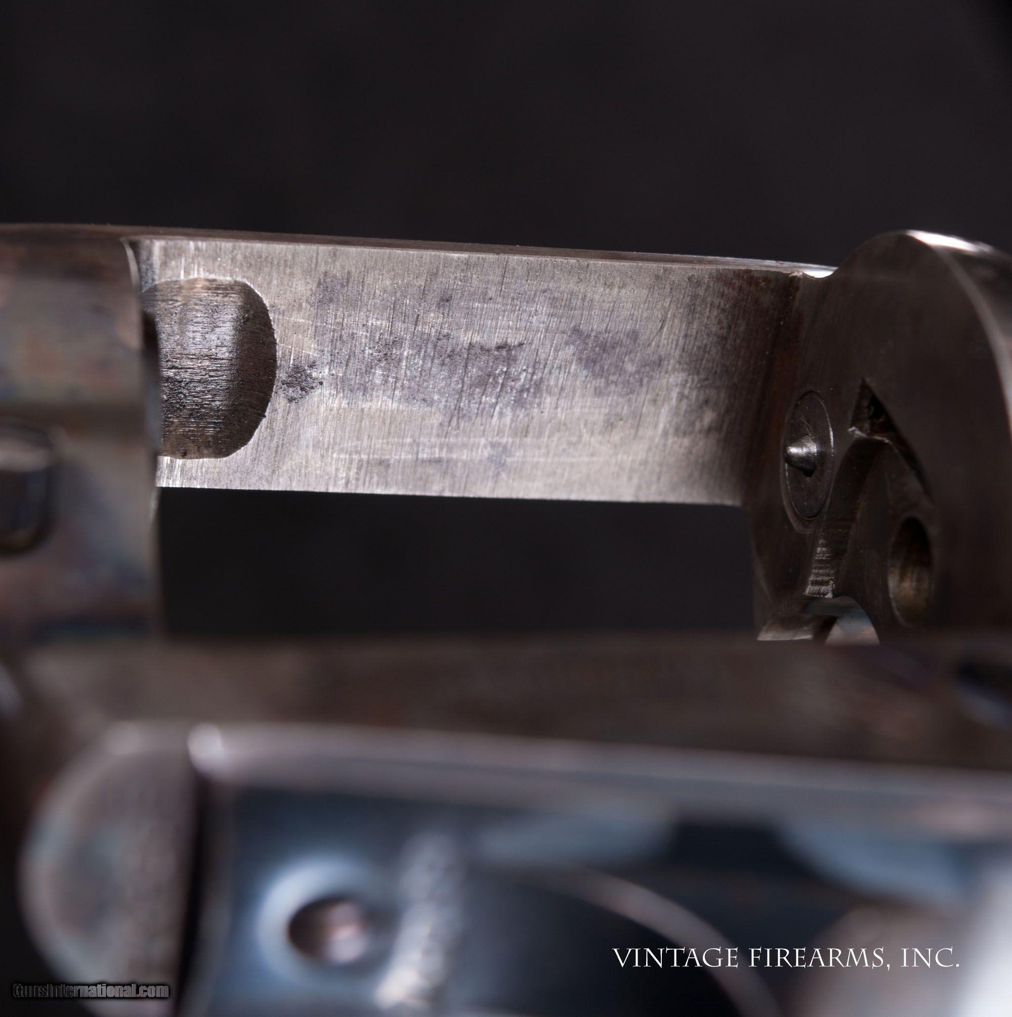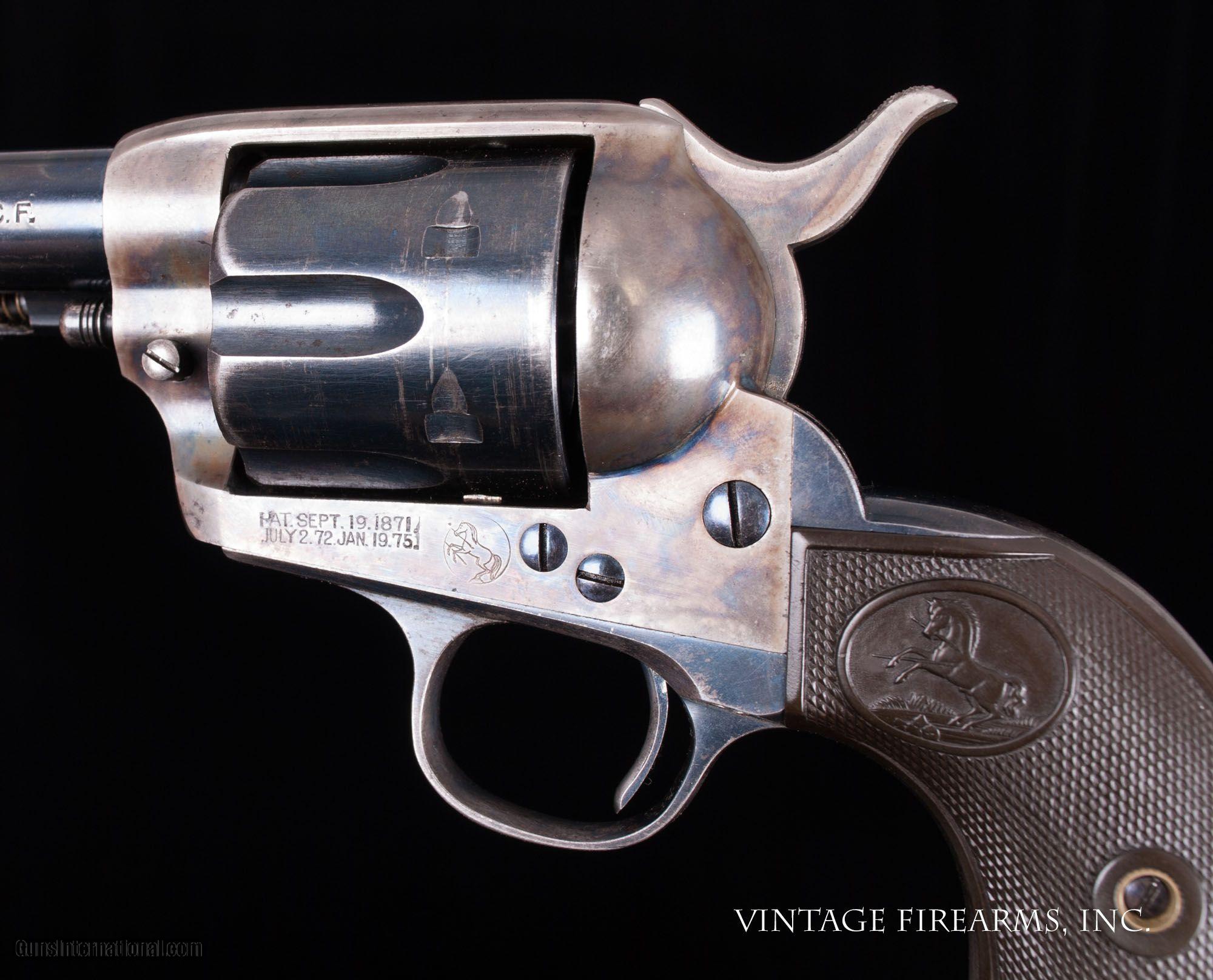 Description: Colt Single Action Army .32 W.C.F. – UNTOUCHED Description: Colt Single Action Army .32 W.C.F. Revolver UNTOUCHED FACTORY 90% CONDITION, 1903 General Specs: Colt, Year 1903, .32 WCF, Revolver Serial Number: 249268 This is an original pre-WWI First Generation Colt Single Action Army (SAA) Revolver in a .32 W.C.F. caliber (.32-20). The Colt Peacemaker Model 1873 was the mainstay of the Frontier. This Colt, sn249268 shipped in 1903, is in superb factory original condition, untouched by the restorer’s hands, still retaining 97% strong factory case color, about 85% nice dark factory blue (showing some natural holster wear, but no rust, pits, or remnants of such), a desirable 7 ½” barrel with excellent sharp rifling, clear sharp lettering and stampings, excellent original screws, hard rubber grips original and serial numbered to the gun with just light wear to the checkering, all matching serial numbers…just a delightful, honest example of a fine Colt from the turn of the century. A factory letter documenting the gun is included in the photos and will accompany the gun upon sale. The .32-20 was only 8% of the total production of Colt SAA revolvers, so represents a rather rare caliber. It is also a caliber that interchanged with the Winchester 1892 rifle so that a cowboy could have one batch of cartridges for both rifle and handgun. The ammunition is still available and a recent gun writer dubbed the .32-20 the first “MAGNUM” .32 caliber cartridge, as it develops impressive speed and ballistics for a smaller caliber SAA. What a fun gun this would be to shoot some tin cans or jack rabbits with. Just imagine where this gun has been and the stories it could tell! The gun was shipped to San Francisco, California in the days there were still cowboys and drifters gambling in the saloon and gunfighting in the streets. It was likely ordered by a rancher or picked up at the General Store to carry while tending cattle and riding the range. The mechanics of the gun are excellent, with the timing of the action perfect and no play in the cylinder when cocked. If case color remaining is the measure of the gun, as some people say, this is a very high condition gun indeed. I state 90% overall with no excuses. Thanks for looking! Barrels Barrel Length: 7 1/2" factory Bores: bright crisp rifling % Blue: 85% dark factory blue Chambers: clean Action Action: tight, no play, crisp Case Color: 97% strong factory original Screws: perfect factory Trigger Type: single, crisp Trigger Guard Color: 85% factory Stock Type: factory black rubber, excellentinal Checkering Condition: excellent There are more photos upon request. We offer a 30 day mechanical warranty on this fine shotgun. Call us for full details. PLEASE SEE MY OTHER FINE VINTAGE FIREARMS. Just open one of my ads and click on the line that says “see all items from this seller” and a very nice list of fine sporting and collectible arms will appear. I have many more fine sxs shotguns not yet listed. Thanks for looking! Payment Methods: Credit Card, Money Order, Certified Check, Personal Check, Wire Transfer (Advertised price represents the 3% cash discount price. Actual price if paid by credit card is 3% higher cost.) Inspection Period / Return Policy: Three Days from the date the item was received. Sales Tax: 6% Michigan Only Shipping & Insurance: Ground $95.00 We ship internationally! Item Condition: Used Requires FFL?: Yes If you have any questions about this item or payment, please email or call us at #616-292-6240. Please visit our . Thanks! Vintage Firearms Inc We employ a full time gunsmith on premises and can perform alterations to suit your needs within a few weeks of purchase. Common requests are: -stock bending to suit your particular requirements -addition of any specified butt pad to increase length of pull -alteration of chokes to suit your shooting preferences -lengthening of chambers and forcing cones -darkening stock color with penetrating stains -restoring any part of the gun including rust blue, charcoal blue, bone and charcoal case color, wood restoration and checkering recuts. If you like one our guns but it needs "tweaked", let us know and we can quote you a time and price. Some enthusiasts like the guns "as found" and others want them "just so". We often list guns as found and let the particular buyer choose how they want their gun to fit or look. SOLD Curio/Relic: Yes |