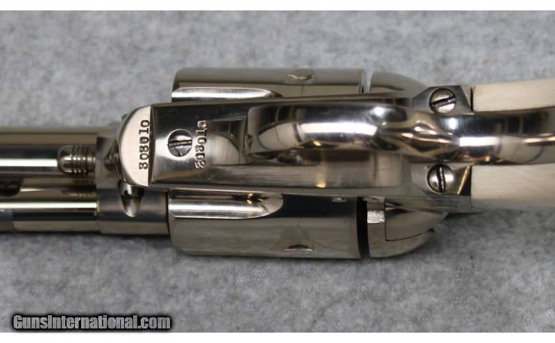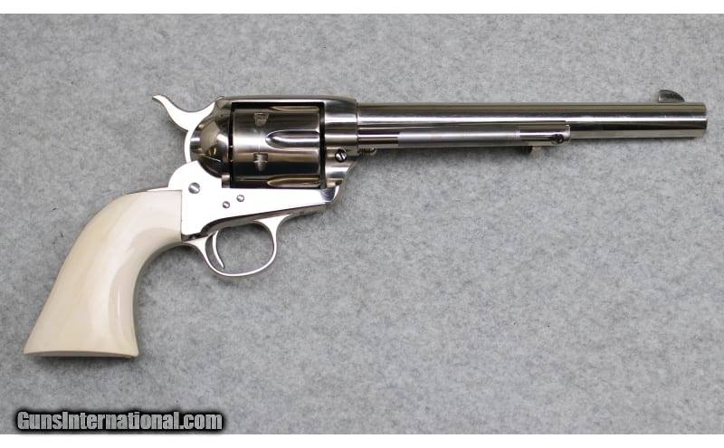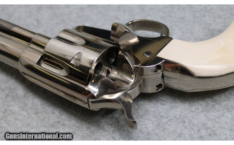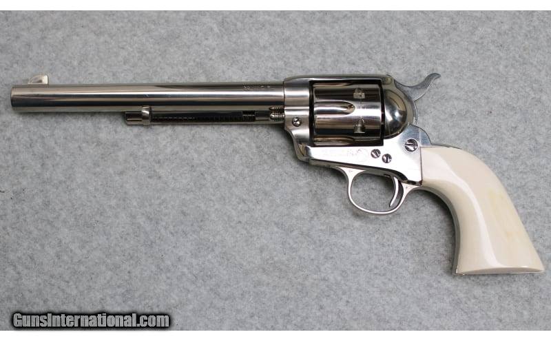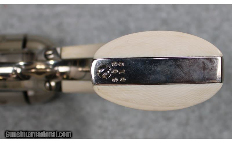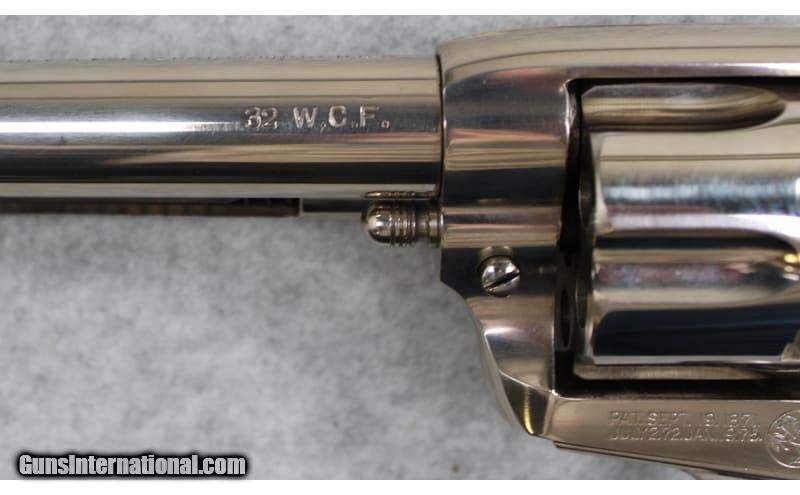 Description: Colt Single Action Army revolver chambered in .32 WCF (32-20 Winchester). The serial number (283678) indicates that the revolver was manufactured in 1907. Features include a 7-1/2 inch nickel plated barrel and frame with smooth white grips. In overall excellent condition, the revolver appears to have been professionally refinished at some point. .32 WCF SOLD Curio/Relic: Yes Metal Condition: Excellent with Minor Handling Marks Wood Condition: Very Good with Minor Handling Marks Bore Condition: Bright And Clear with No Pitting Barrels: 7.5 inch Weight: 2 Lbs 6 Oz Item Location: Fort Worth, TX |